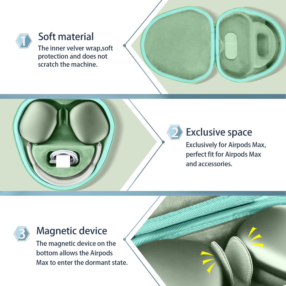 The case is made of durable and shock-resistant EVA material, which ensures that your AirPods Max are safe from any accidental drops or bumps. It also features a soft and smooth inner lining to prevent scratches and keep your headphones looking brand new.