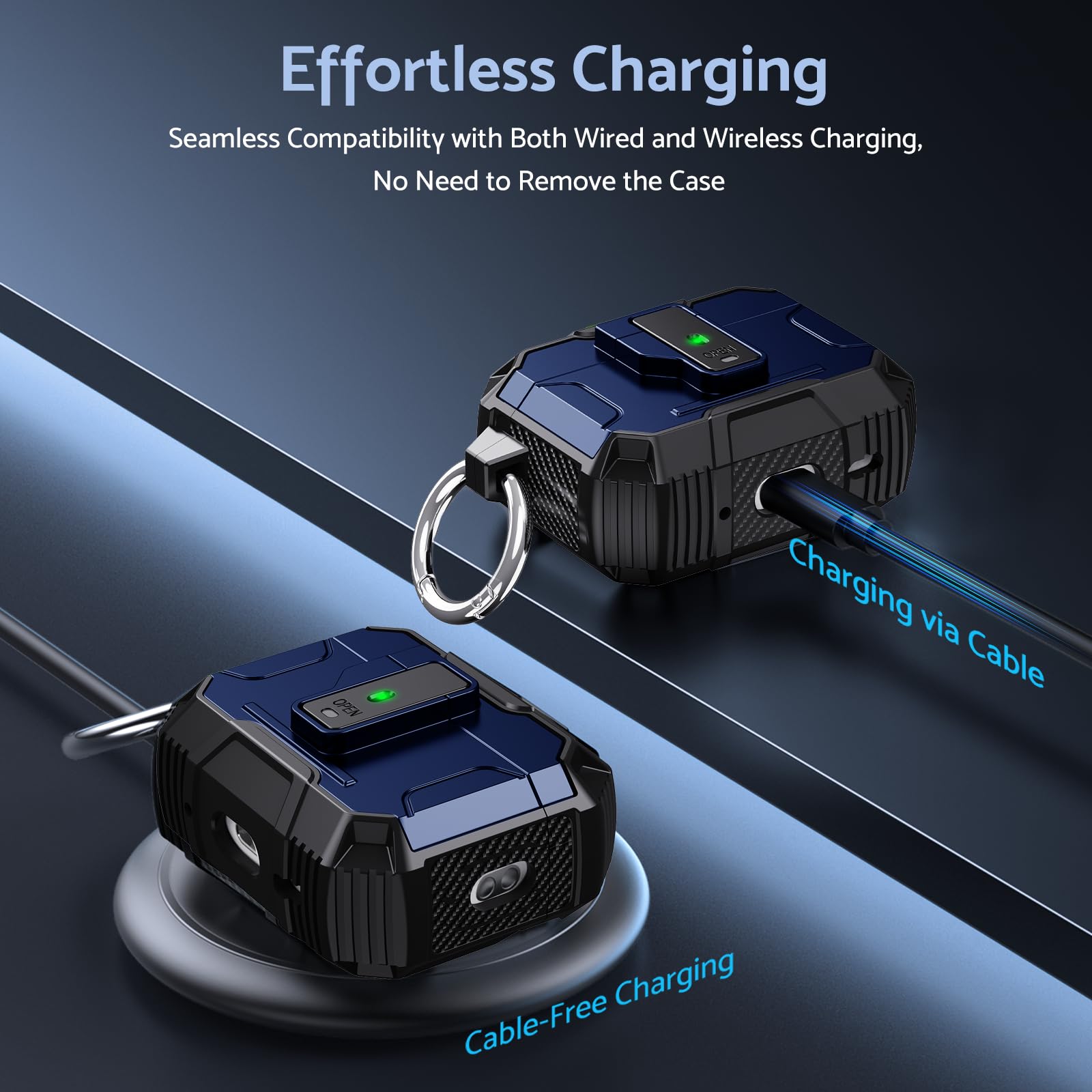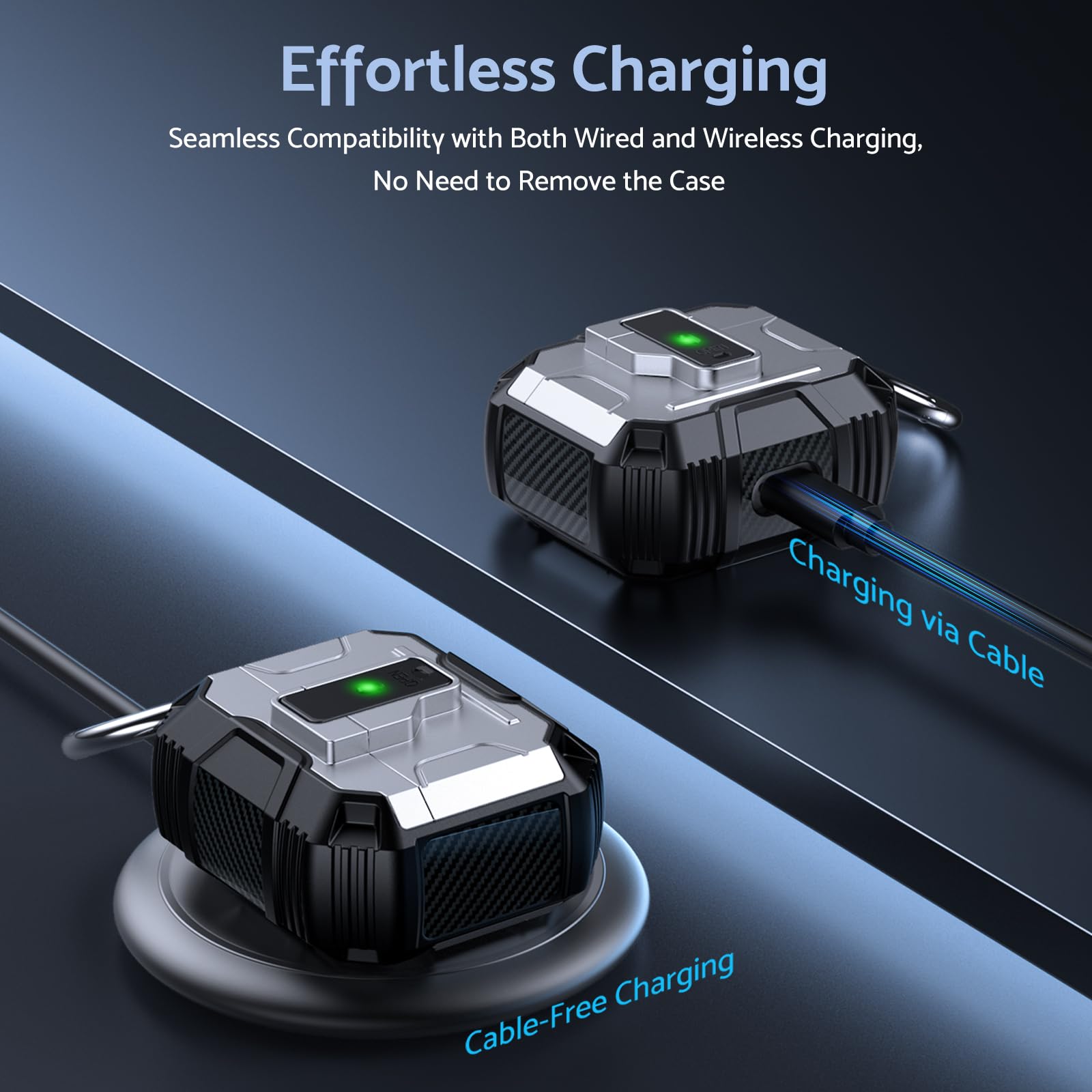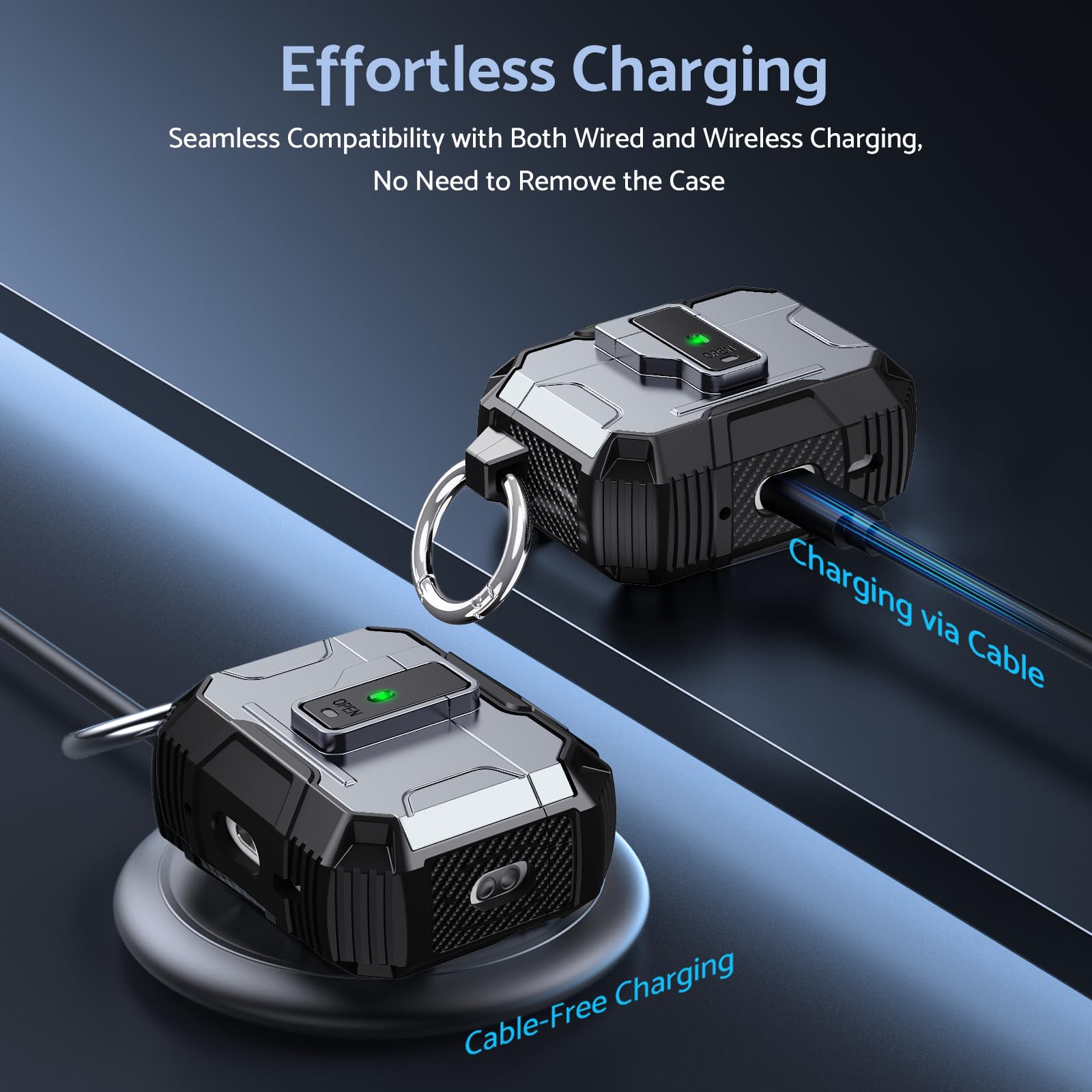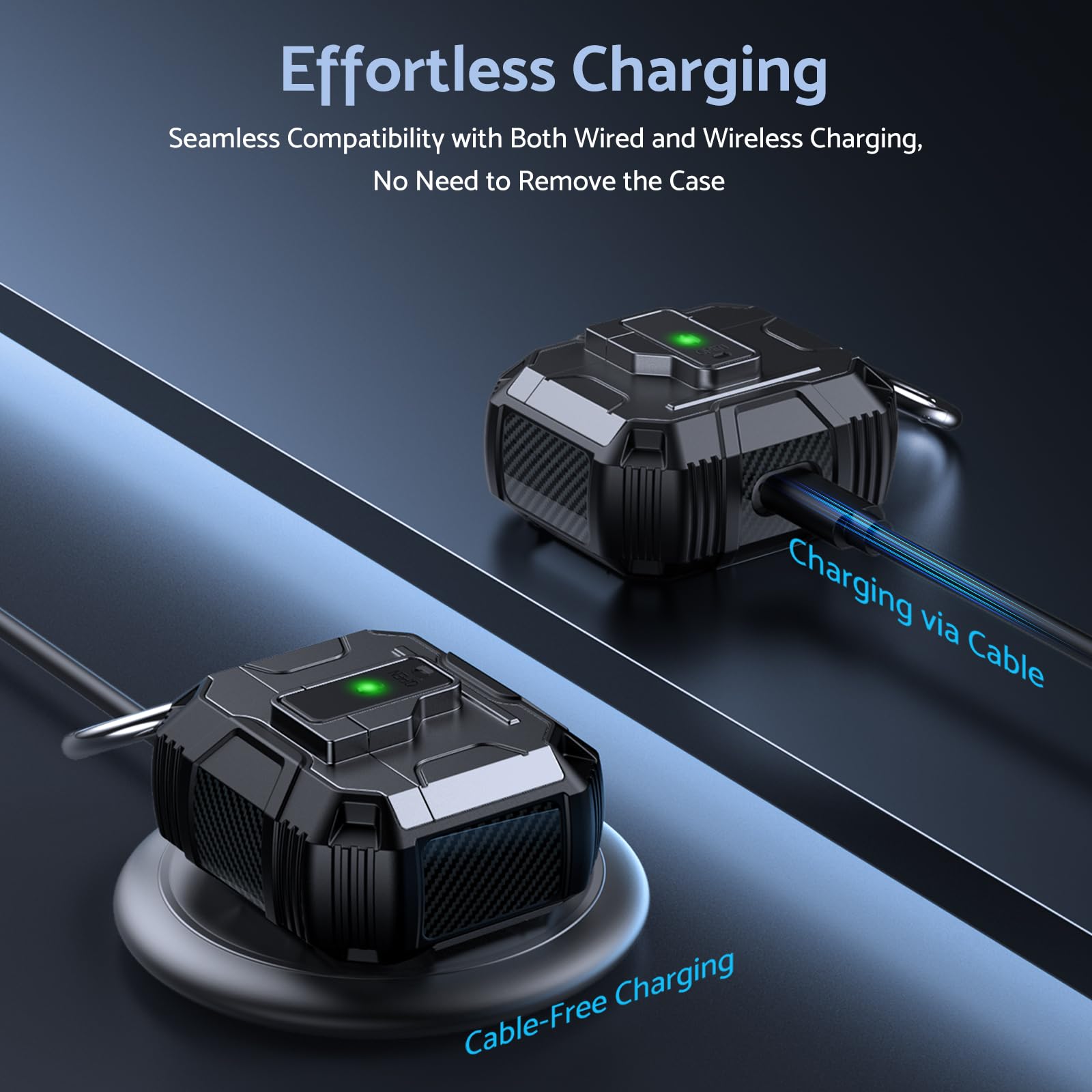 Constructed from high-quality, shock-absorbing silicone, the ArmorPro case fits snugly around your AirPods, offering reliable protection without compromising accessibility. The precise cutouts allow easy access to the charging port, so you can effortlessly charge your AirPods without removing the case.