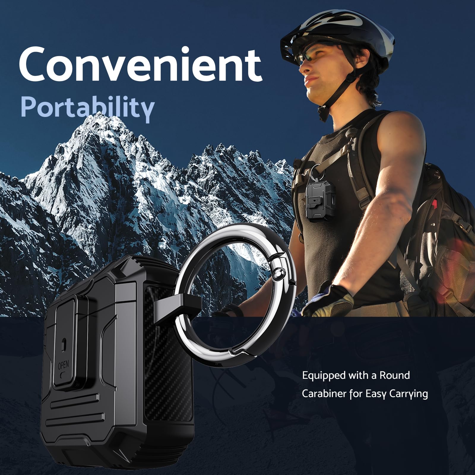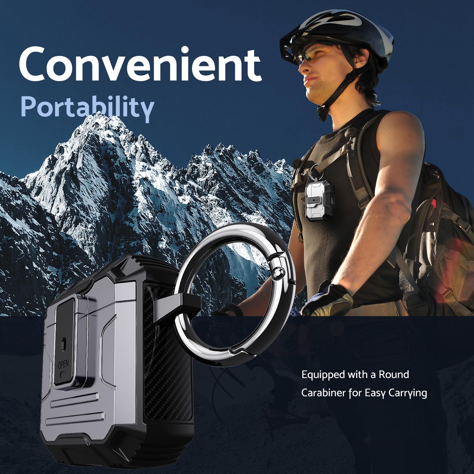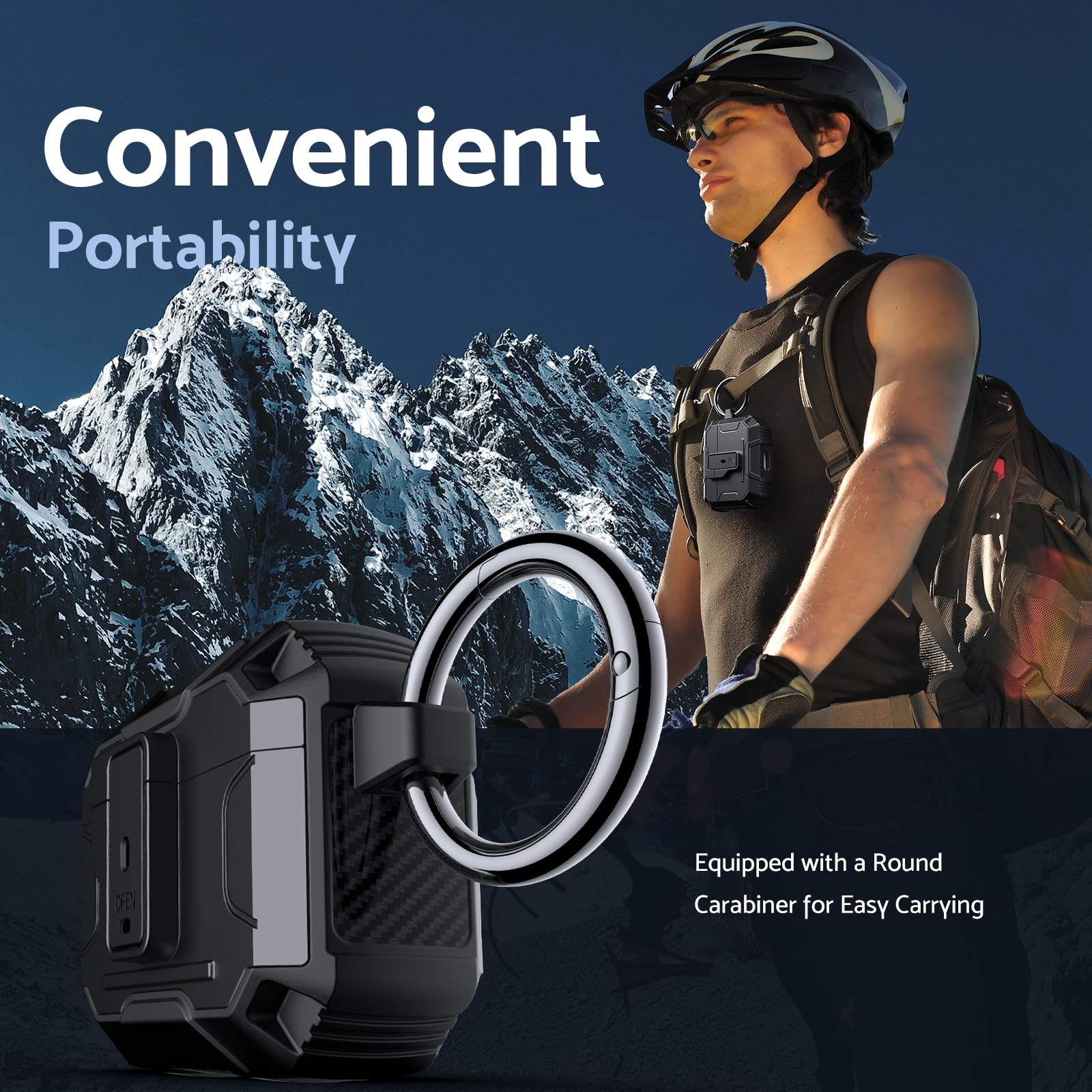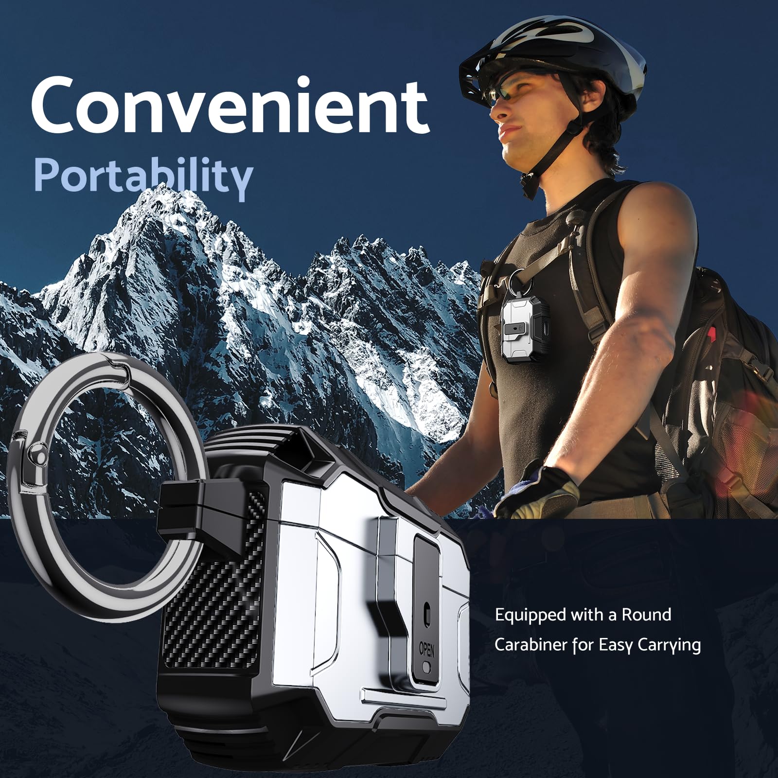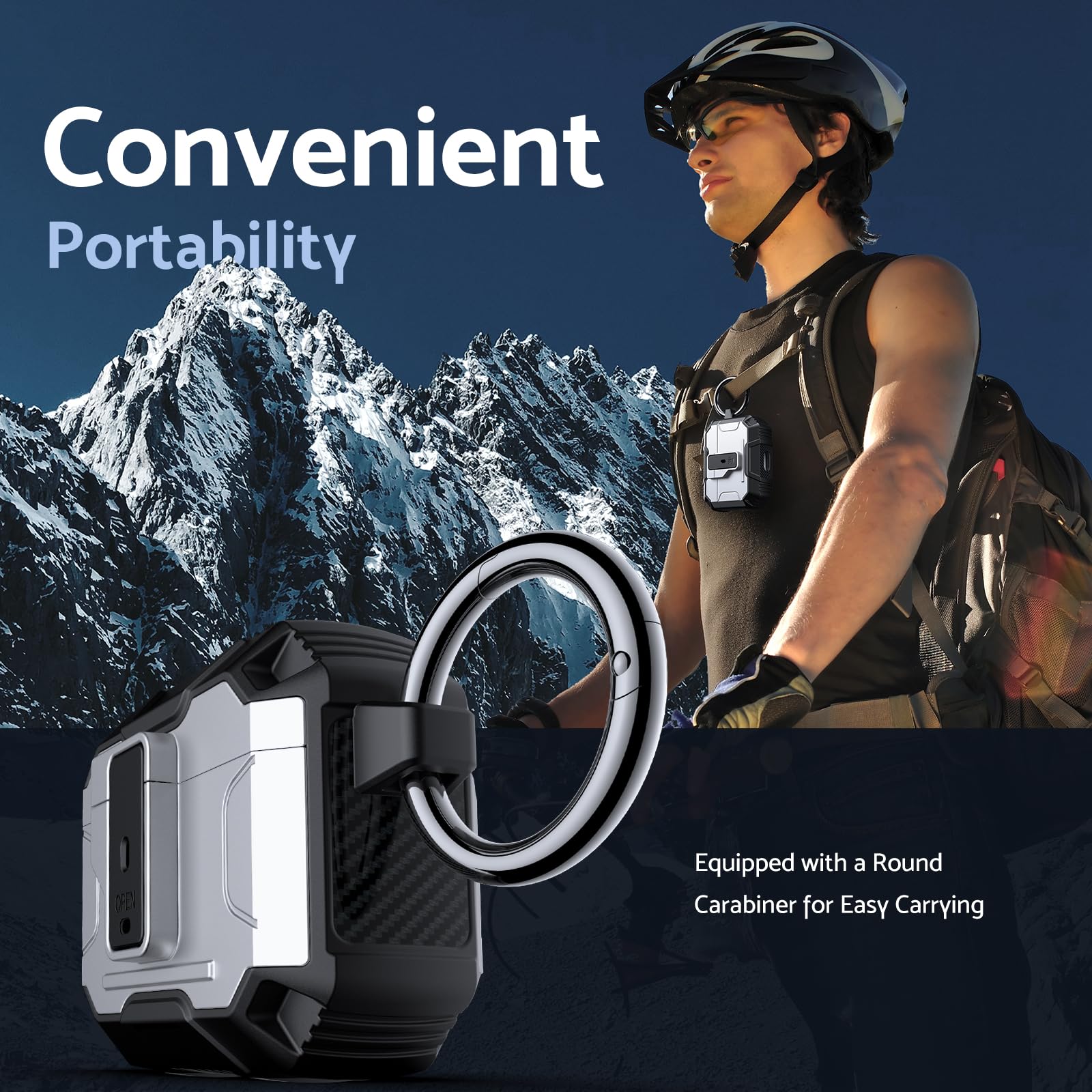 Its lightweight design and compact size make it easy to carry in your pocket, purse, or backpack. Plus, the included carabiner clip lets you attach your AirPods case to your bag or belt loop for added convenience, ensuring your earbuds are always within reach.