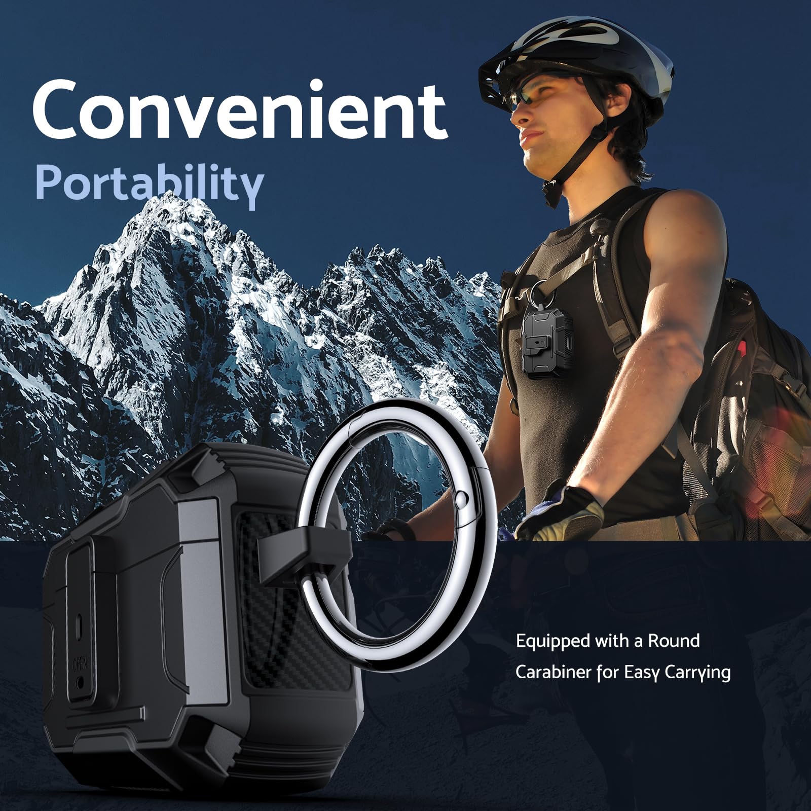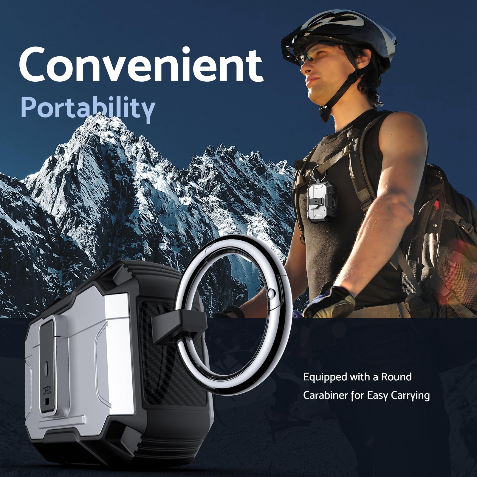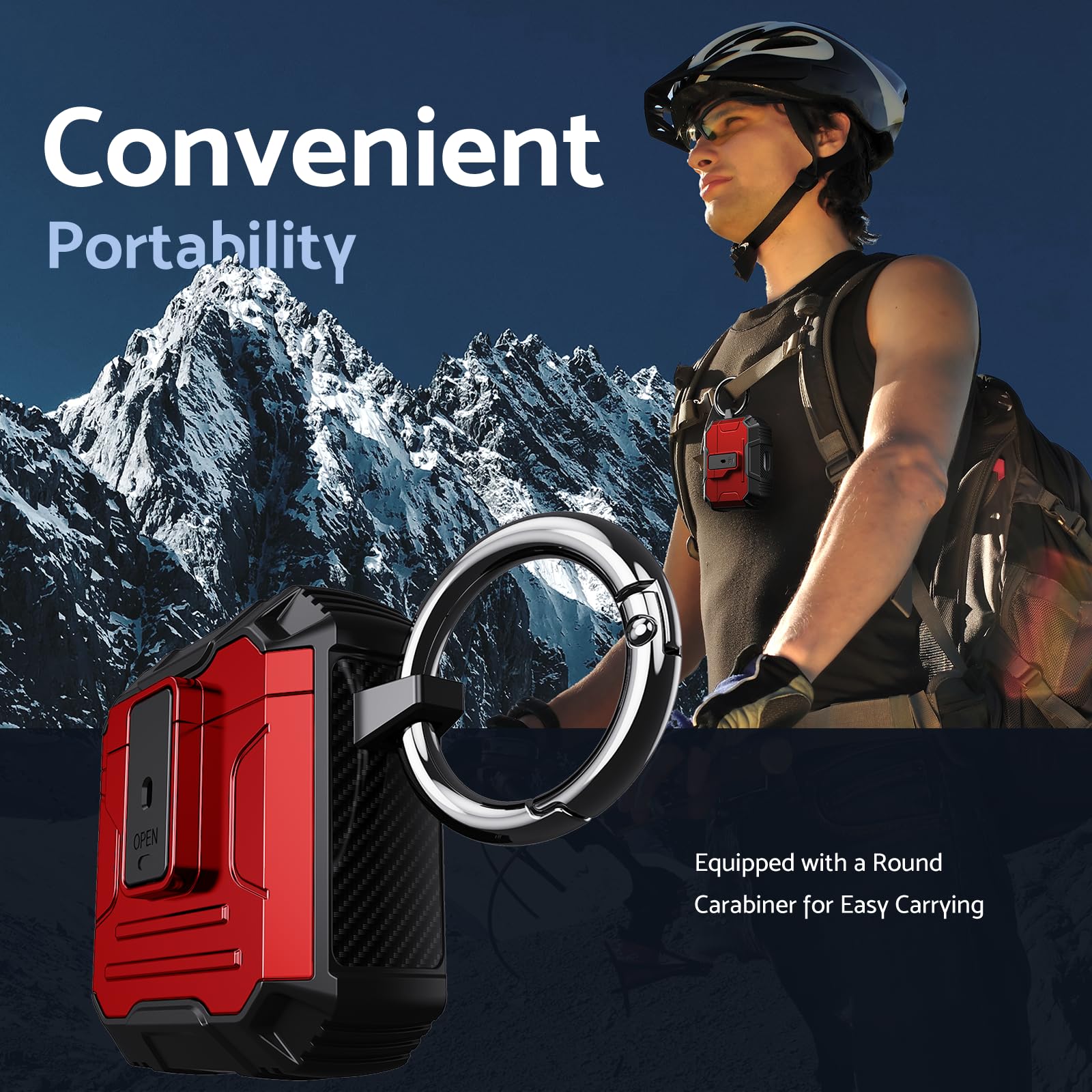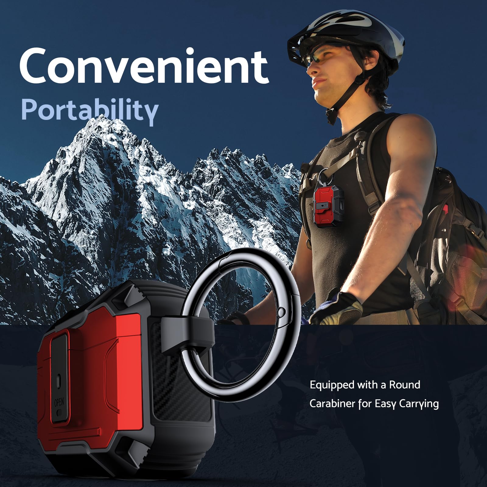 Its lightweight design and compact size make it easy to carry in your pocket, purse, or backpack. Plus, the included carabiner clip lets you attach your AirPods case to your bag or belt loop for added convenience, ensuring your earbuds are always within reach.
