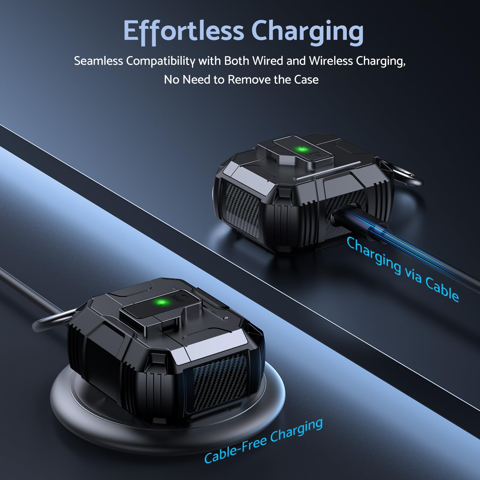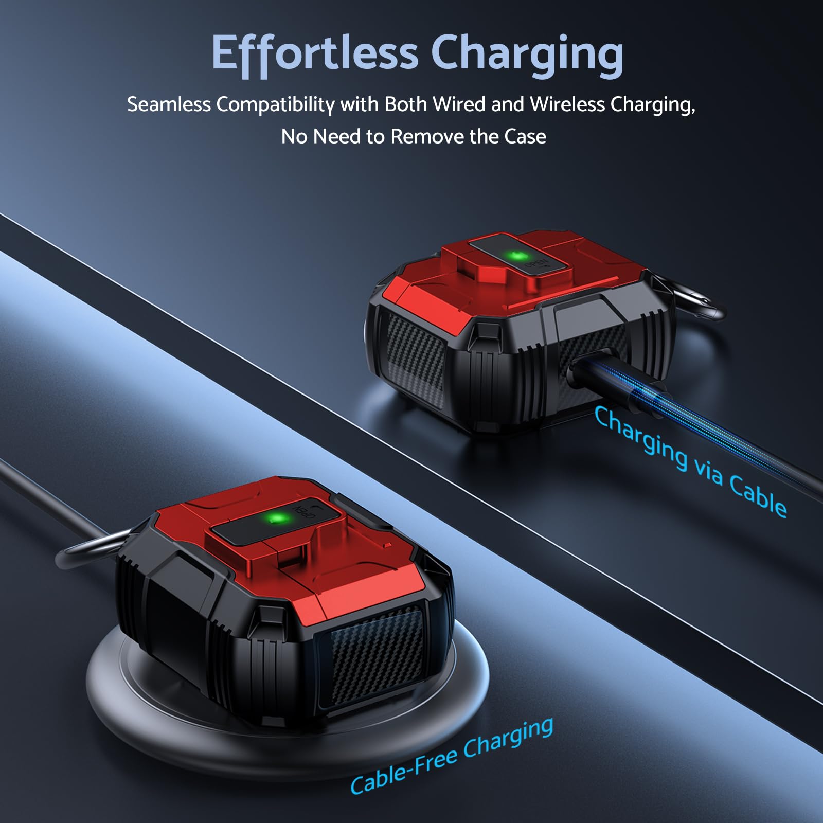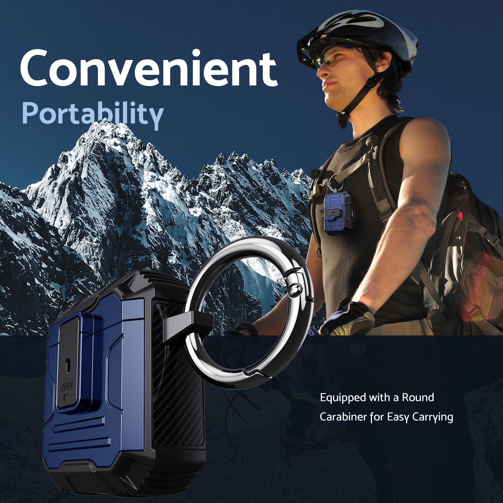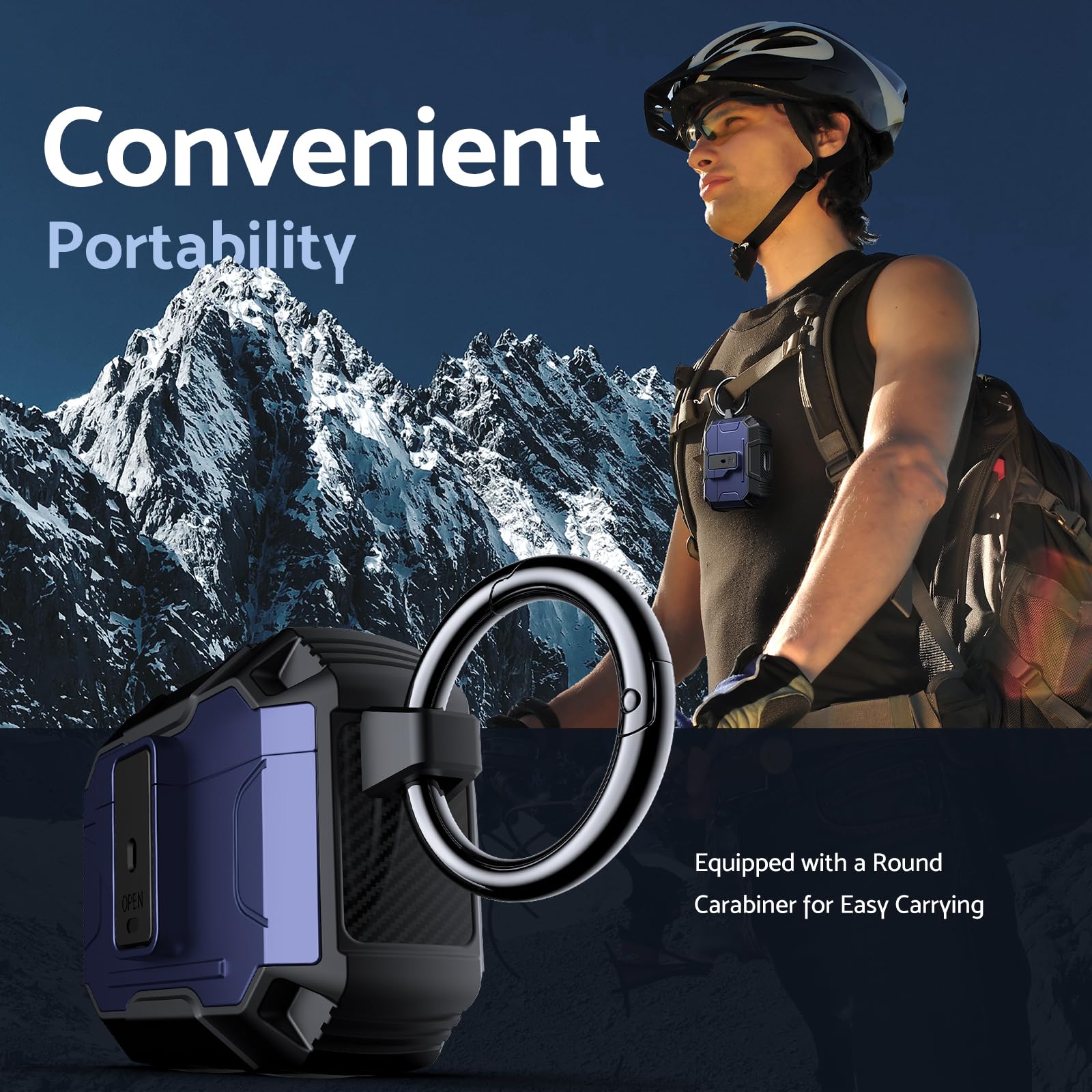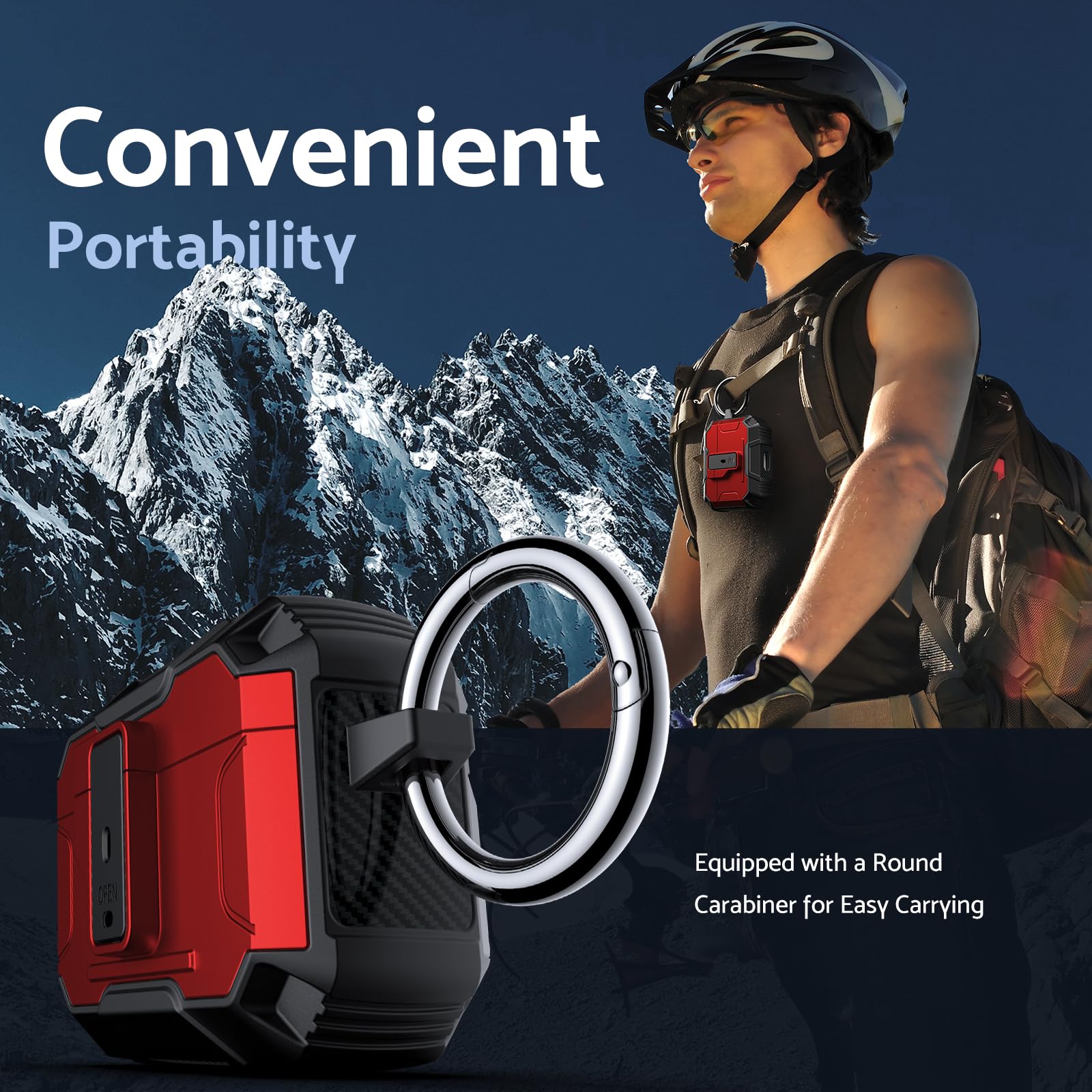 Its lightweight design and compact size make it easy to carry in your pocket, purse, or backpack. Plus, the included carabiner clip lets you attach your AirPods case to your bag or belt loop for added convenience, ensuring your earbuds are always within reach.