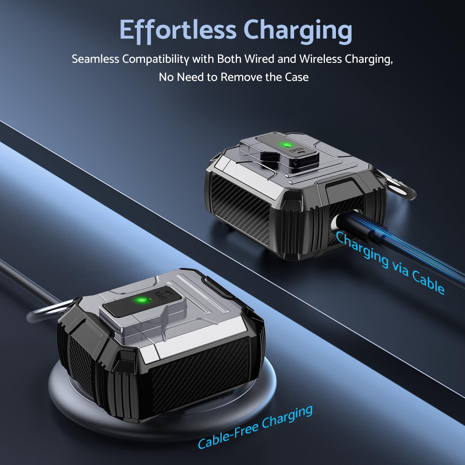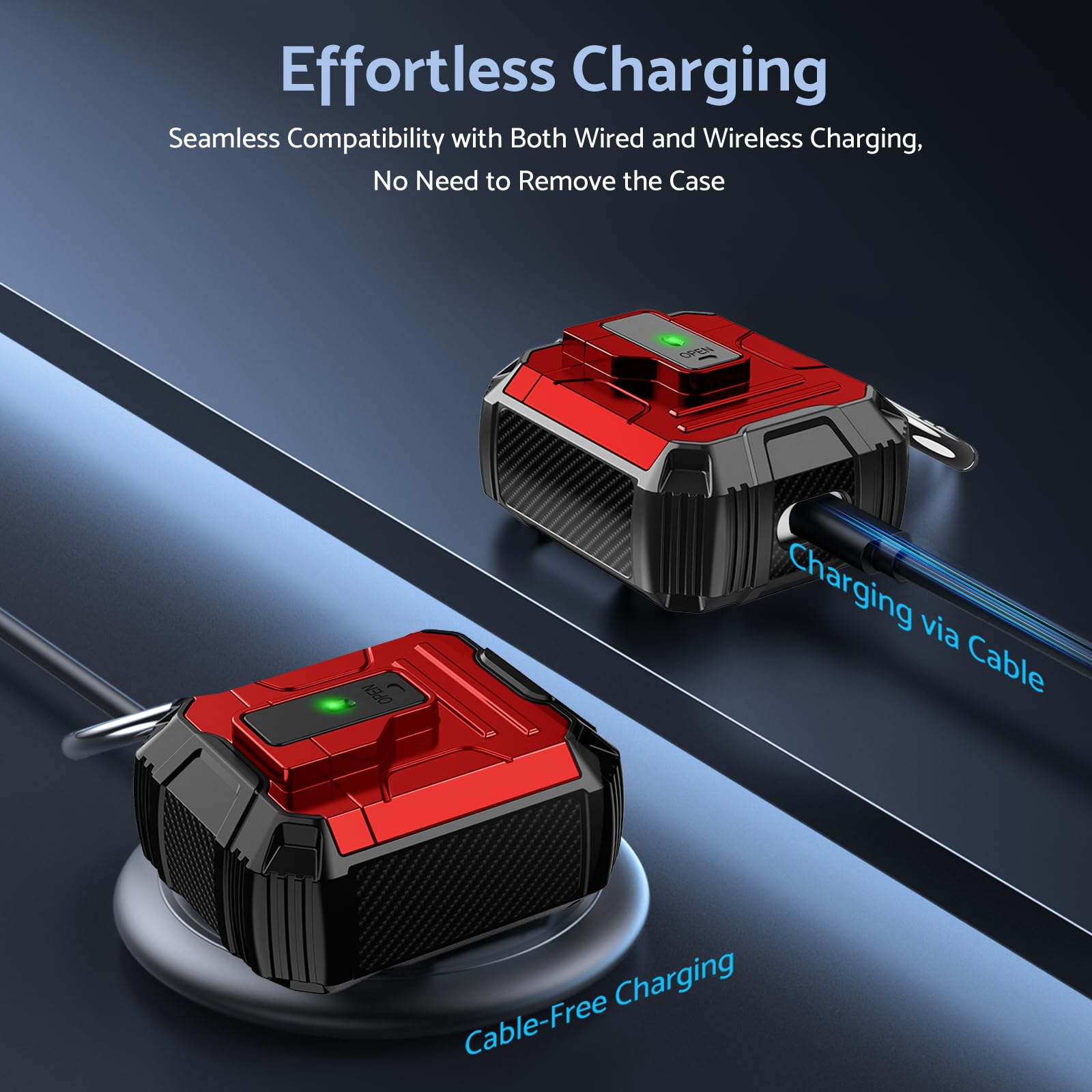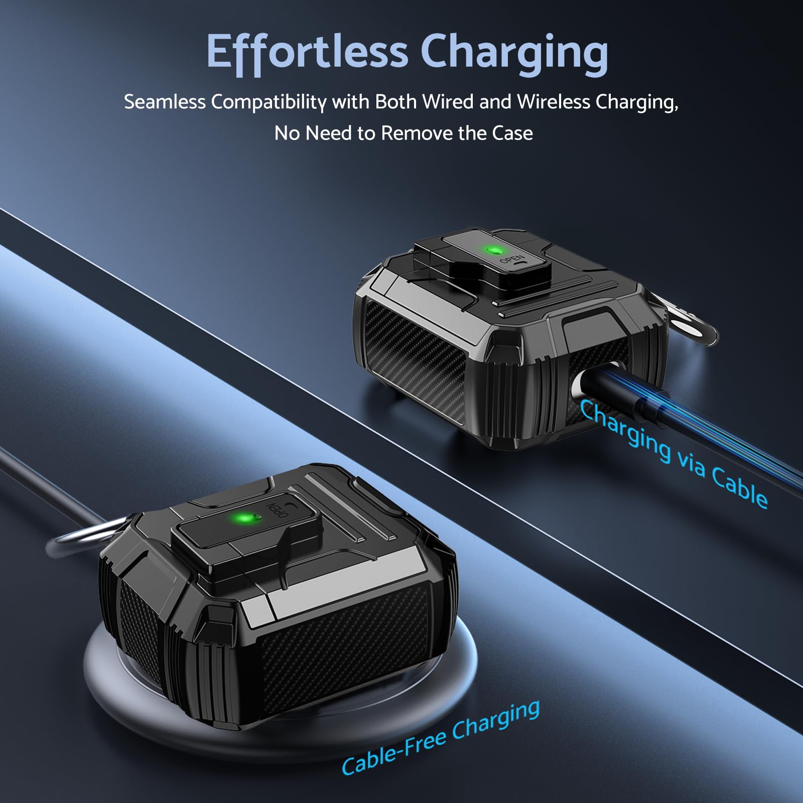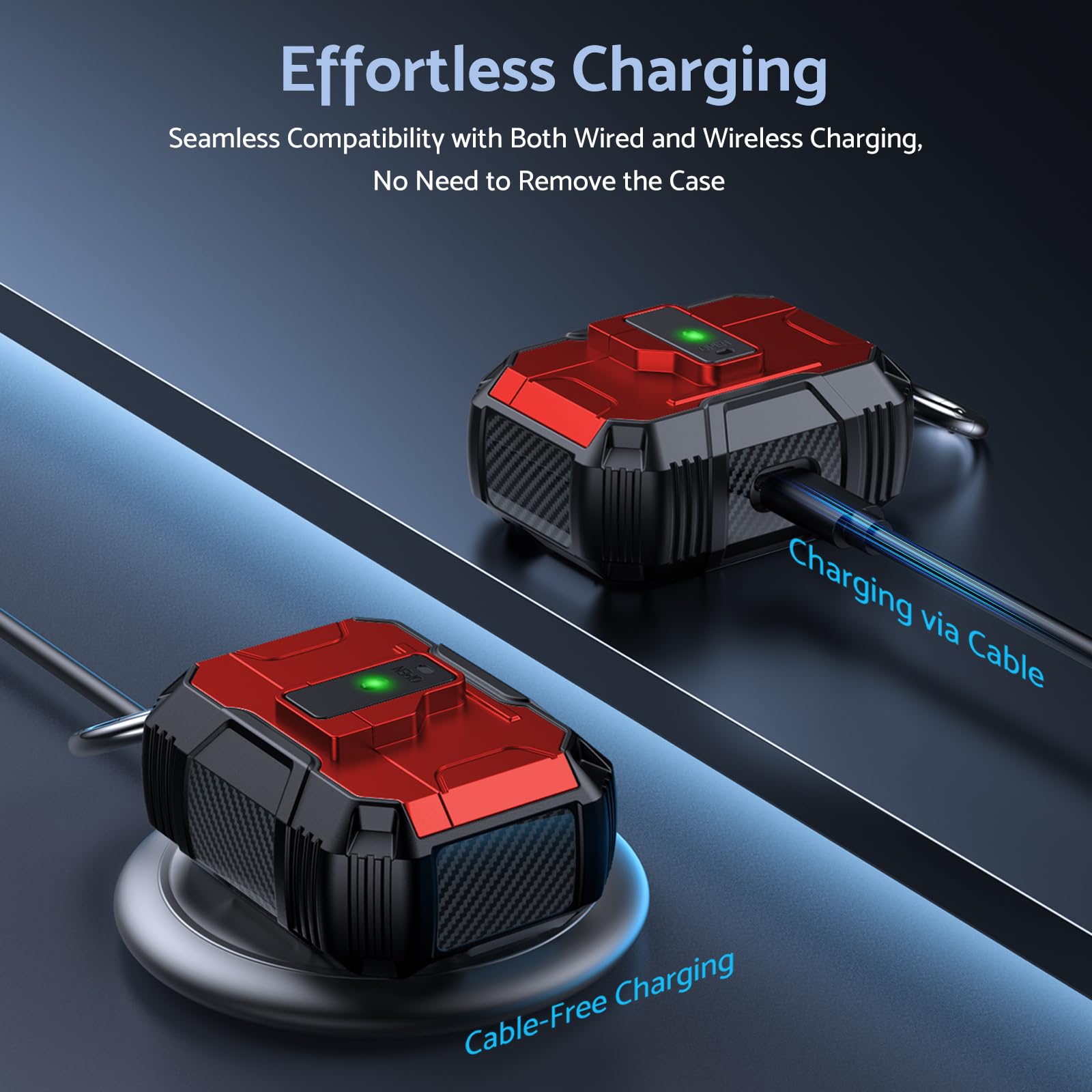Its lightweight design and compact size make it easy to carry in your pocket, purse, or backpack. Plus, the included carabiner clip lets you attach your AirPods case to your bag or belt loop for added convenience, ensuring your earbuds are always within reach.
