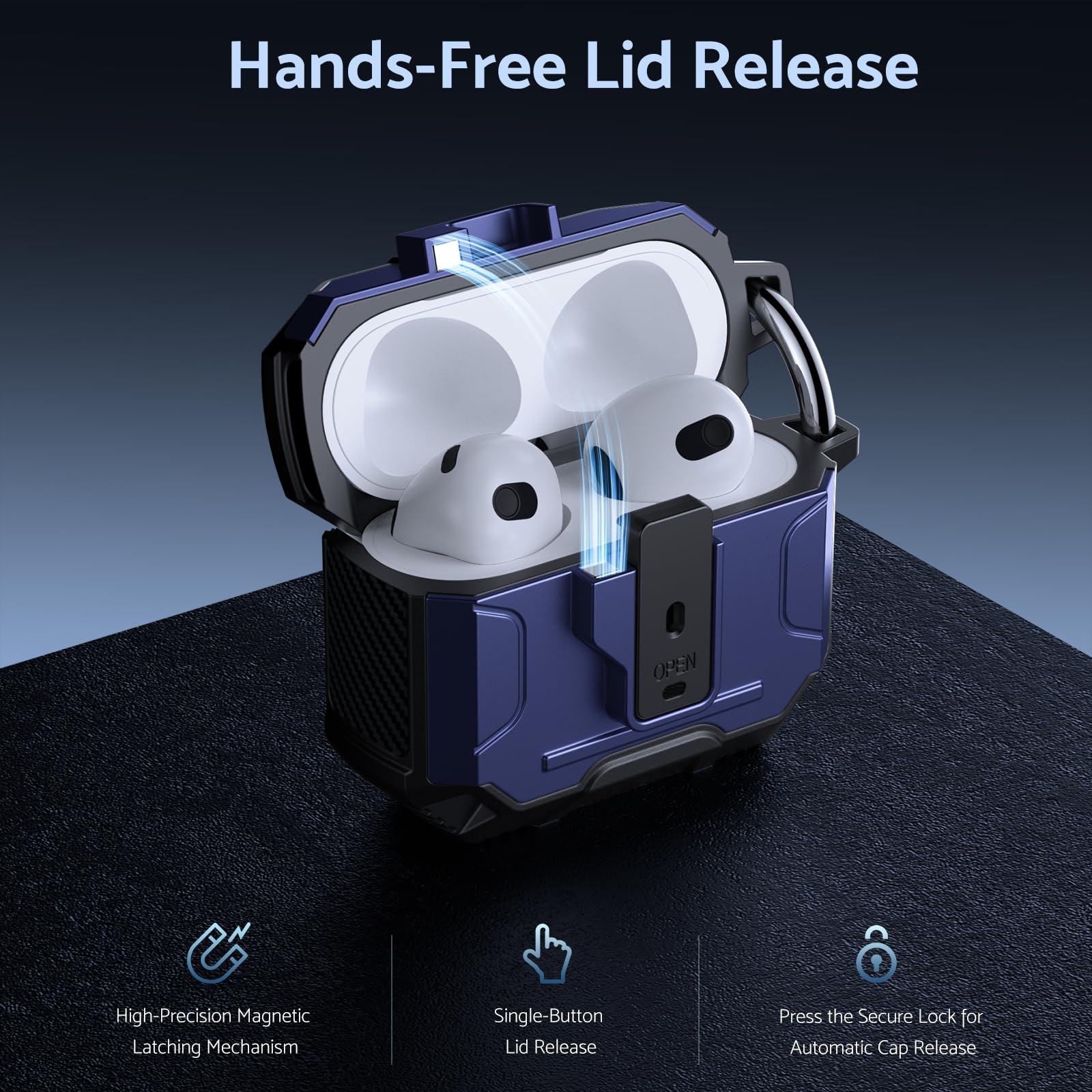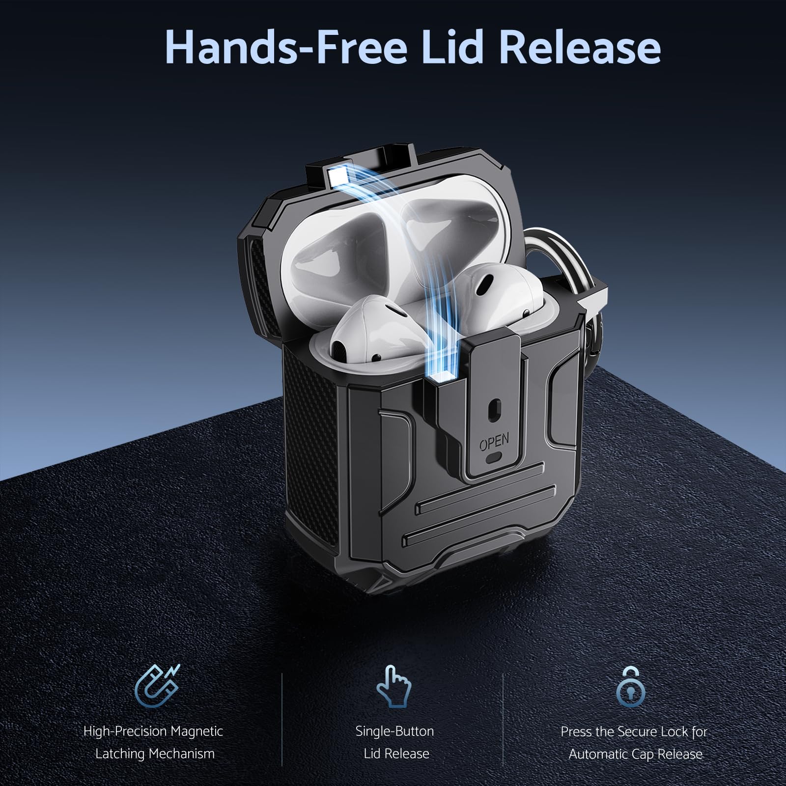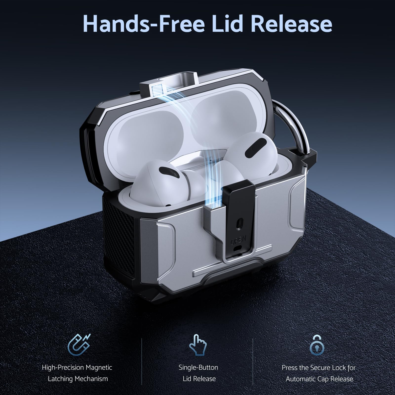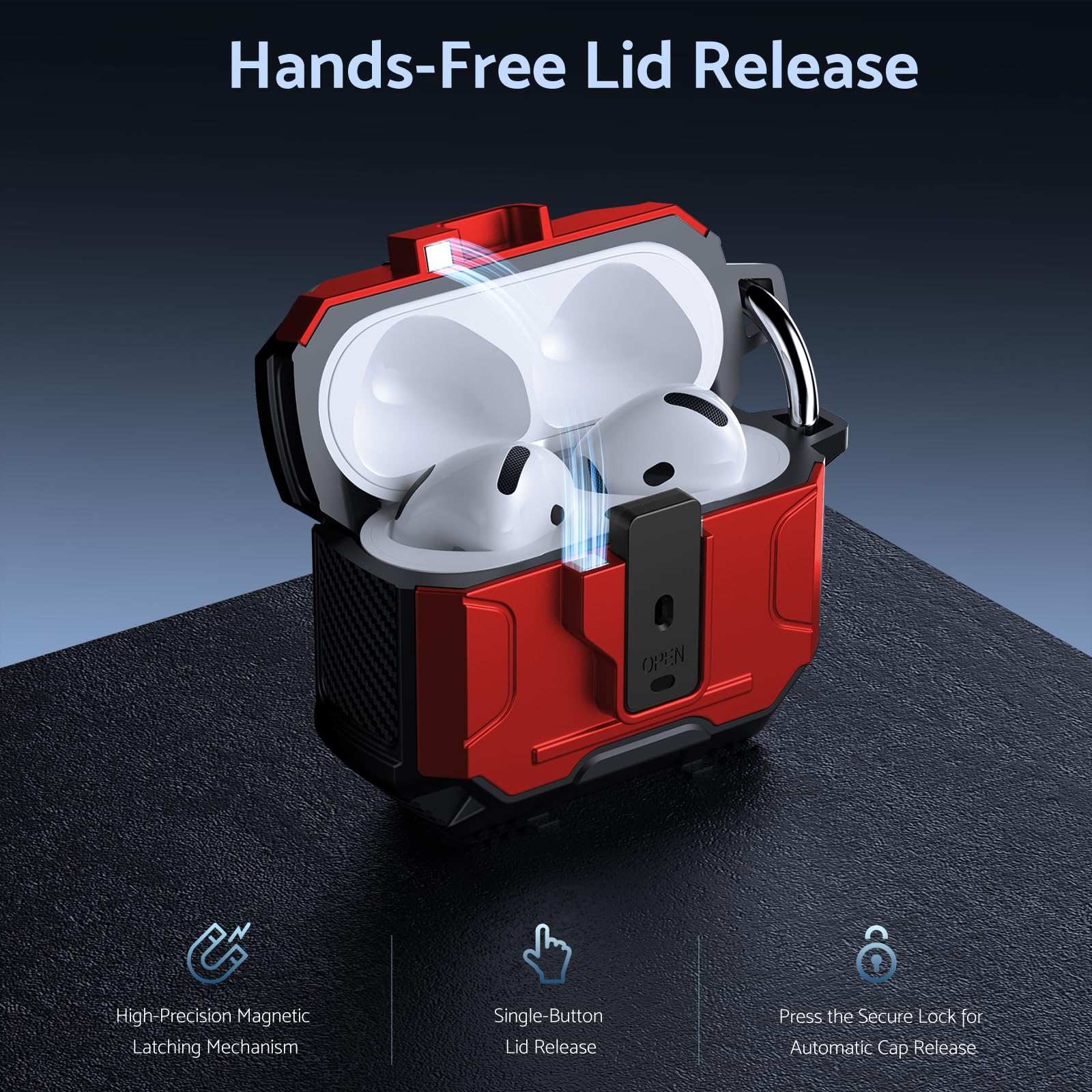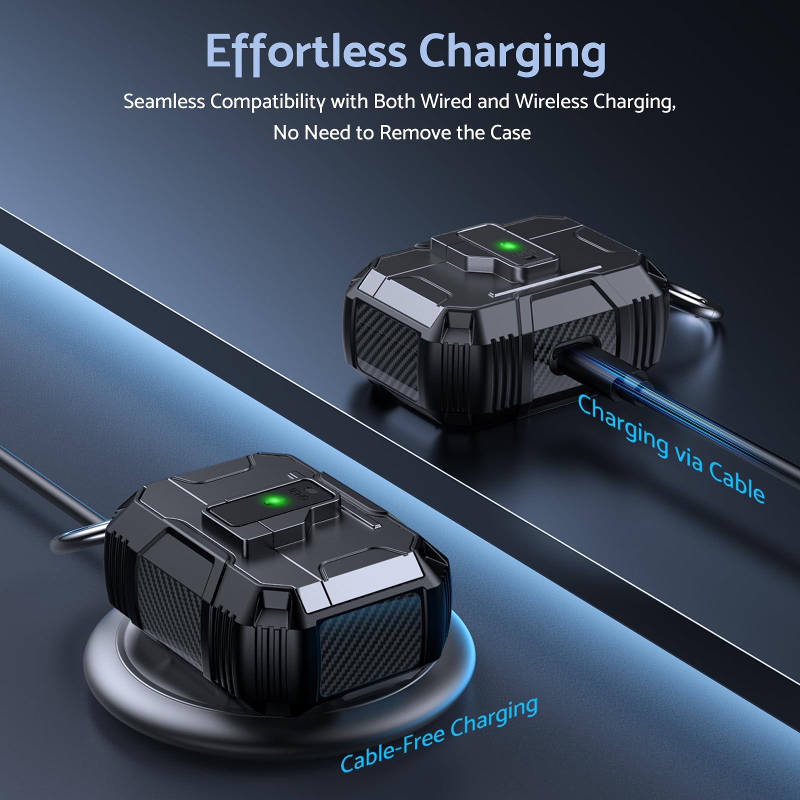 Its lightweight design and compact size make it easy to carry in your pocket, purse, or backpack. Plus, the included carabiner clip lets you attach your AirPods case to your bag or belt loop for added convenience, ensuring your earbuds are always within reach.