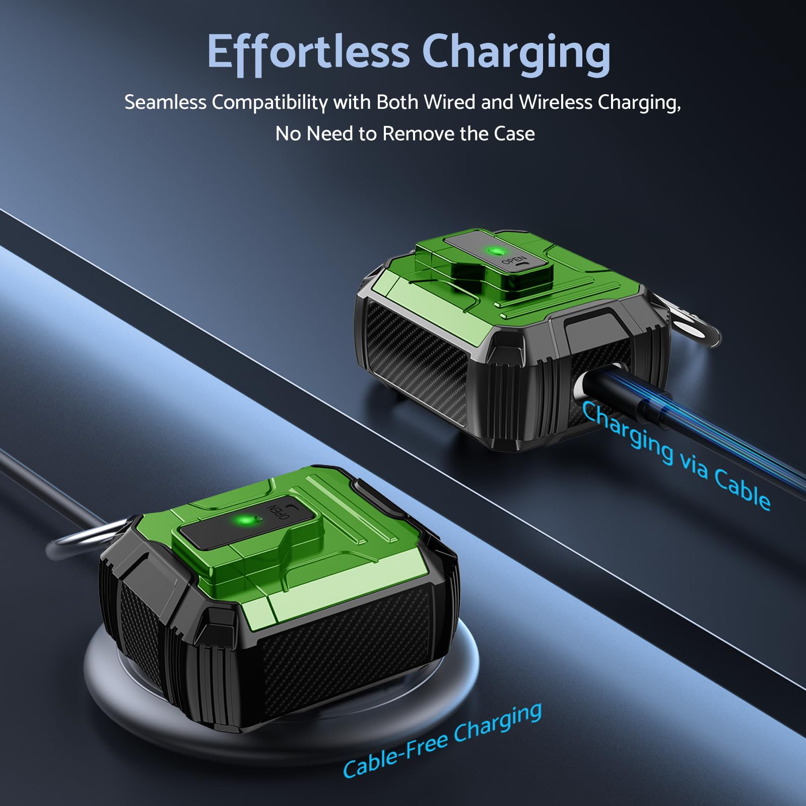 Not only does the ArmorPro Ear Case protect your AirPods, but it also features a unique, stylish design that sets you apart from the crowd. The vibrant green color adds a pop of personality, making it the perfect accessory for anyone looking to express their individuality.