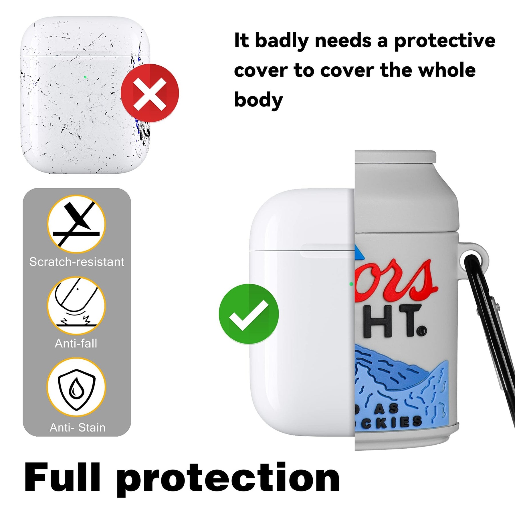The NitroCase is designed with convenience in mind. It features a precise cutout for the charging port, allowing you to charge your AirPods without removing the case. The case also comes with a durable carabiner clip, making it easy to attach to your bag, keys, or belt loop for on-the-go use.