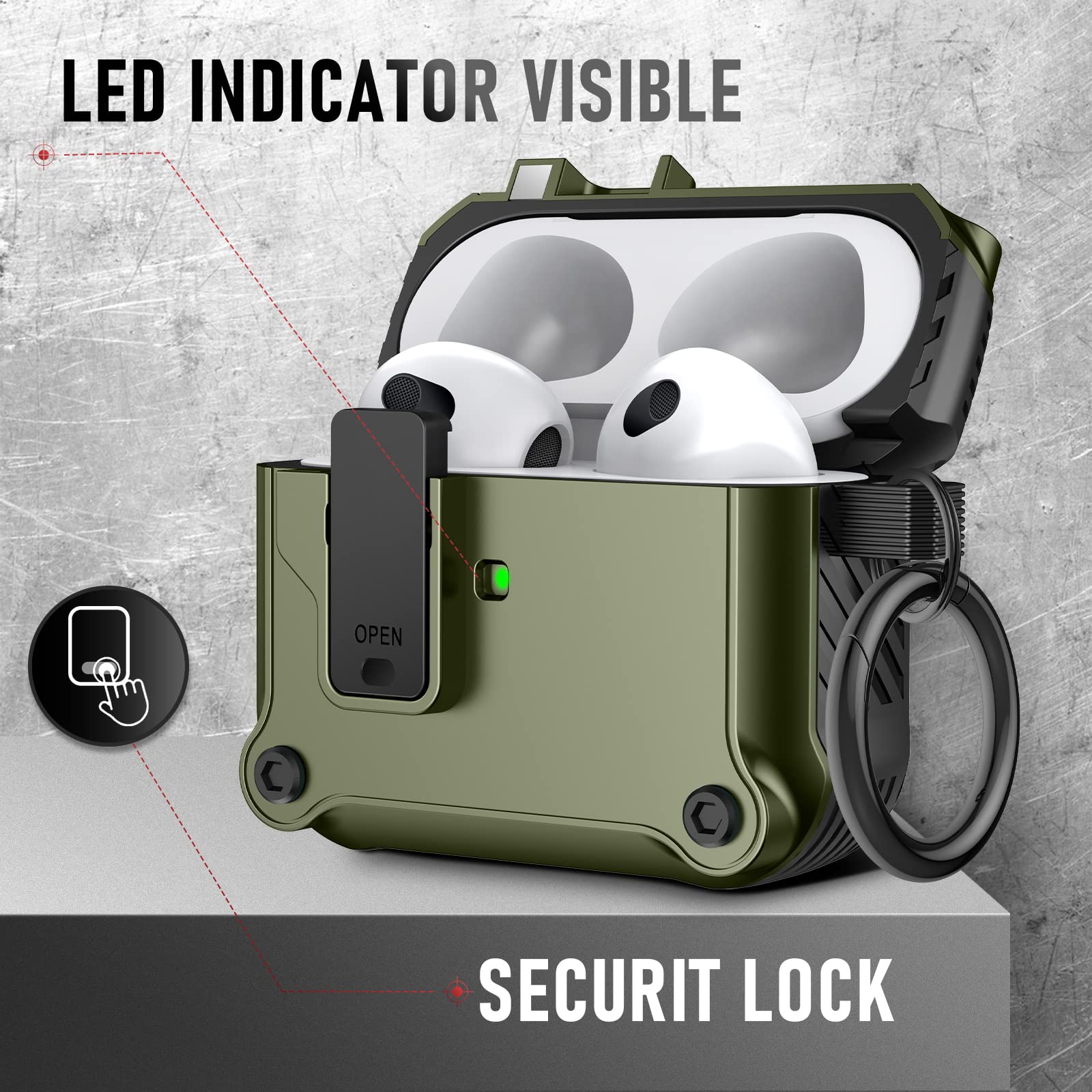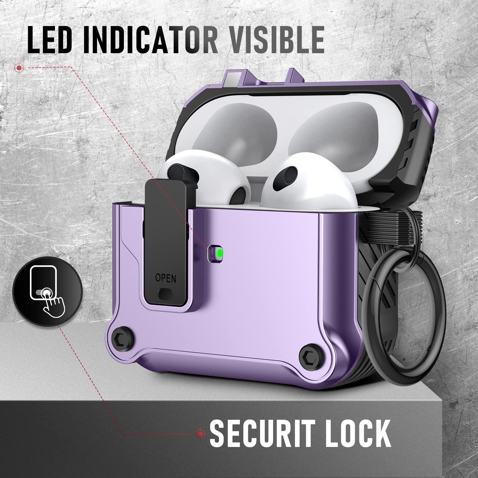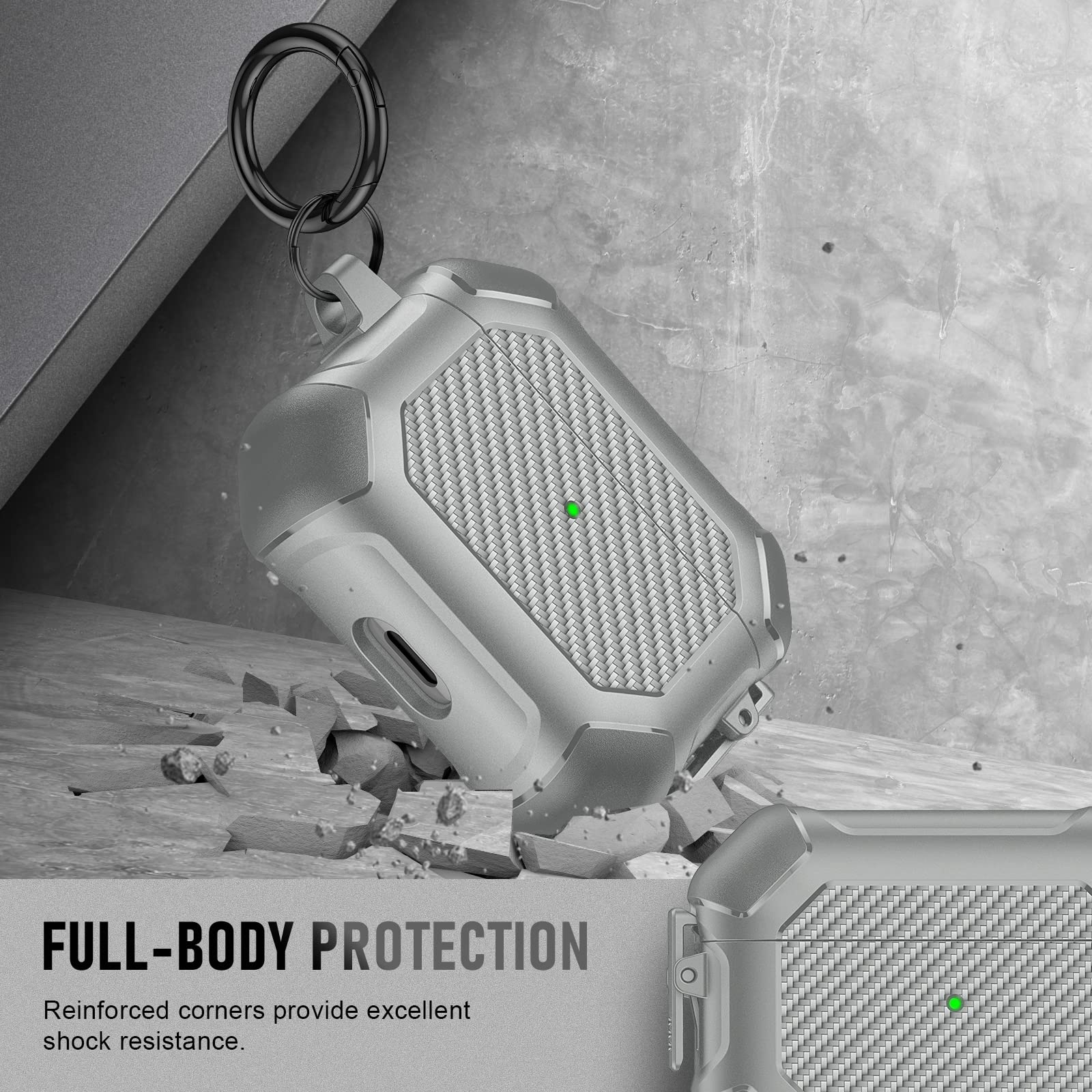 The included keychain adds an extra layer of convenience, allowing you to easily attach your AirPods case to your bag, belt loop, or keys. Whether you're on the go or simply looking to keep your AirPods close, this feature makes it a breeze to carry them wherever you need.