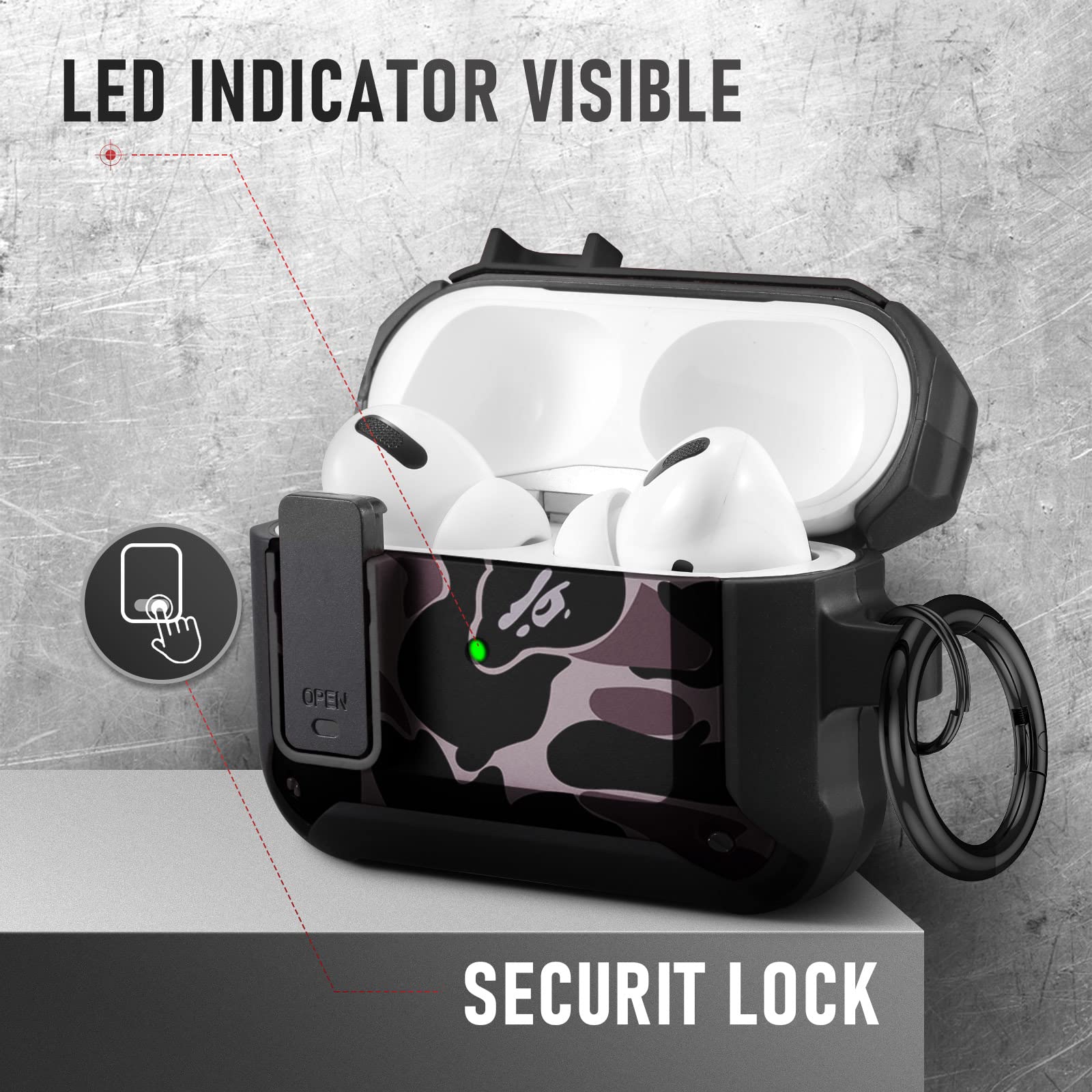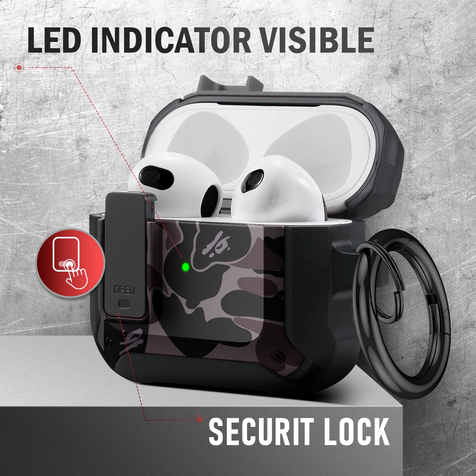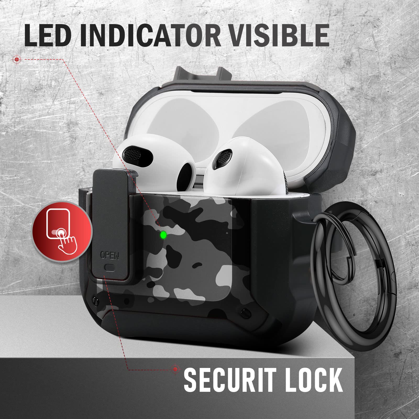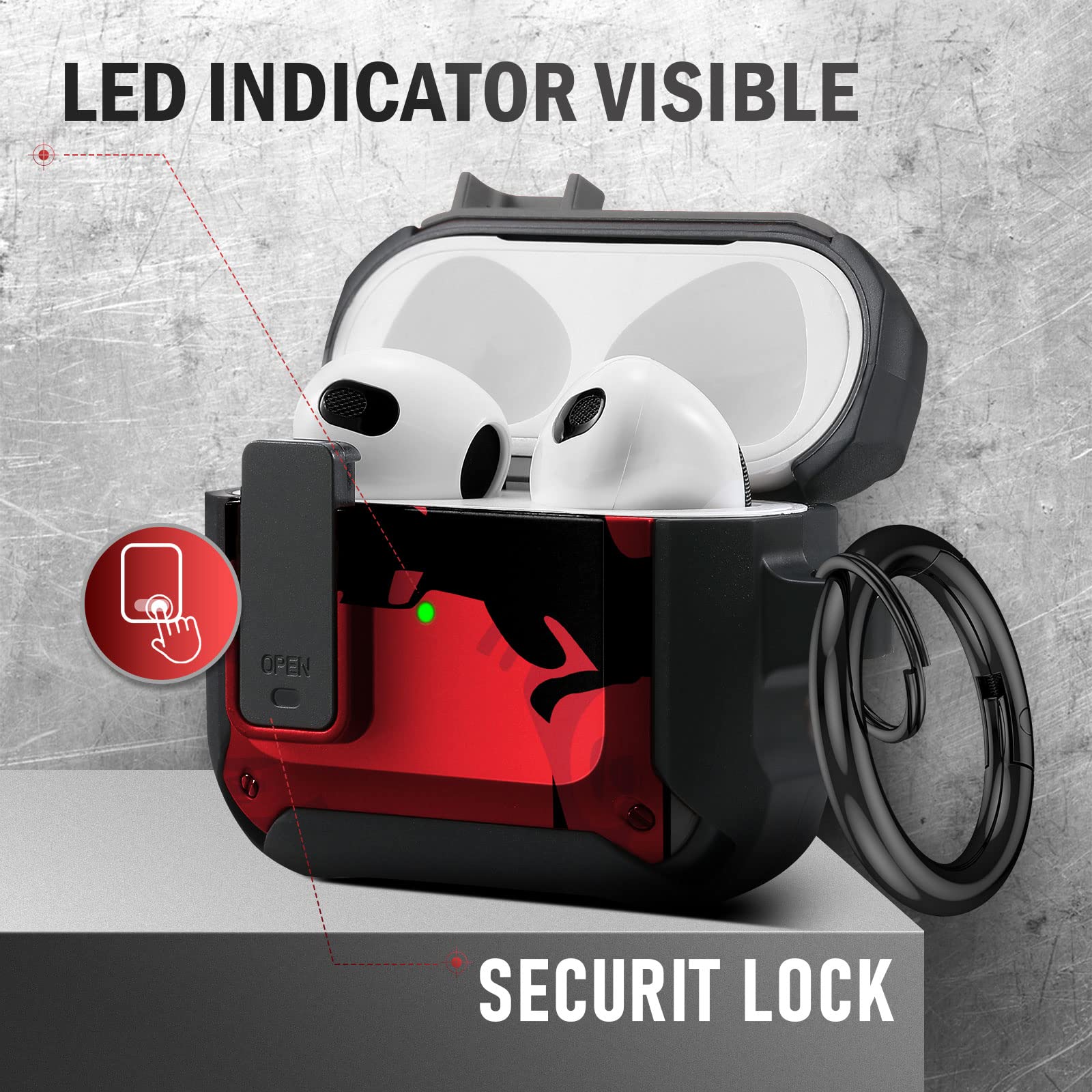 The included keychain adds an extra layer of convenience, allowing you to easily attach your AirPods case to your bag, belt loop, or keys. Whether you're on the go or simply looking to keep your AirPods close, this feature makes it a breeze to carry them wherever you need.