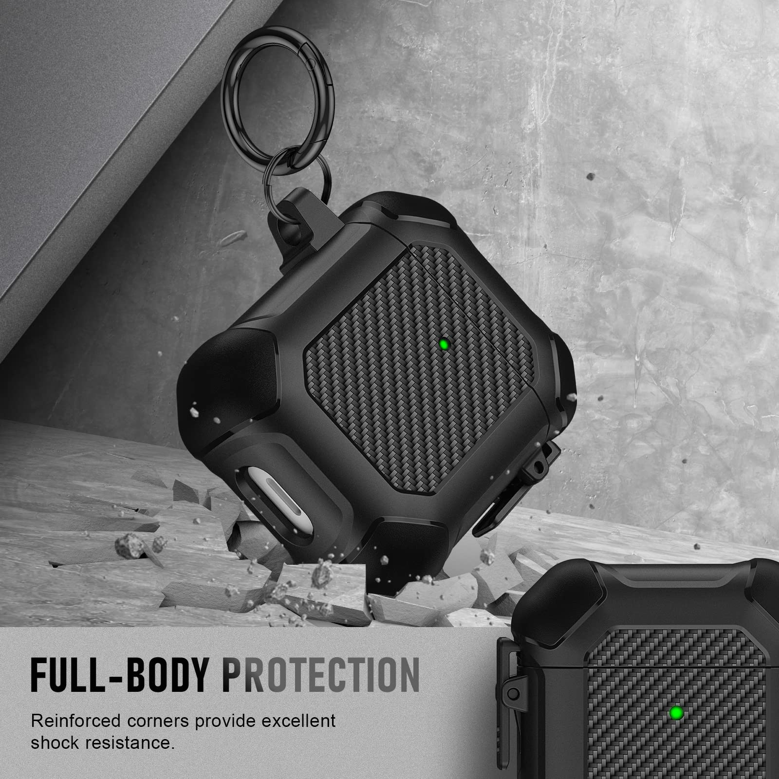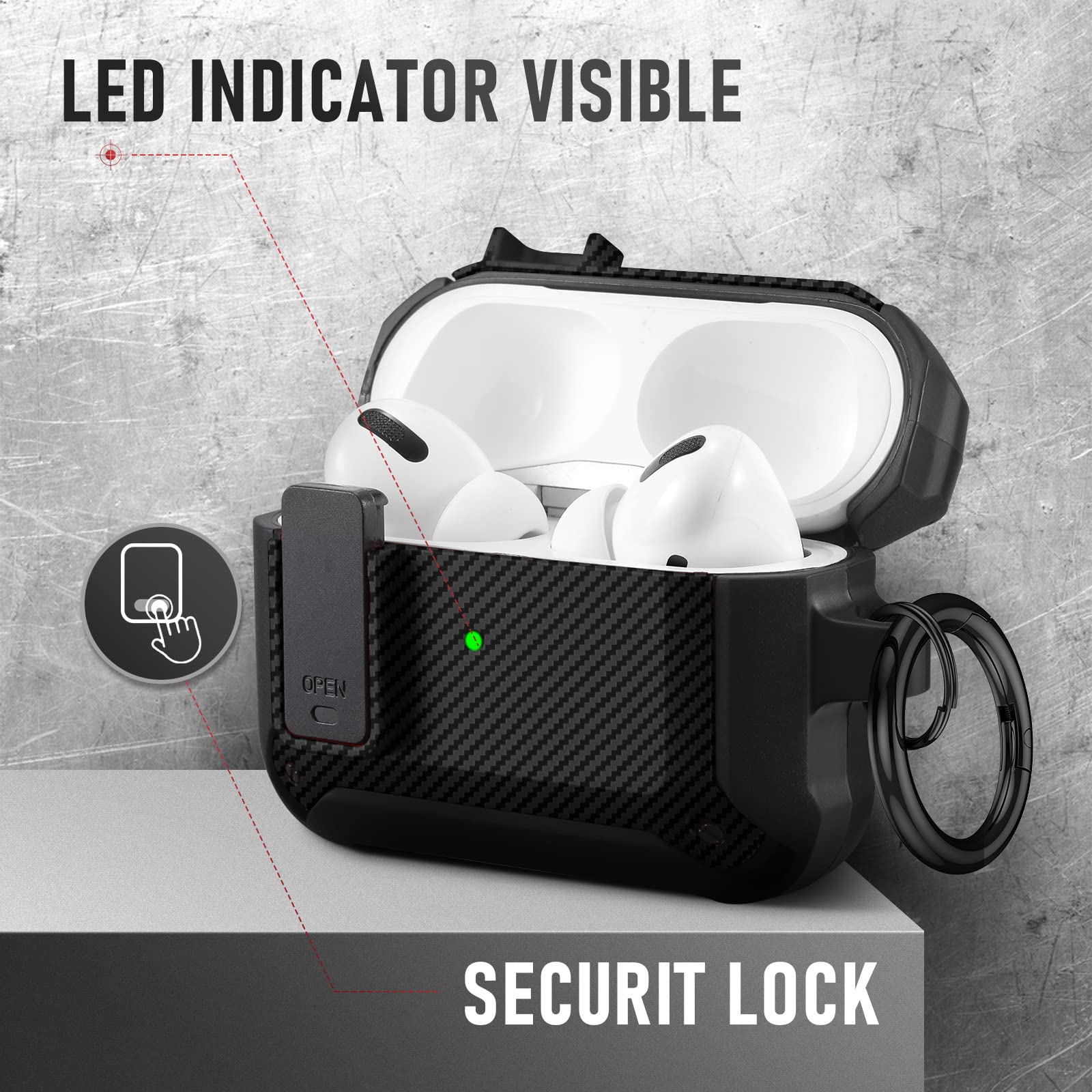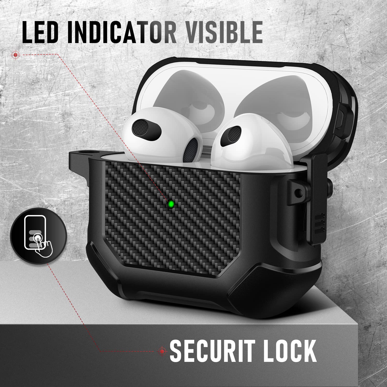 Crafted from high-quality carbon fiber, this case is not only lightweight but also incredibly strong, safeguarding your AirPods against drops, scratches, and everyday wear and tear. Its precision-fit design ensures that your AirPods remain secure and accessible at all times.