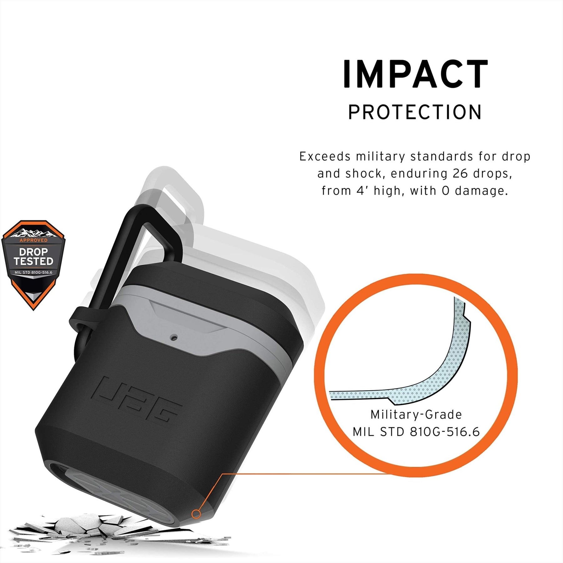 The UAG AirPods Case with Carabiner is also wireless charging compatible, so you can easily charge your AirPods without having to remove the case. The precise cutouts provide easy access to the charging port and pairing button.