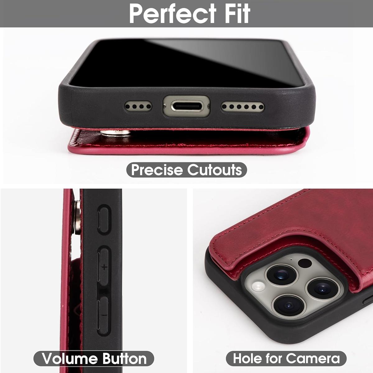 Upgrade your mobile accessory collection with the Arae Wine Red iPhone 15 Pro Wallet Case—where style meets practicality!