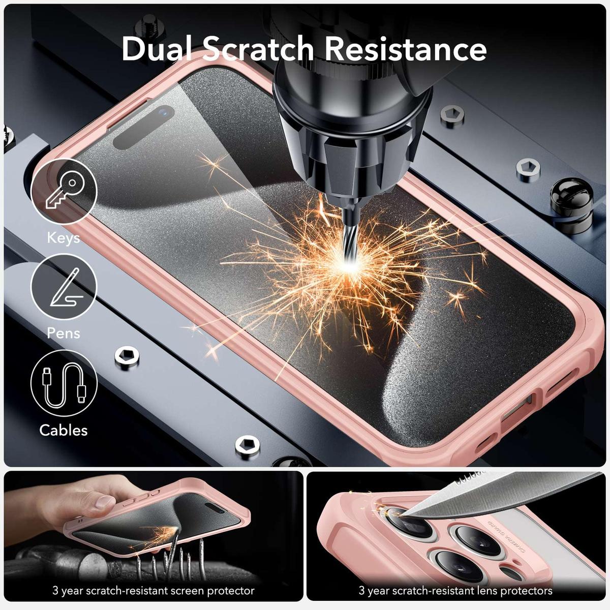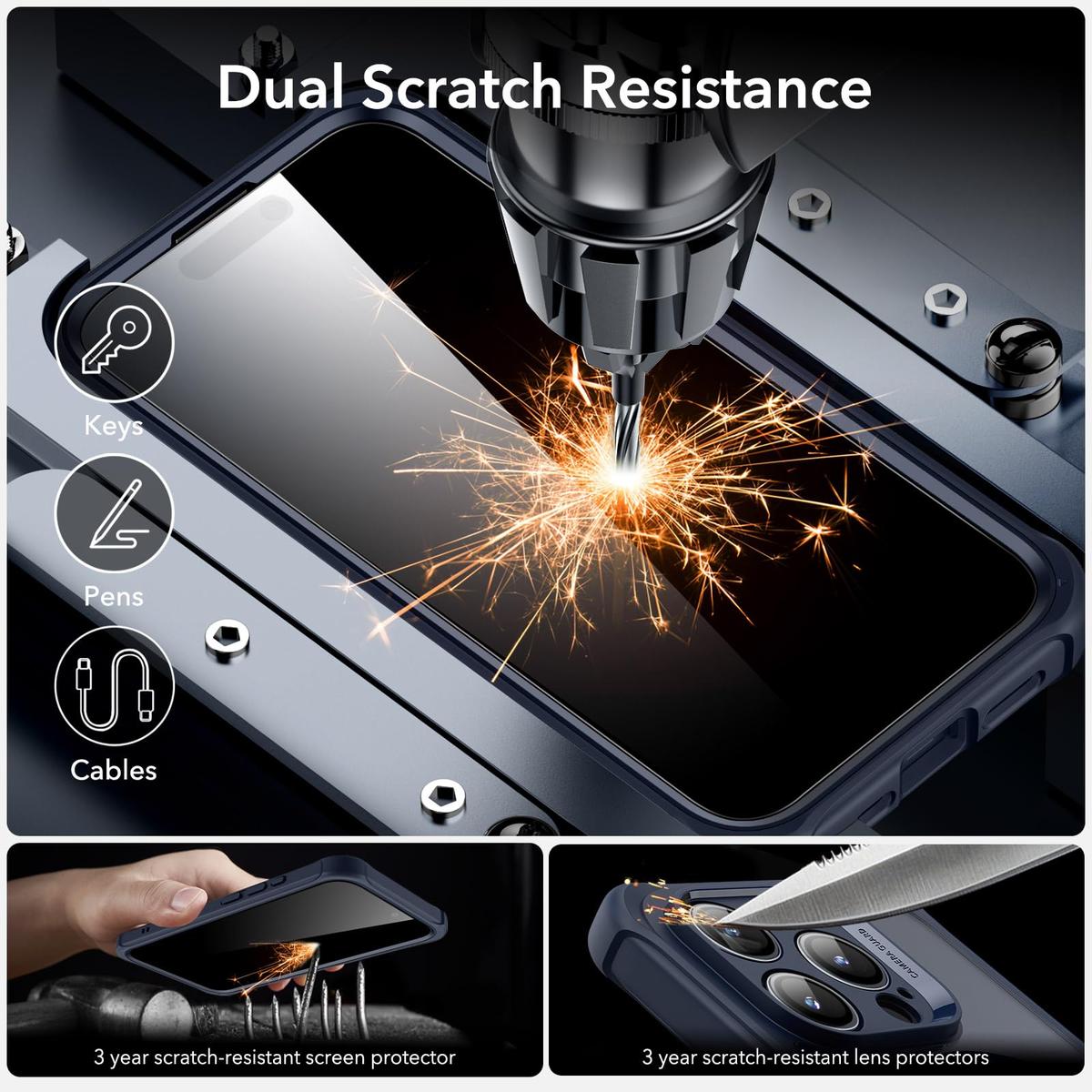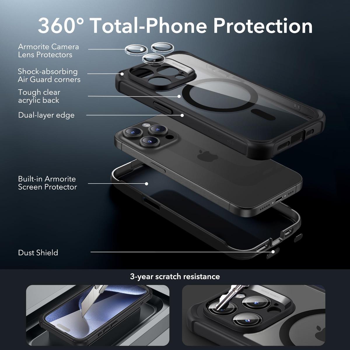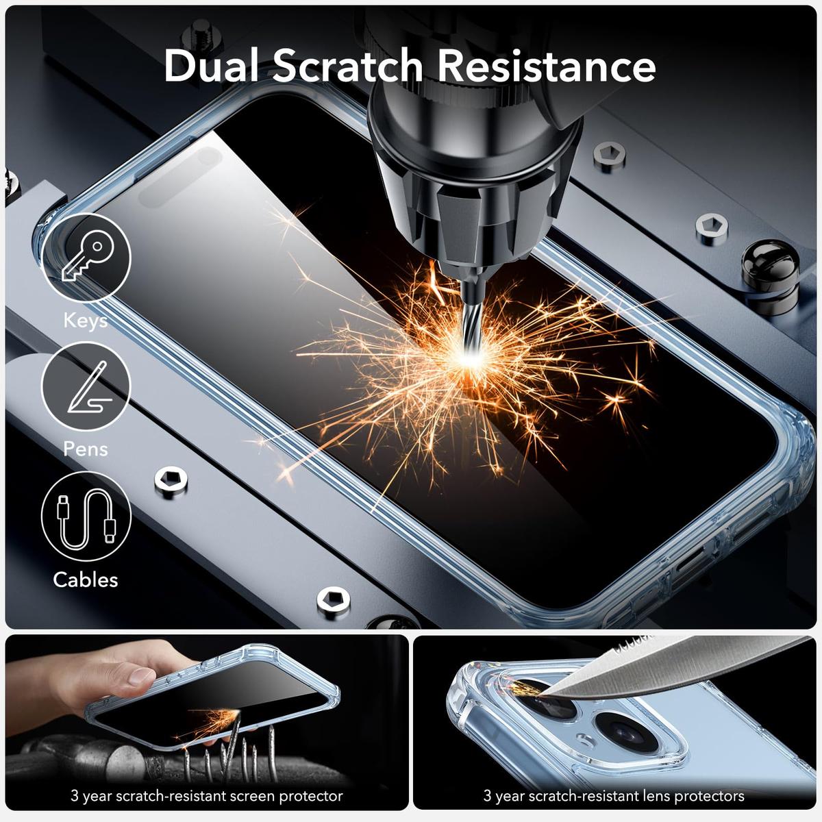 The crystal clear design of this case allows you to showcase the sleek design of your iPhone 15 Plus while still keeping it safe from scratches, dings, and drops. The transparent back panel is made from hard polycarbonate material and is scratch-resistant, ensuring your phone stays looking brand new for longer.