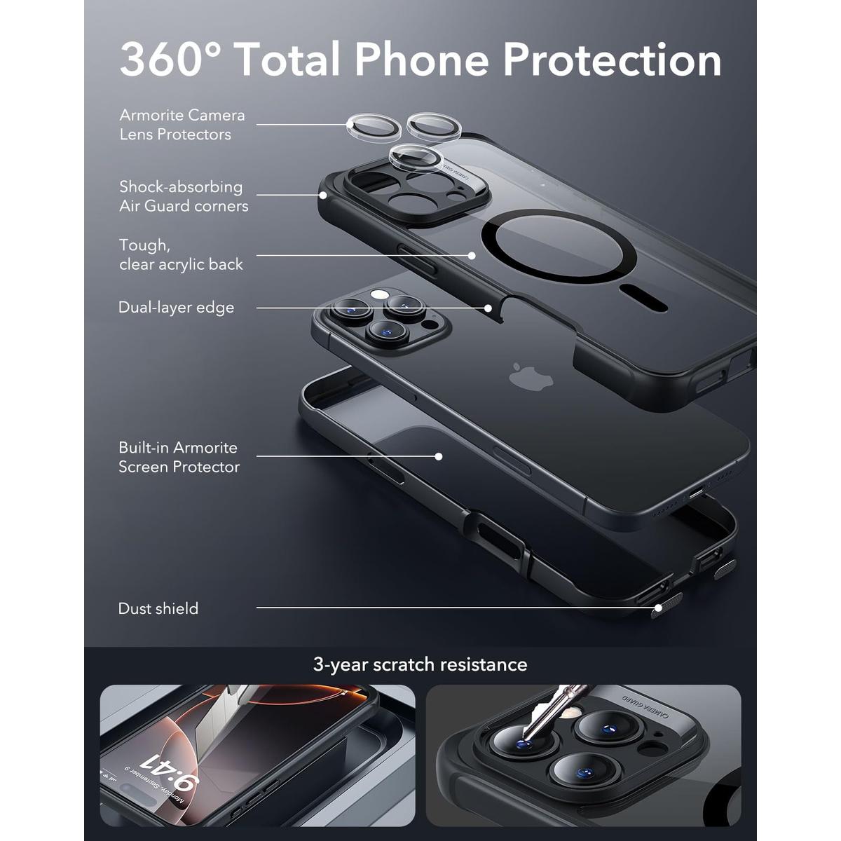 The ESR ShieldMax Clear Case features reinforced corners and air cushion technology, providing superior shock absorption to protect your phone from impact. It also has raised bezels to protect your screen and camera bump, keeping them safe from scratches and cracks.