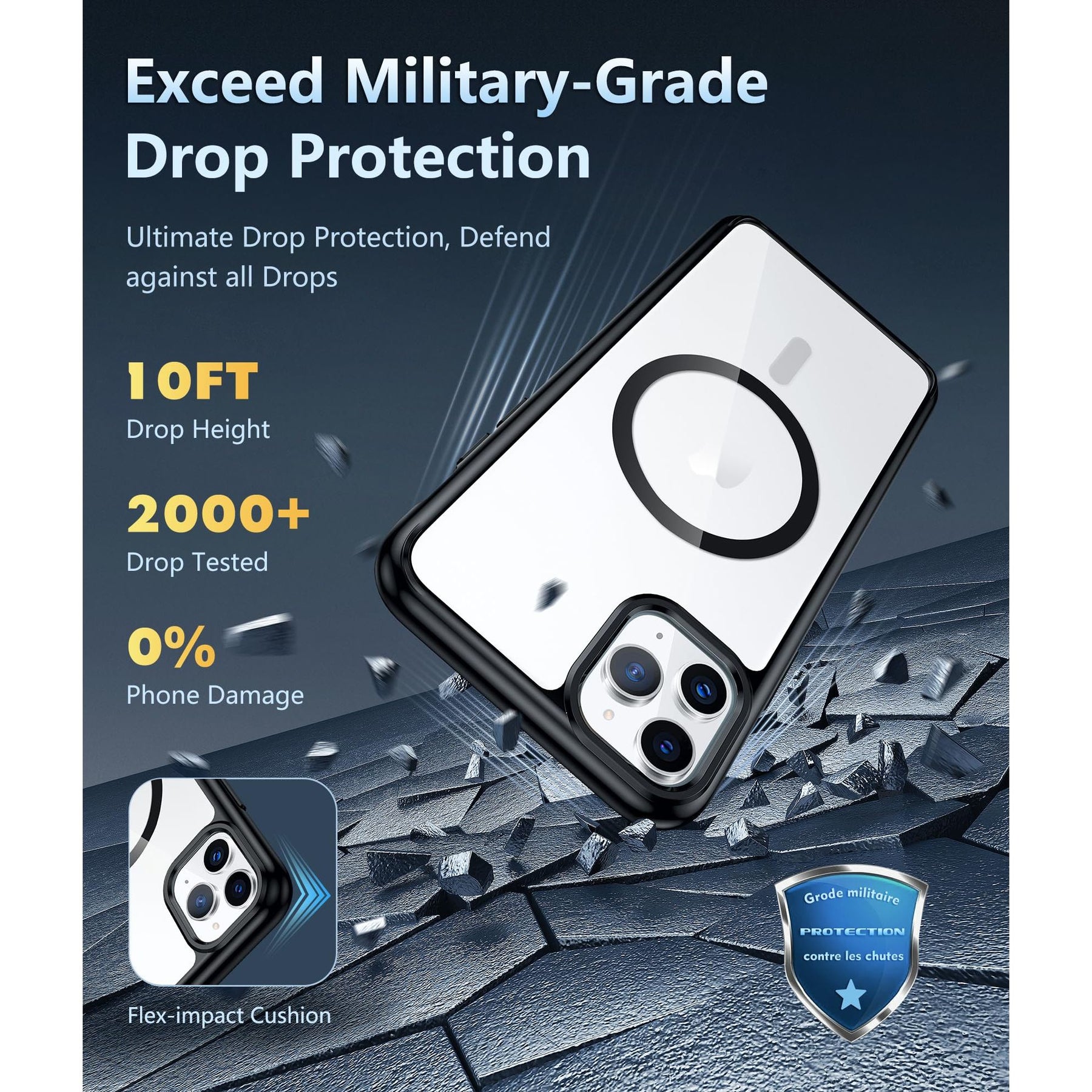 10FT Military Grade Protection: Passed Military Drop Tested up to 10 FT. This iPhone 12 Pro Max clear case is made with rigid polycarbonate backplane, edge TPU bumpers and 4 corner airbags for impact absorption