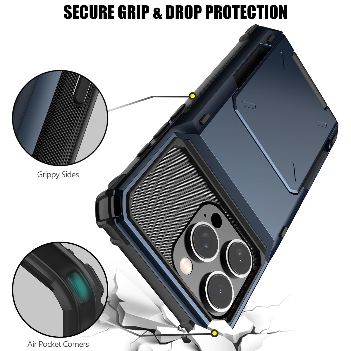 - Grippy Sides+Sleek exterior: It slides in and out of pocket easily,featuring grooved edges for easy grip during phone use,it prevents slipping off hands.Package include one wallet case for iPhone 16 Pro with card holder only.