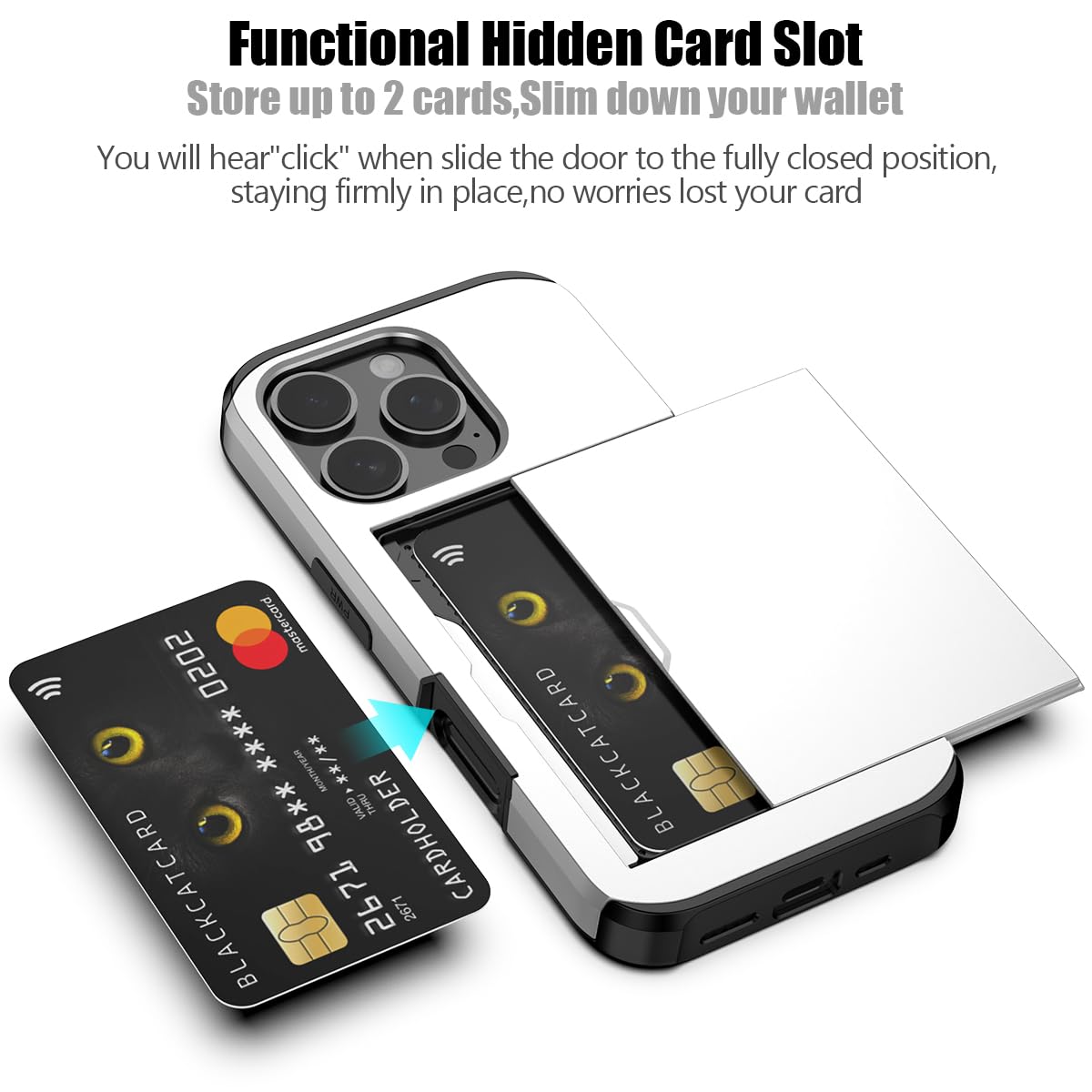 - Hidden Card Slot Design: Slim down your wallet, store up to 2 cards,carry your ID and credit card instead of dragging your huge wallet everywhere,with all essentials in one hand,you will love how convenient it is. You will hear"click" when slide the door to the fully closed position,the slider staying firmly in place,no worries lost your card.