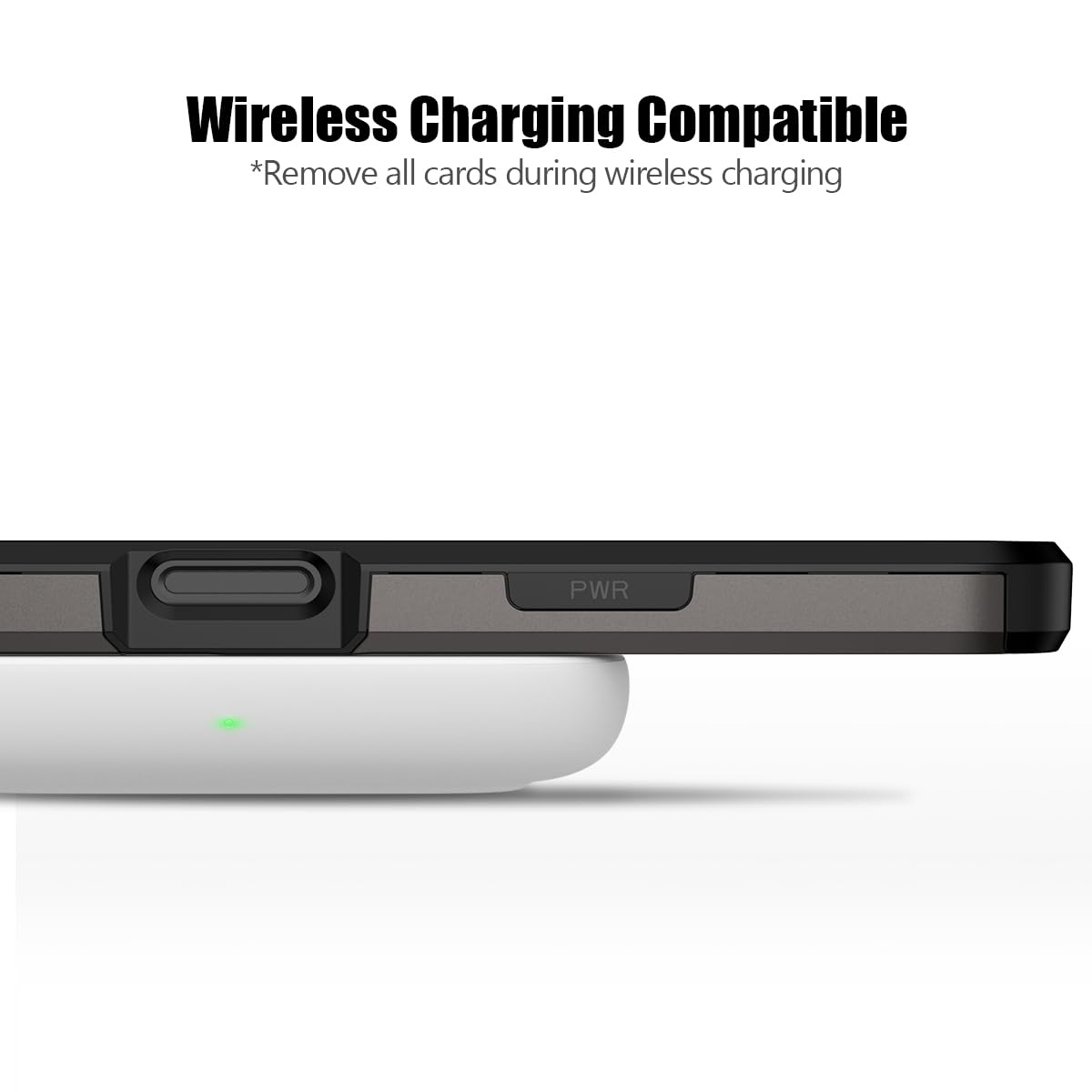 - Sleek exterior is easy to slide in and out of pockets. Wireless Charging without having to remove the case. *Reminder: Please remove all cards from the hidden card slot during wireless charging.