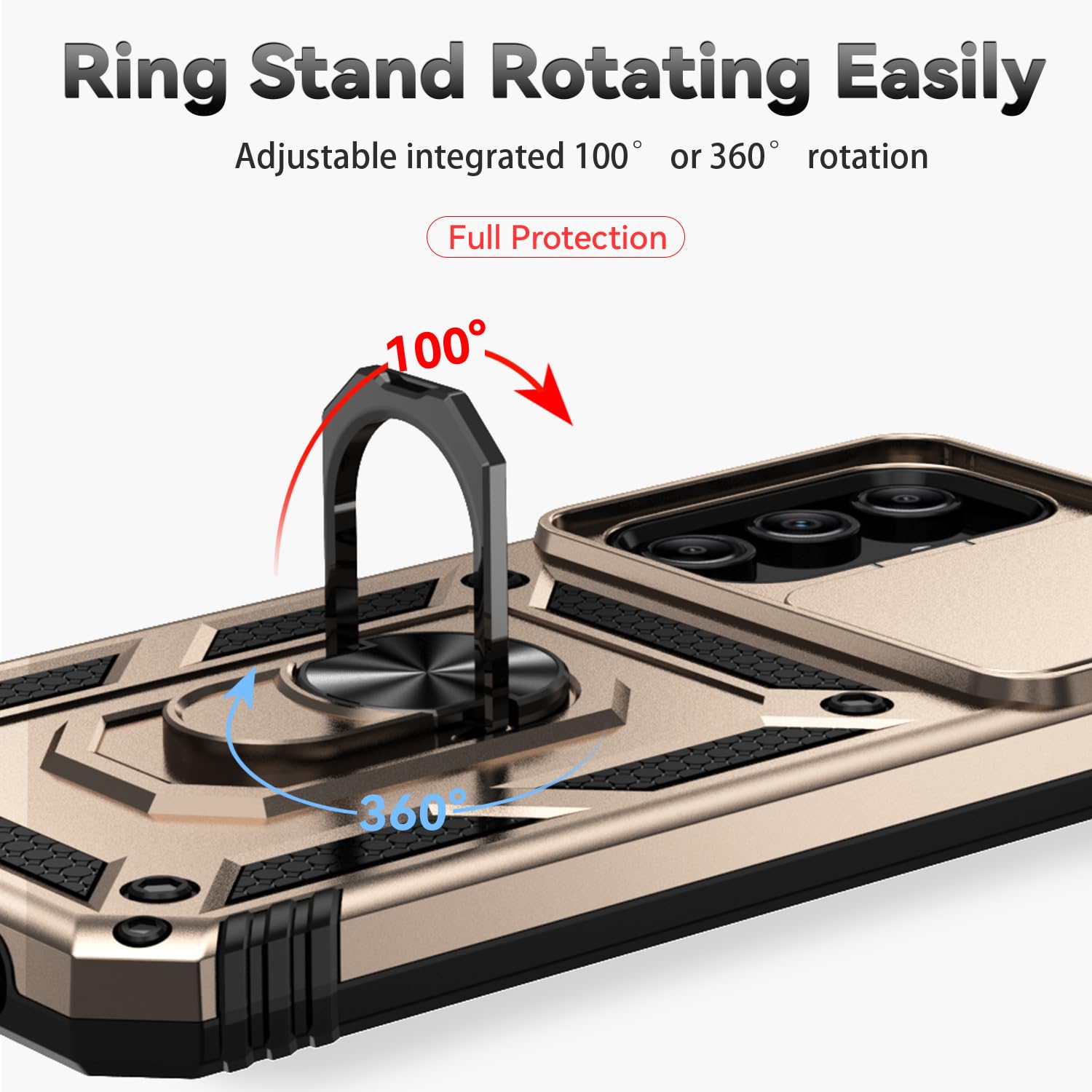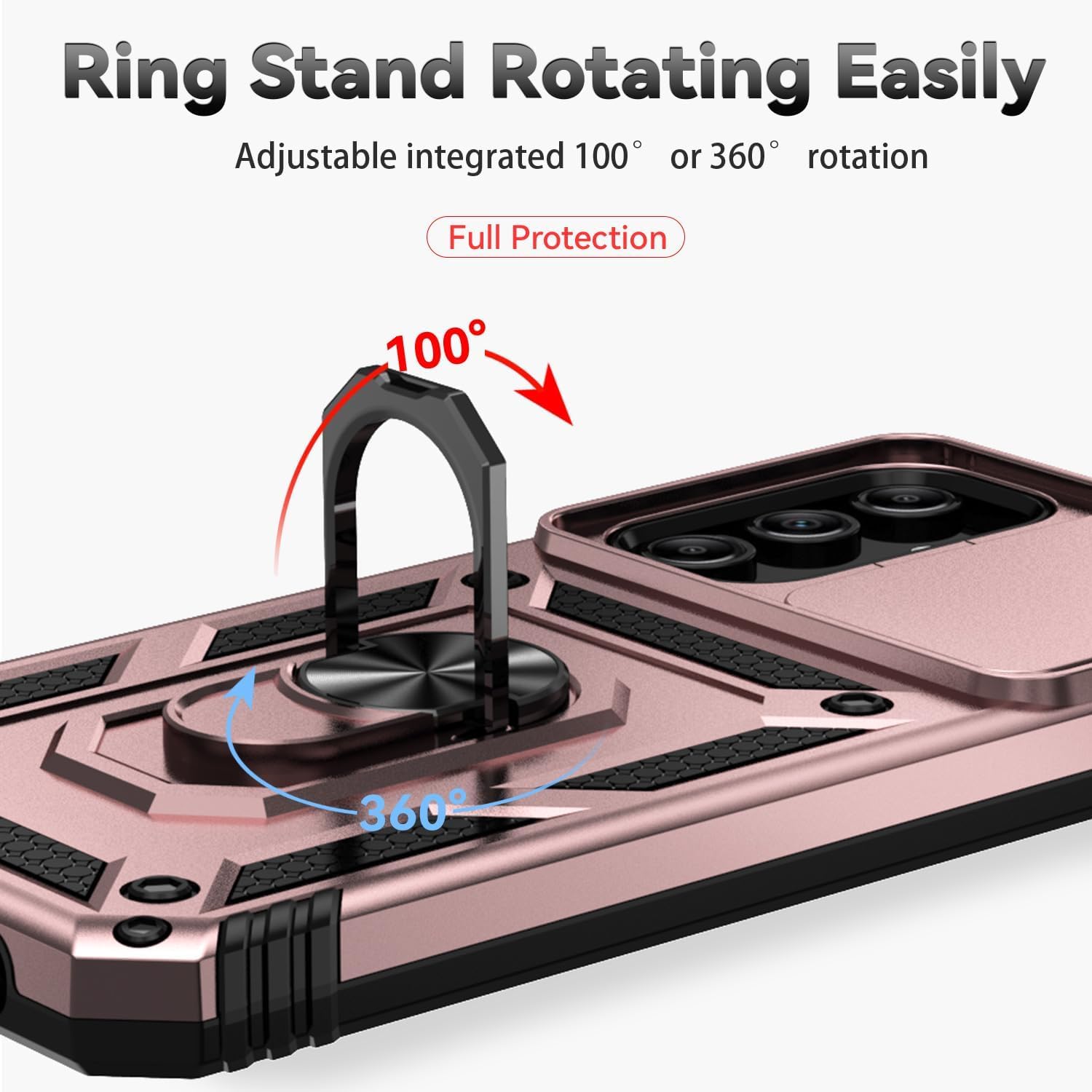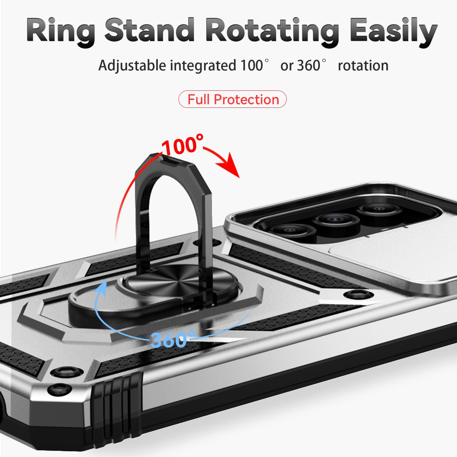 【360° Rotable Magnetic Kickstand】 Advanced Ring Metal kickstand can rotate 360°, easy to rotate and sturdy on the phone case. Built in kickstand gives you the convenience to watch videos and movies hands-free with desired comfort and stability.