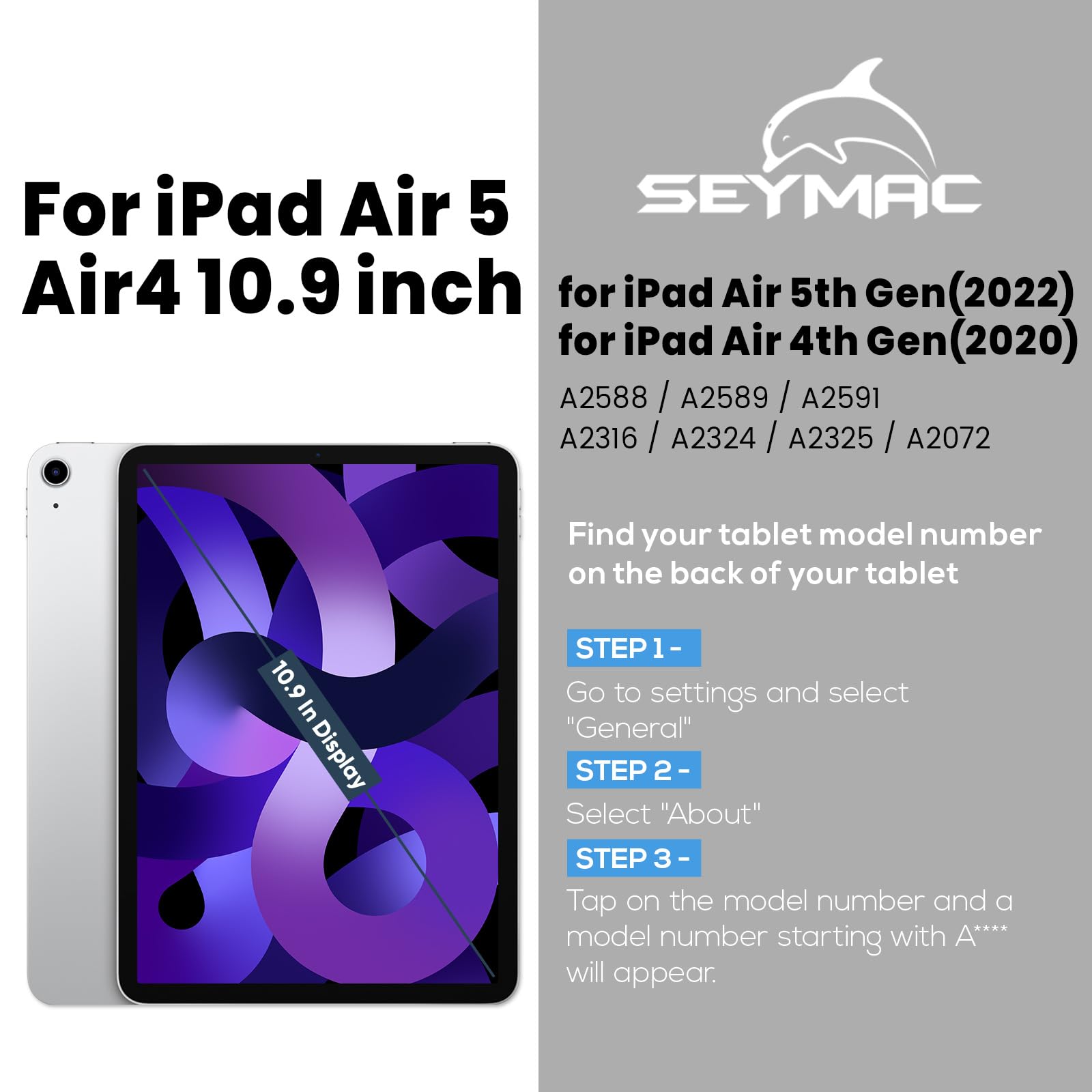 The SEYMAC iPad Air 5/4 Case is specifically designed for the iPad Air 5th Generation (2019) and iPad Air 4th Generation (2020). This heavy-duty case provides full-body protection for your iPad while maintaining a slim and stylish design.