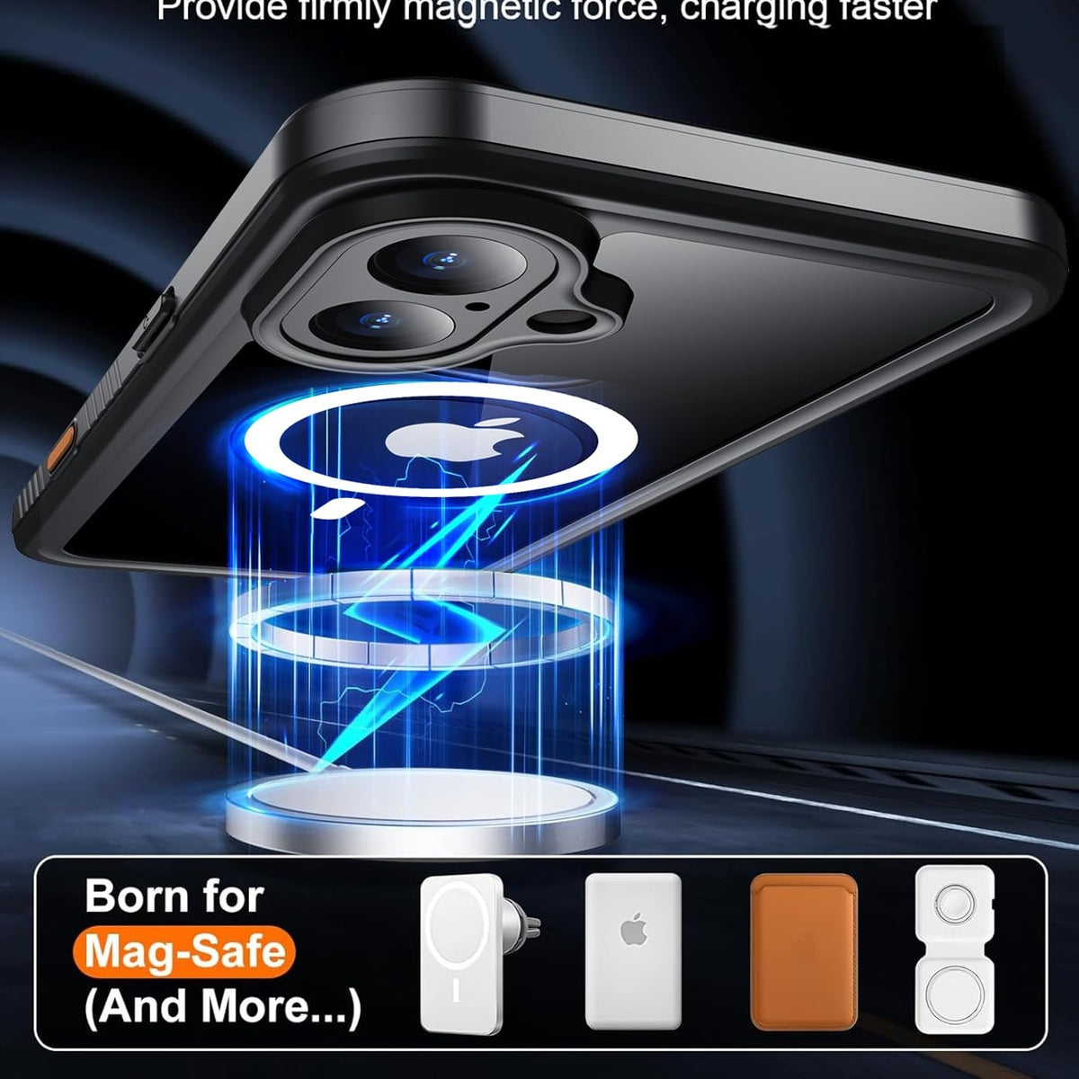 Introducing the Oneagle IP68 MagSafe Waterproof Case, meticulously designed for the iPhone 16 Plus, providing unmatched protection without compromising on style. Whether you're swimming, hiking, or simply enjoying a day at the beach, this case ensures your device remains safe from water, dust, and accidental drops.