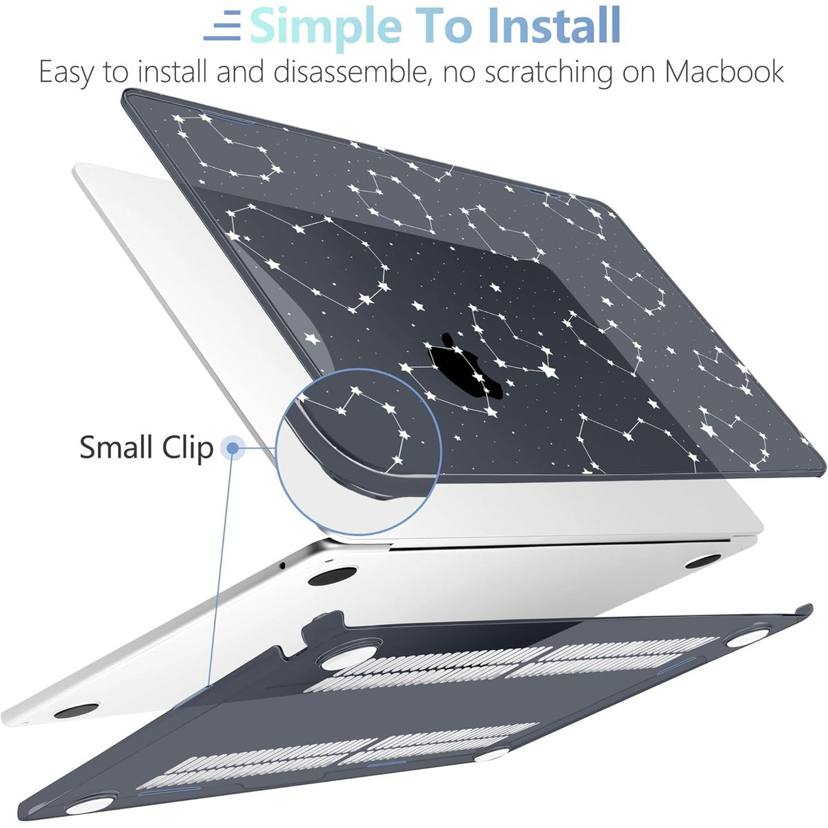 • Design Features of Case: The bottom case is designed with vents for maximum heat dissipation. The bottom case has non-slip feet to avoid slipping during use. The precise cutting design allows you to access all the ports of your MacBook. For Macbook air 2022 case is easy to install and remove