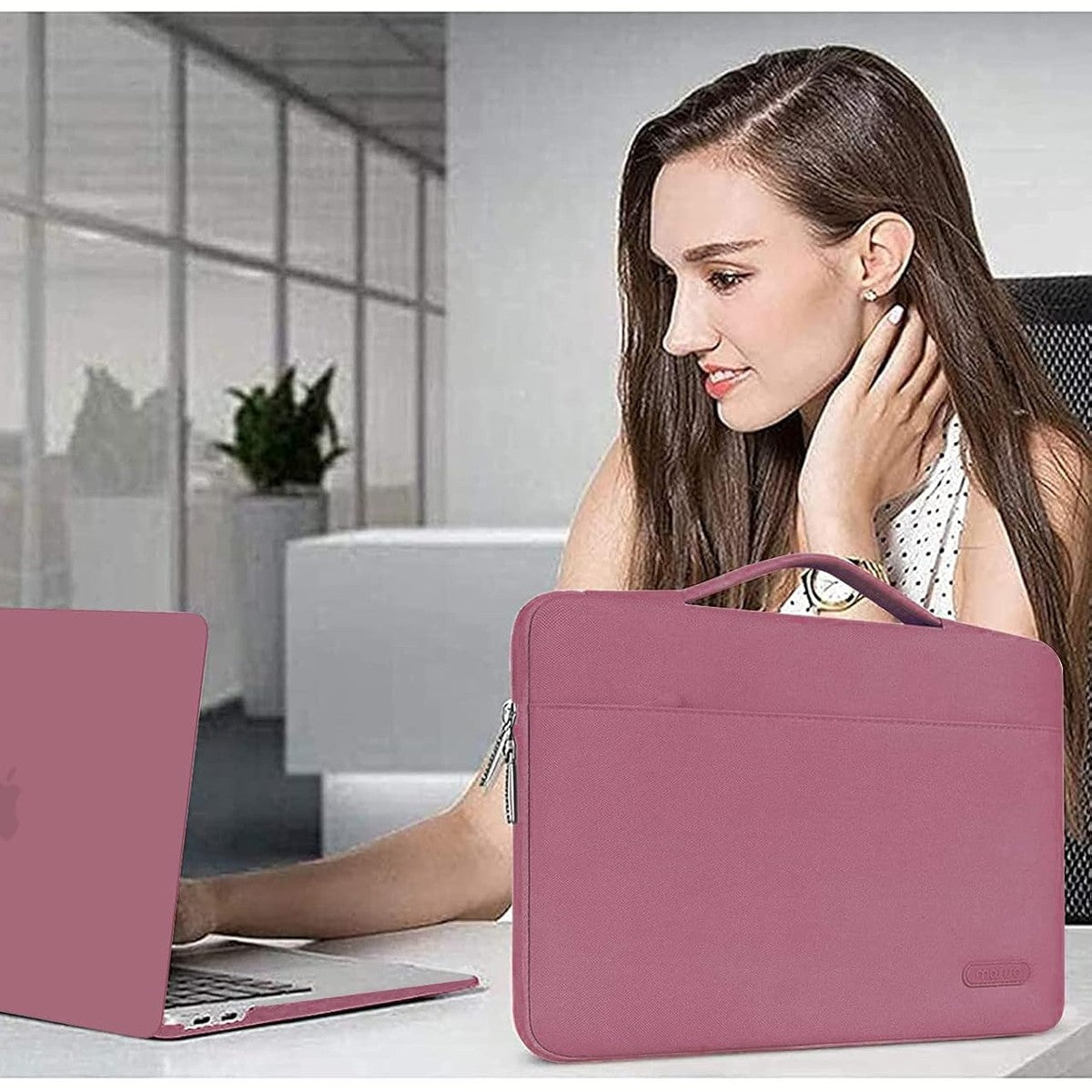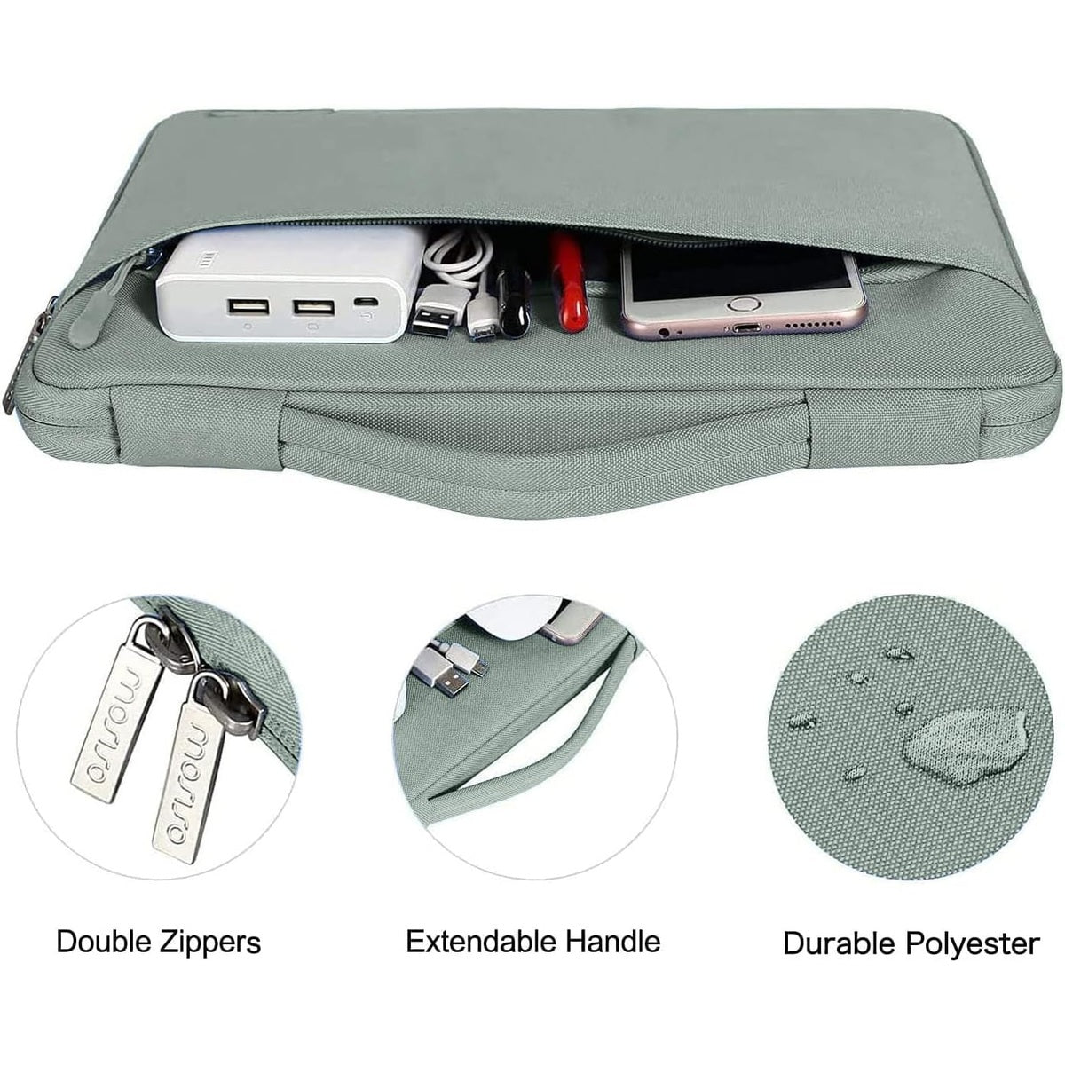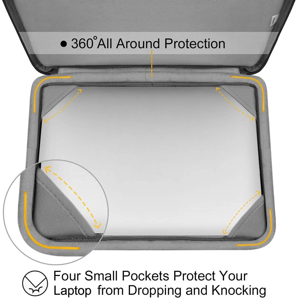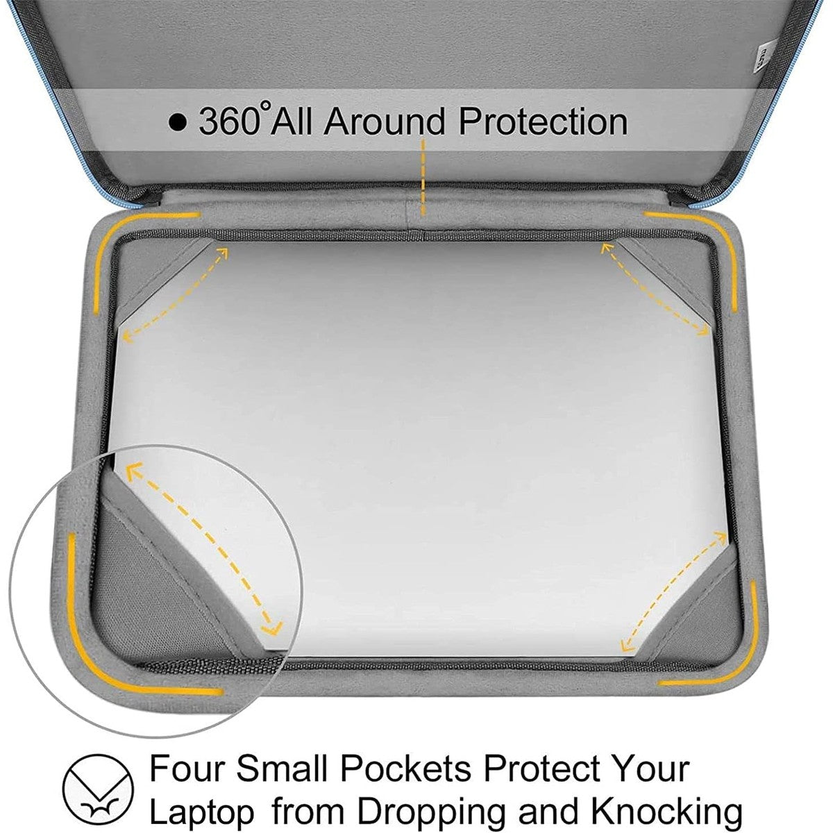 • The 360 degree protective shockproof laptop sleeve with handle carrying bag internal dimension: 12.6 x 0.79 x 8.66 inches (L x W x H); external dimension: 13.19 x 0.79 x 9.25 inches (L x W x H). The front side pocket dimension: 10.8 x 6.5 inches (L x W). Made of polyester material, protect your laptop against accidental spills. Slim and lightweight, does not bulk your device up and can easily slide into your briefcase, backpack or other bag. Ideal for business, daily and travel.