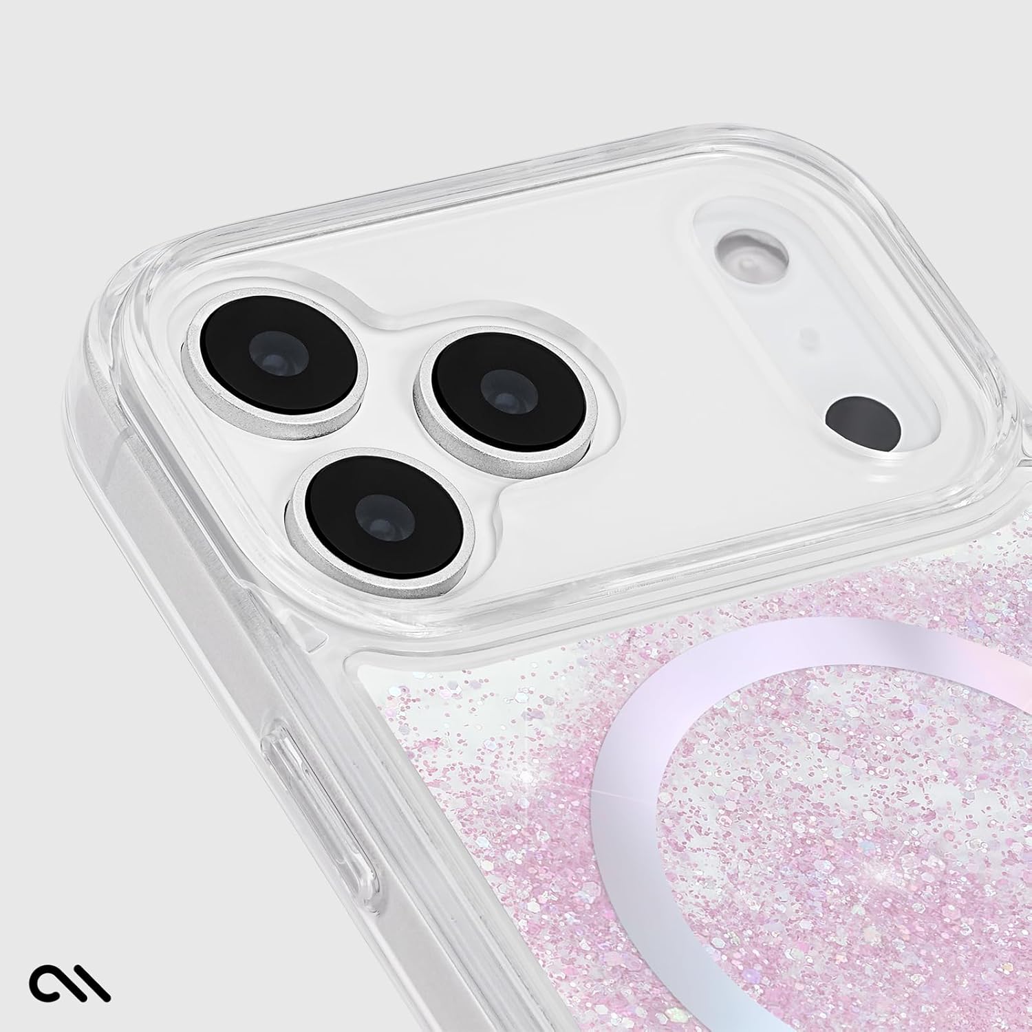 Shake me up! This aesthetic iPhone 17 Pro Max case (6.9 Inch) features eye-catching shimmering glitter that moves with you! It's the perfect way to add a touch of personality to your phone. The case is also built to protect your phone from everyday bumps and drops. This slim iPhone 17 Pro Max case boasts an impressive 12ft drop protection, raised bezels around the screen and camera, and cushioned corners for added impact absorption. Plus, the anti-scratch coating helps keep your case looking newer for longer. The thin iPhone 17 Pro Max case features a built-in strong magnet for fast and easy wireless/magnetic charging, syncs with all MagSafe accessories, and has precise cutouts, including a dedicated capture button cutout, for easy access to all functions!