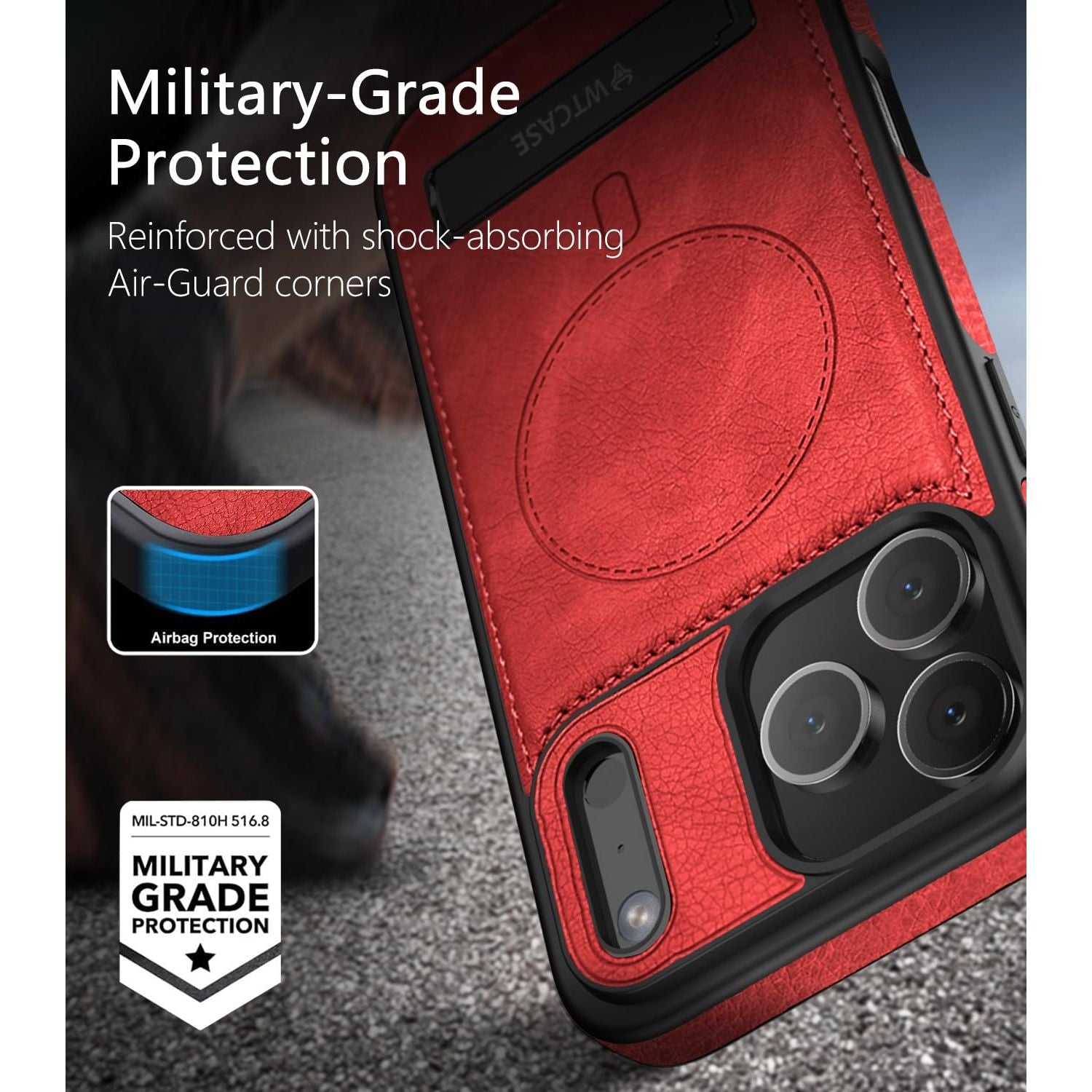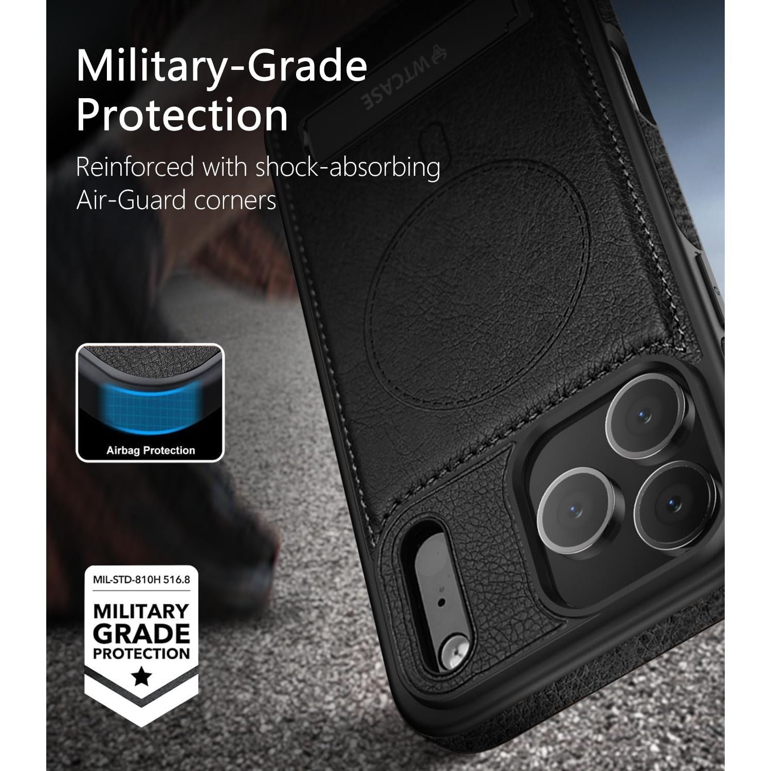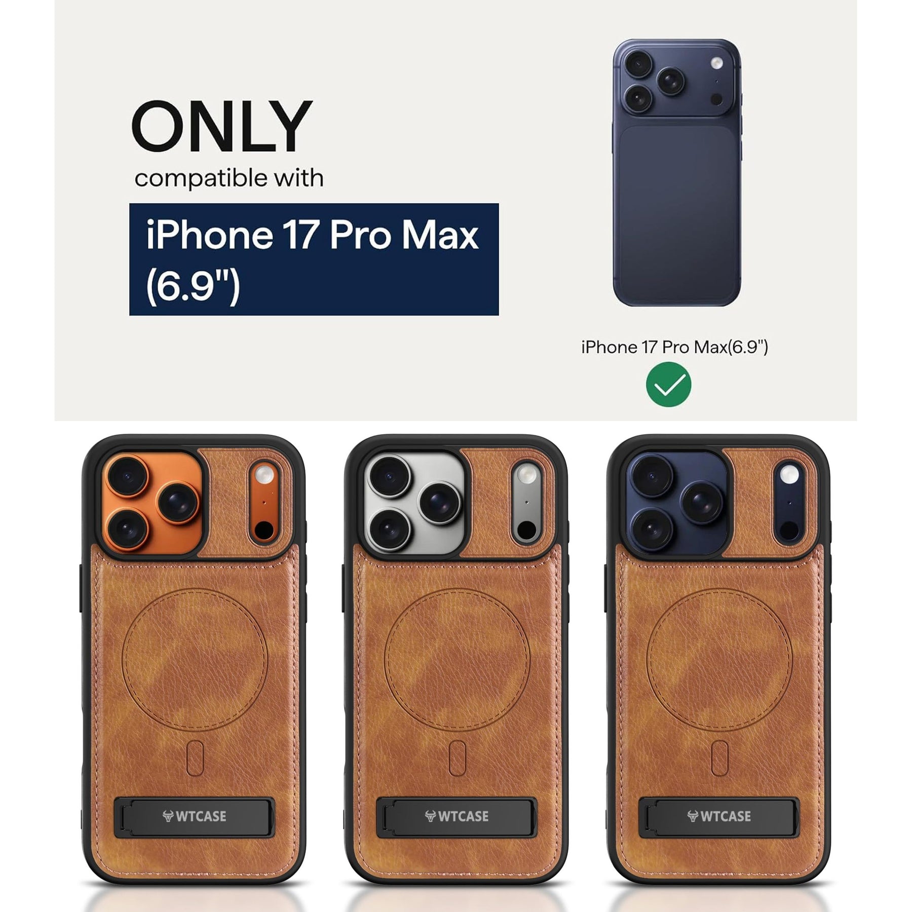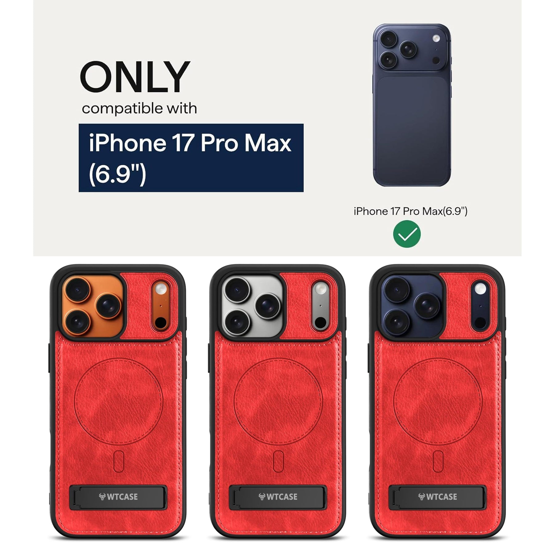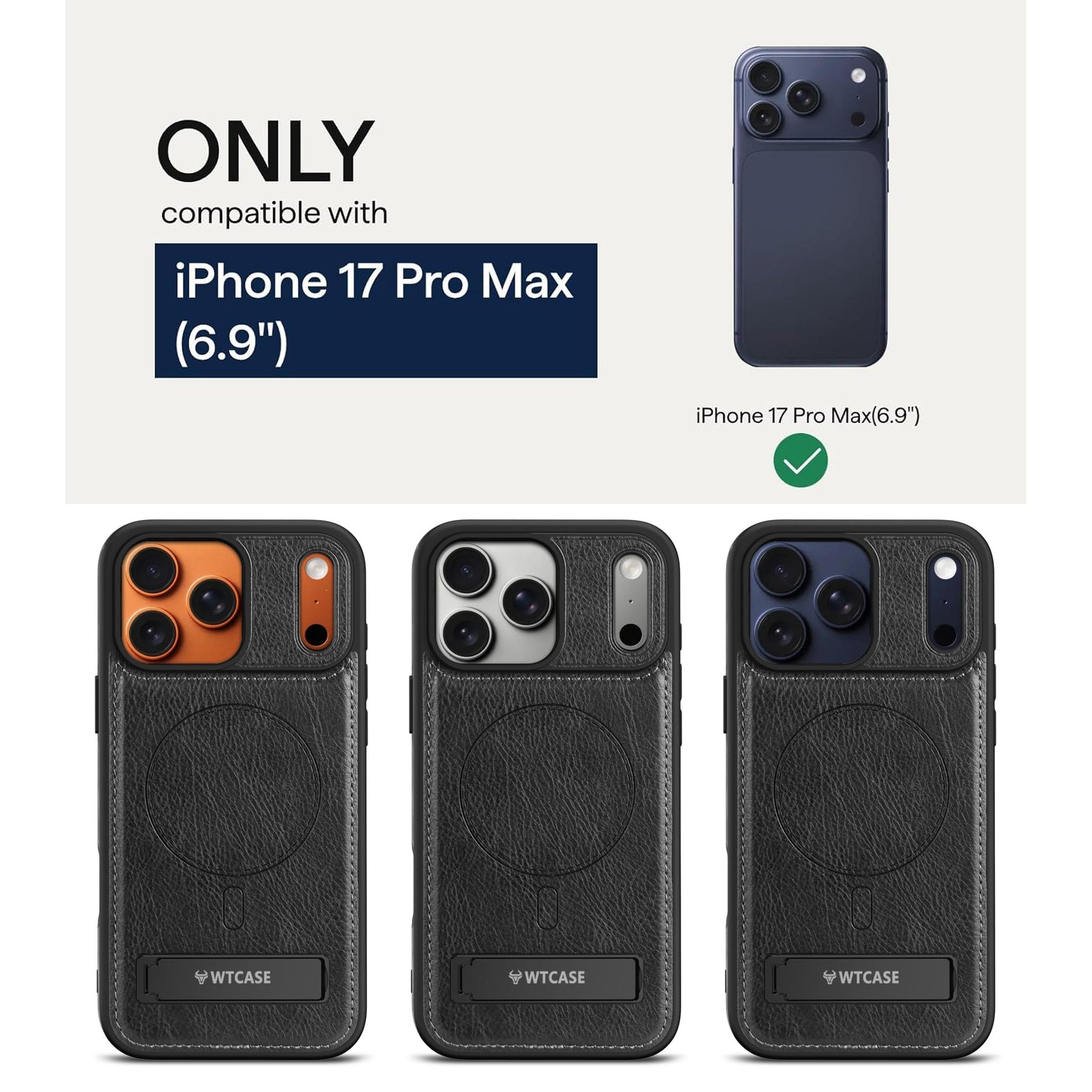 【Functional & Practical Stand】 WTCASE for iPhone 17 Pro Max phone case's stand made with lightweight yet robust Aerospace-grade aluminum, it can be placed in portrait or landscape mode stably, In addition, After doctor of Ergonomic designed for perfect viewing angle, whether you' re binge-watching your favorite TV series or having a video chat with your loved ones, this case provides the perfect viewing angle for maximum comfort at eye level, enjoy every moment.
