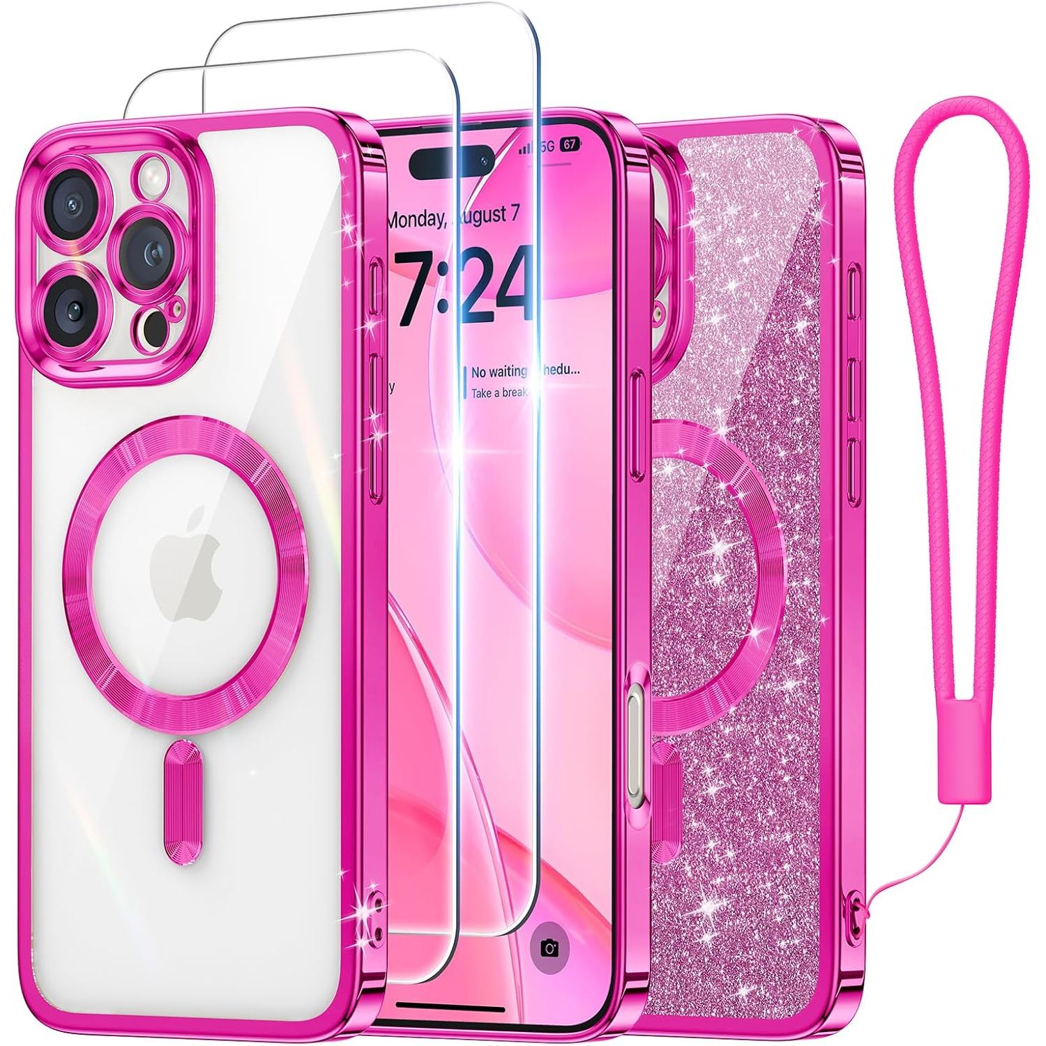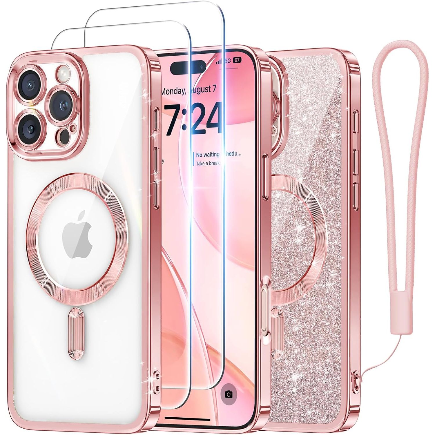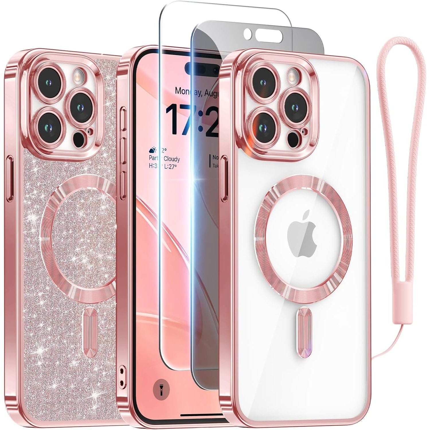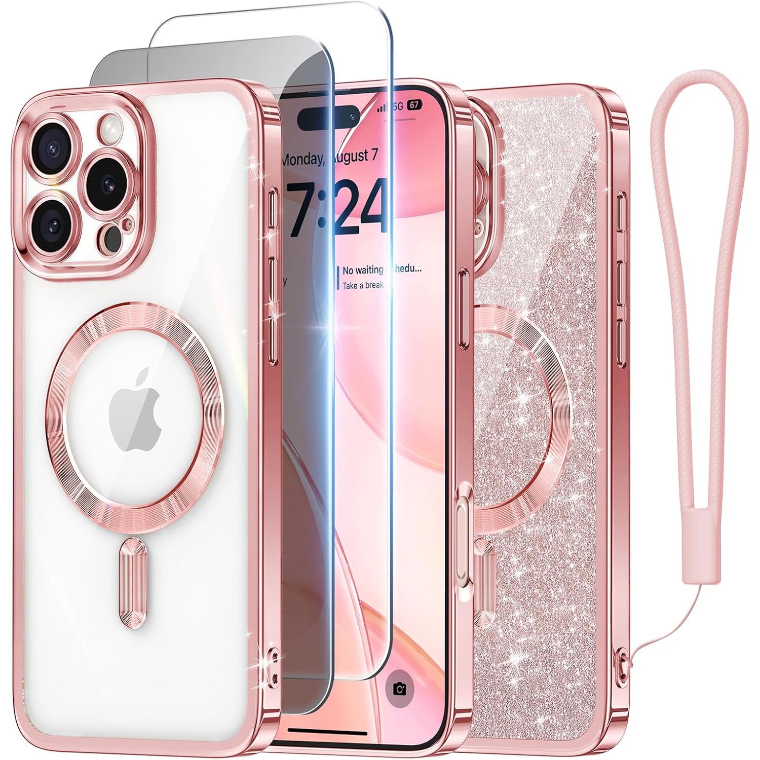 EXPRESS YOURSELF WITH PERSONALIZED DECOR: Designed exclusively for iPhone 17 Pro Max (6.9"), this phone case includes a wrist strap and glitter card so you can customize your phone to match your style—and make it easier to carry. The electroplated finish offers a radiant metallic shine, reflecting a brilliant life that never fades. Perfect for women and girls who want to showcase their unique personality