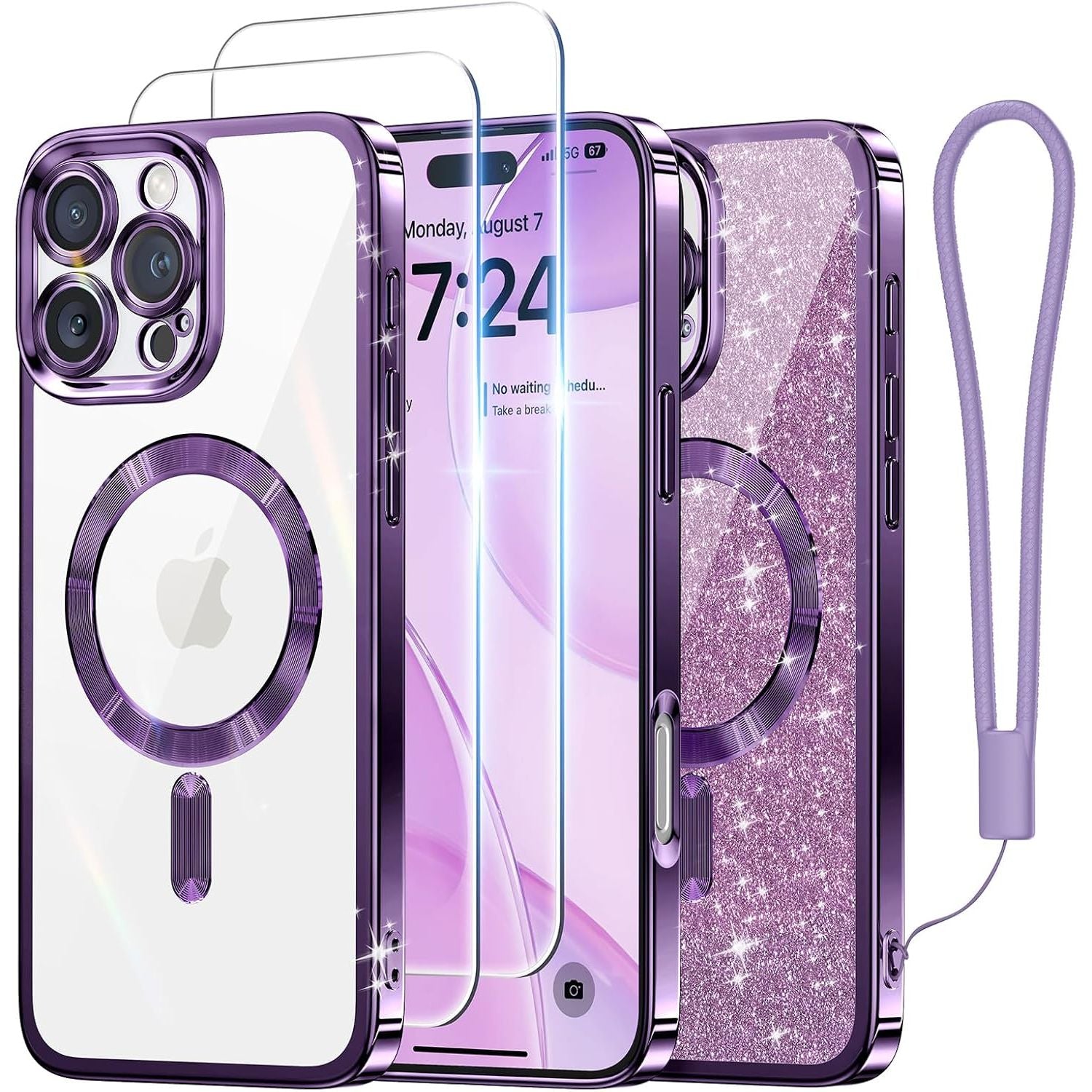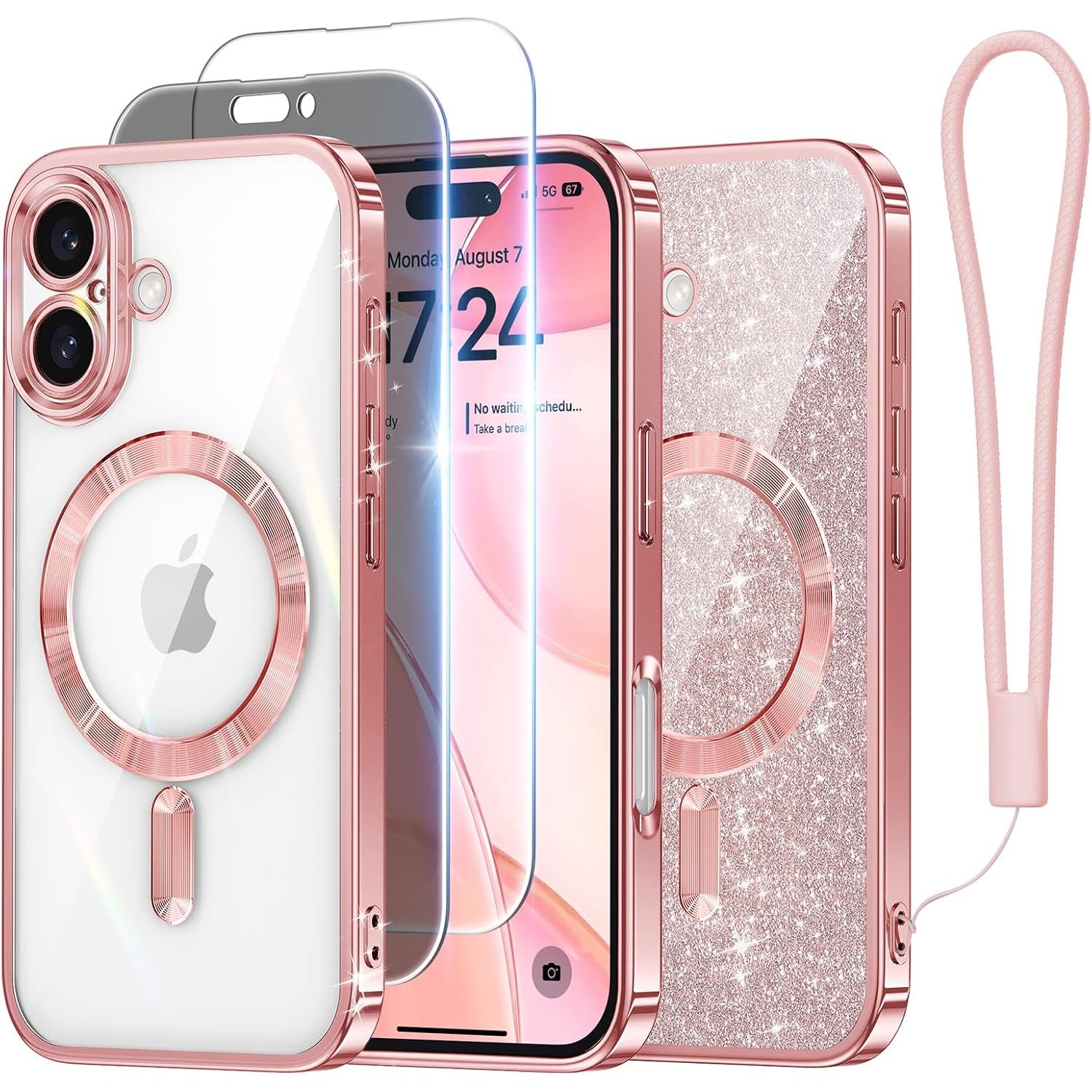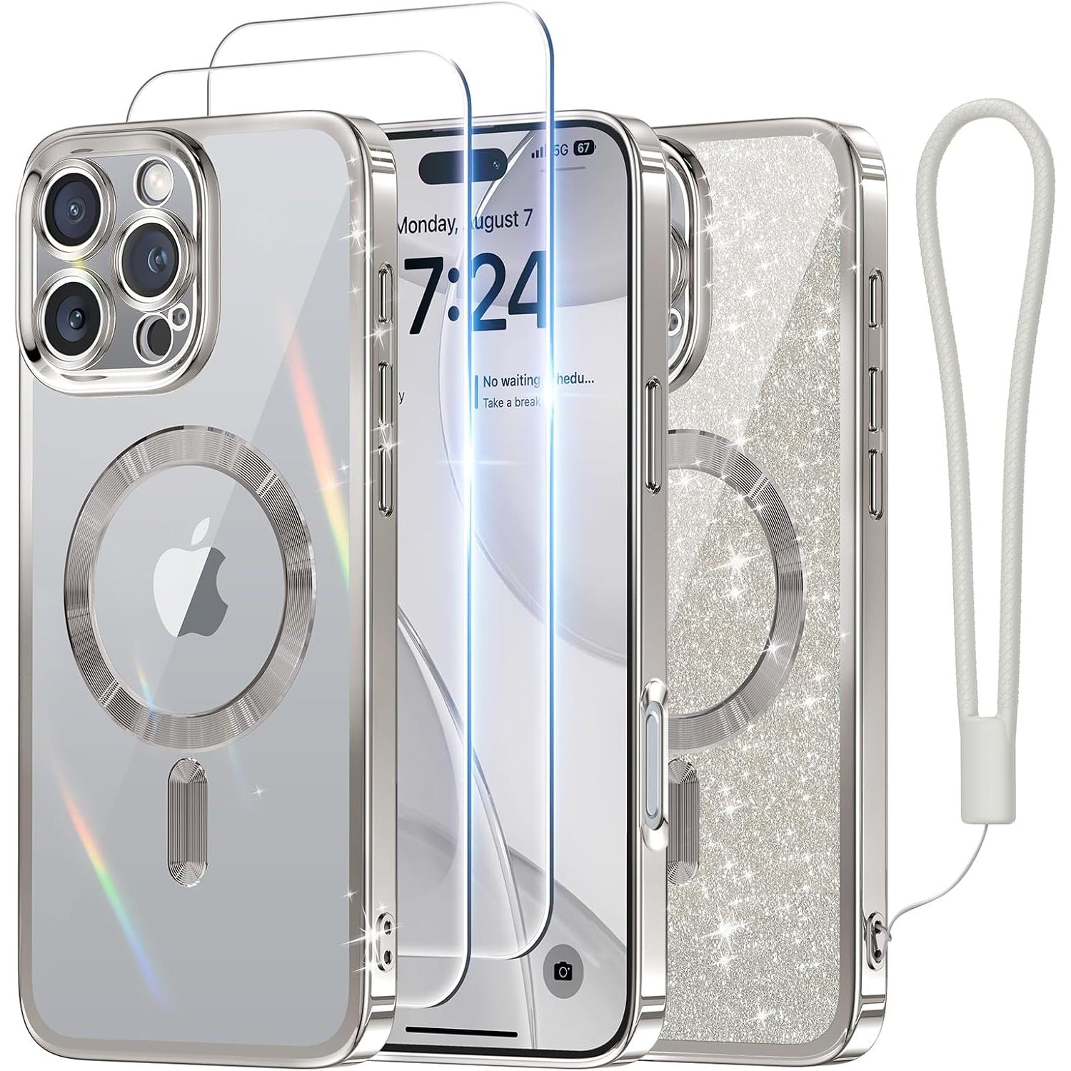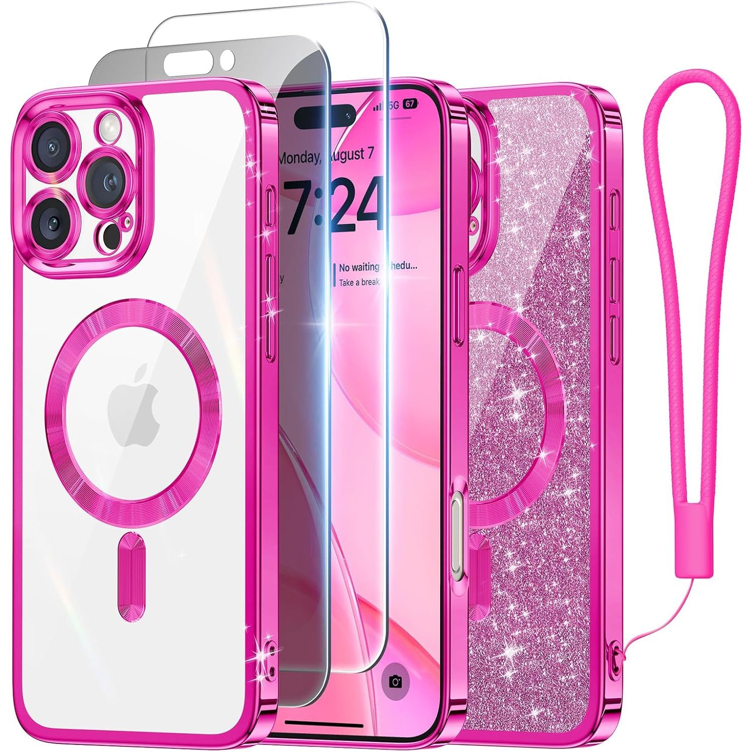 EXPRESS YOURSELF WITH PERSONALIZED DECOR: Designed exclusively for iPhone 17 Pro Max (6.9"), this phone case includes a wrist strap and glitter card so you can customize your phone to match your style—and make it easier to carry. The electroplated finish offers a radiant metallic shine, reflecting a brilliant life that never fades. Perfect for women and girls who want to showcase their unique personality