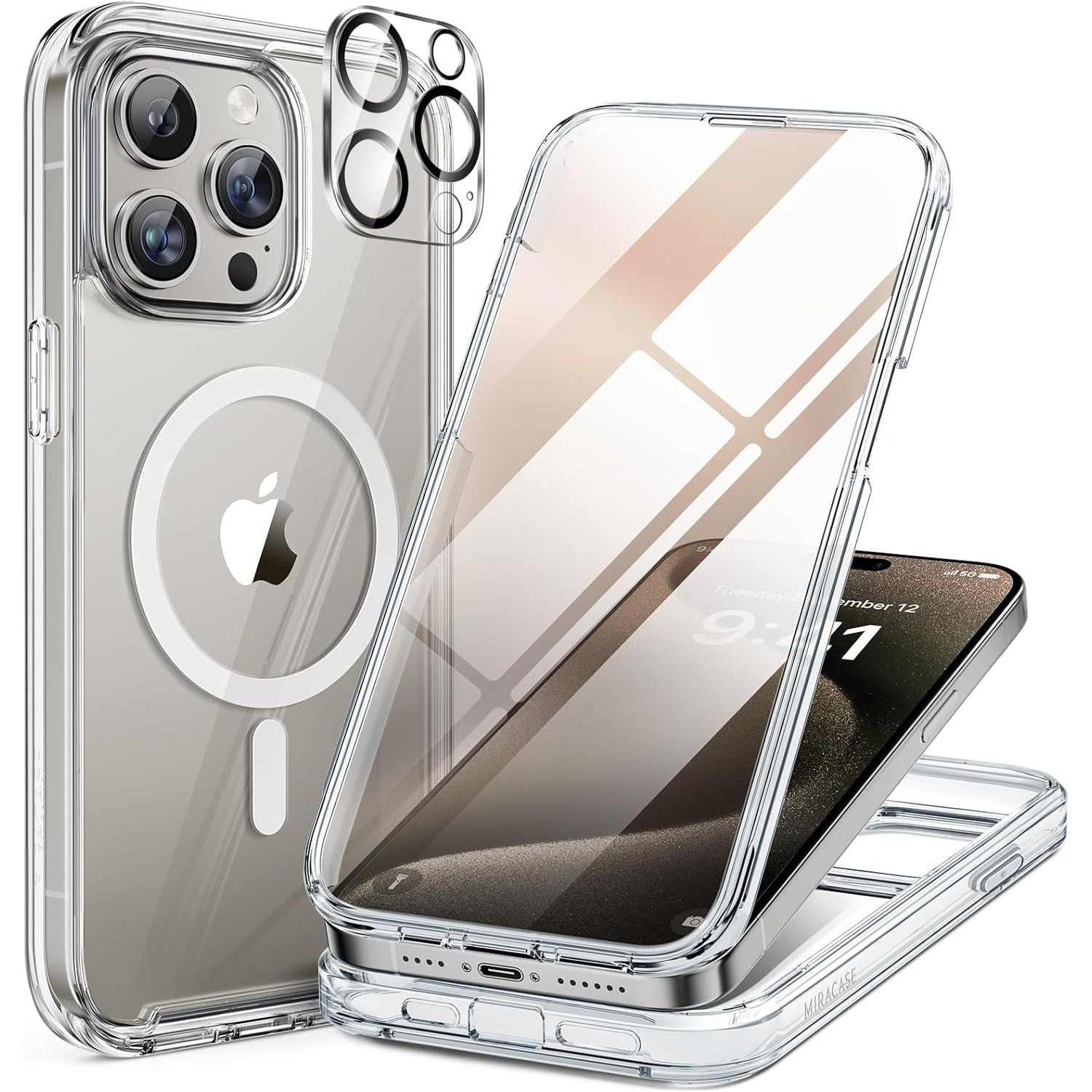 【Bubble Free Built-in 9H Glass Screen Protector】Miracase for iPhone 17 Pro Max case with built-in full screen protector protect your phone screen from scratches and cracks, no gap and won't lift up the screen,and making you enjoy the sensitive touch without bubbles