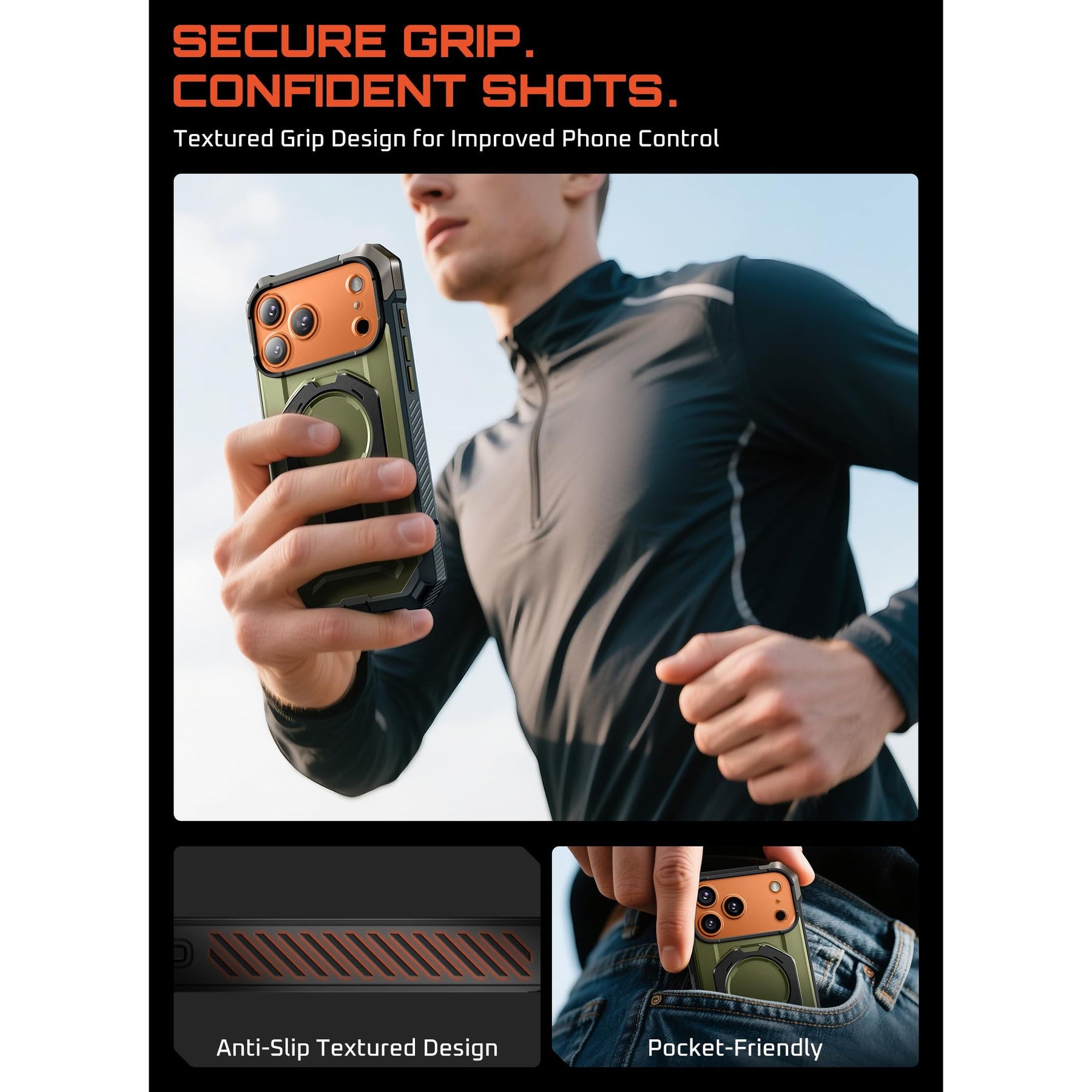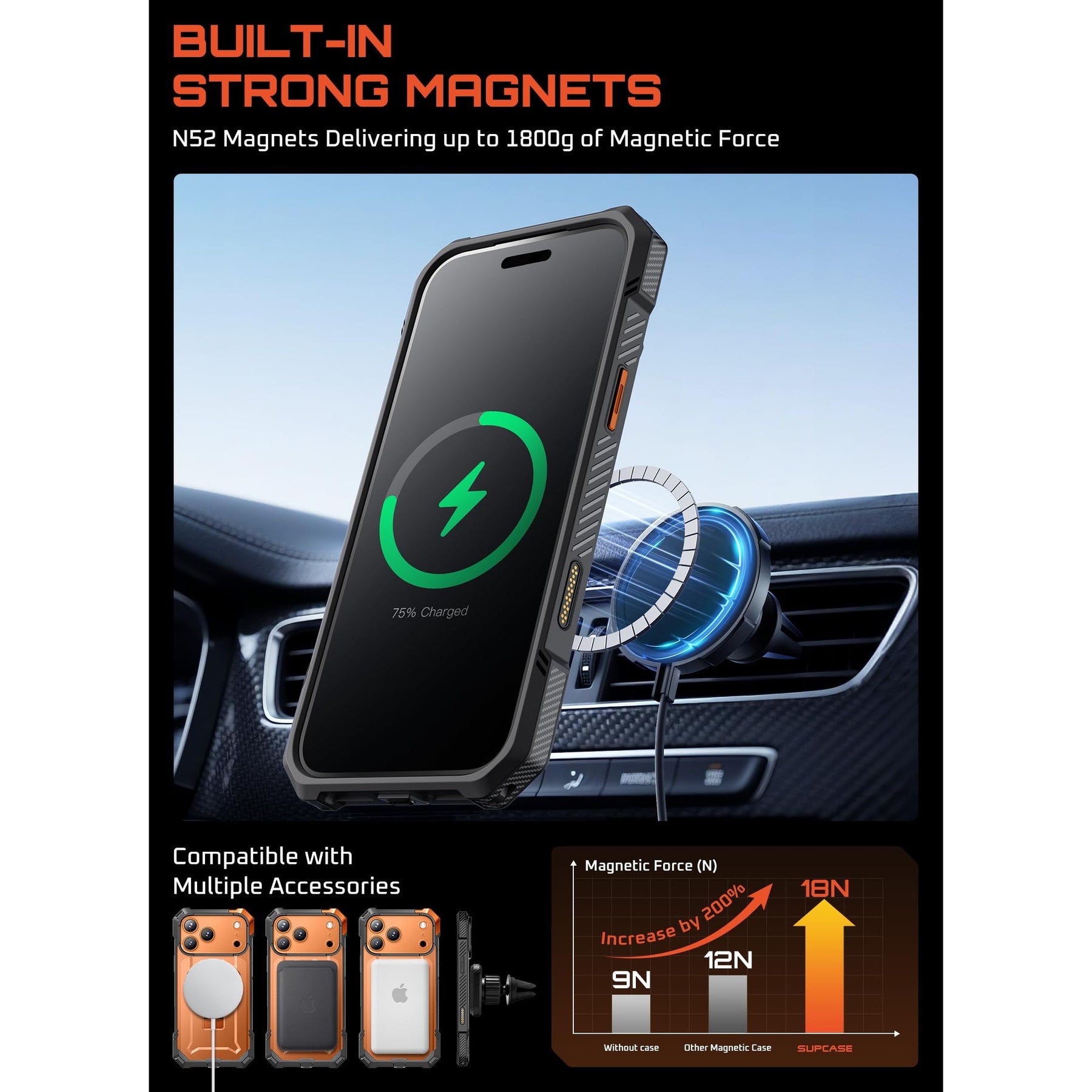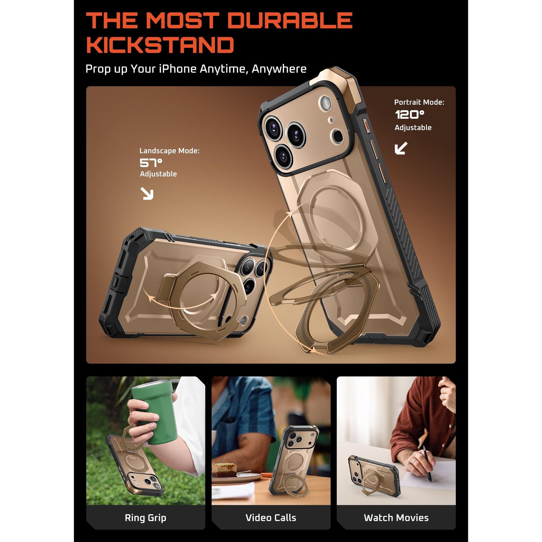 [Kickstand & MagSafe Features]: Built-in aluminum alloy kickstand provides multiple viewing angles. N52 strong magnet with up to 1800g magnetic force ensures seamless compatibility with MagSafe accessories.