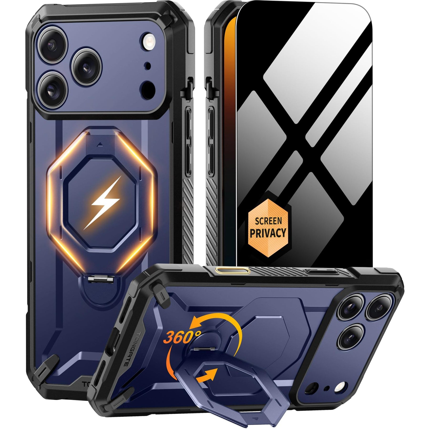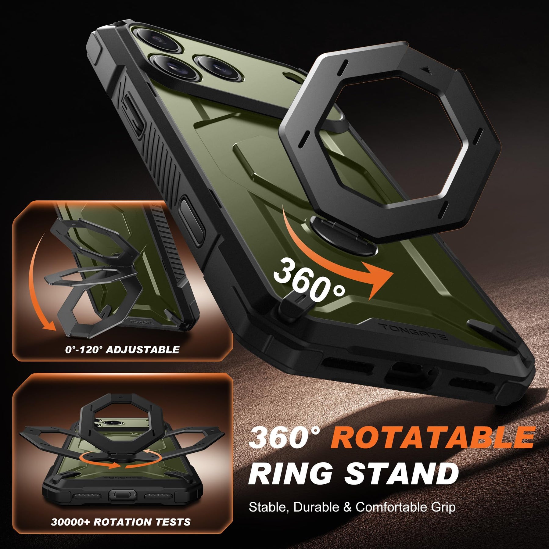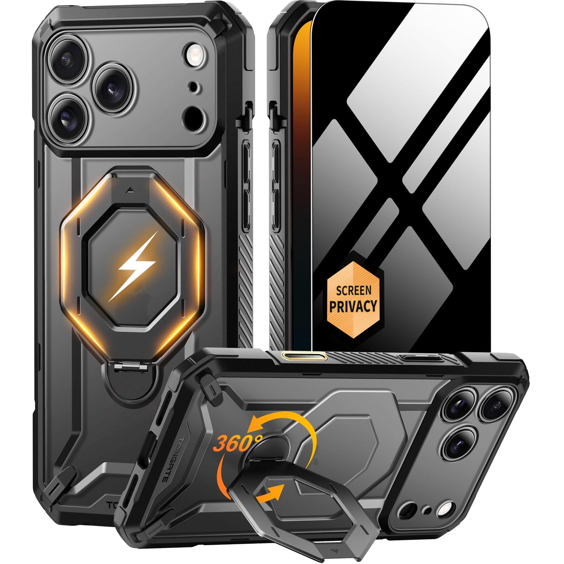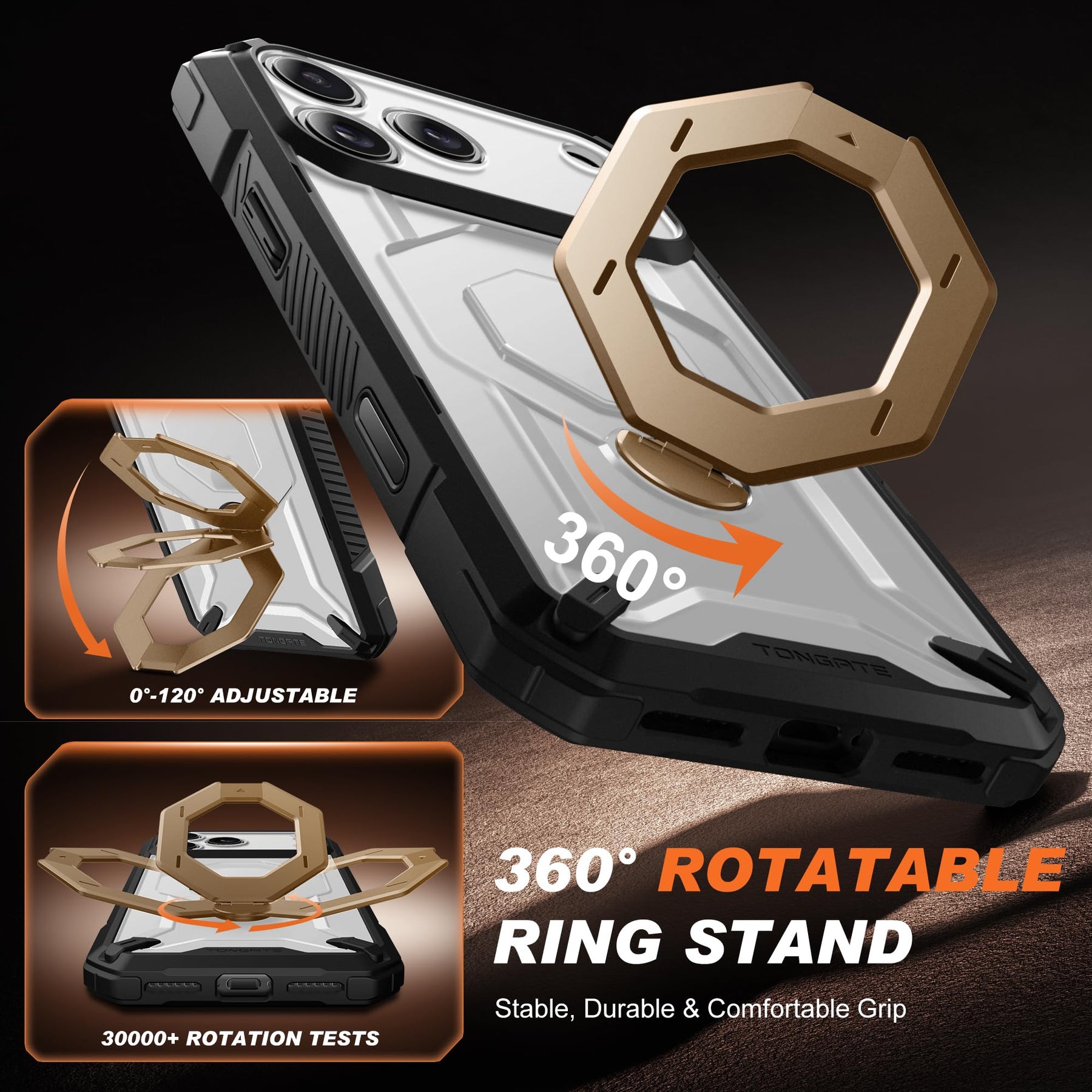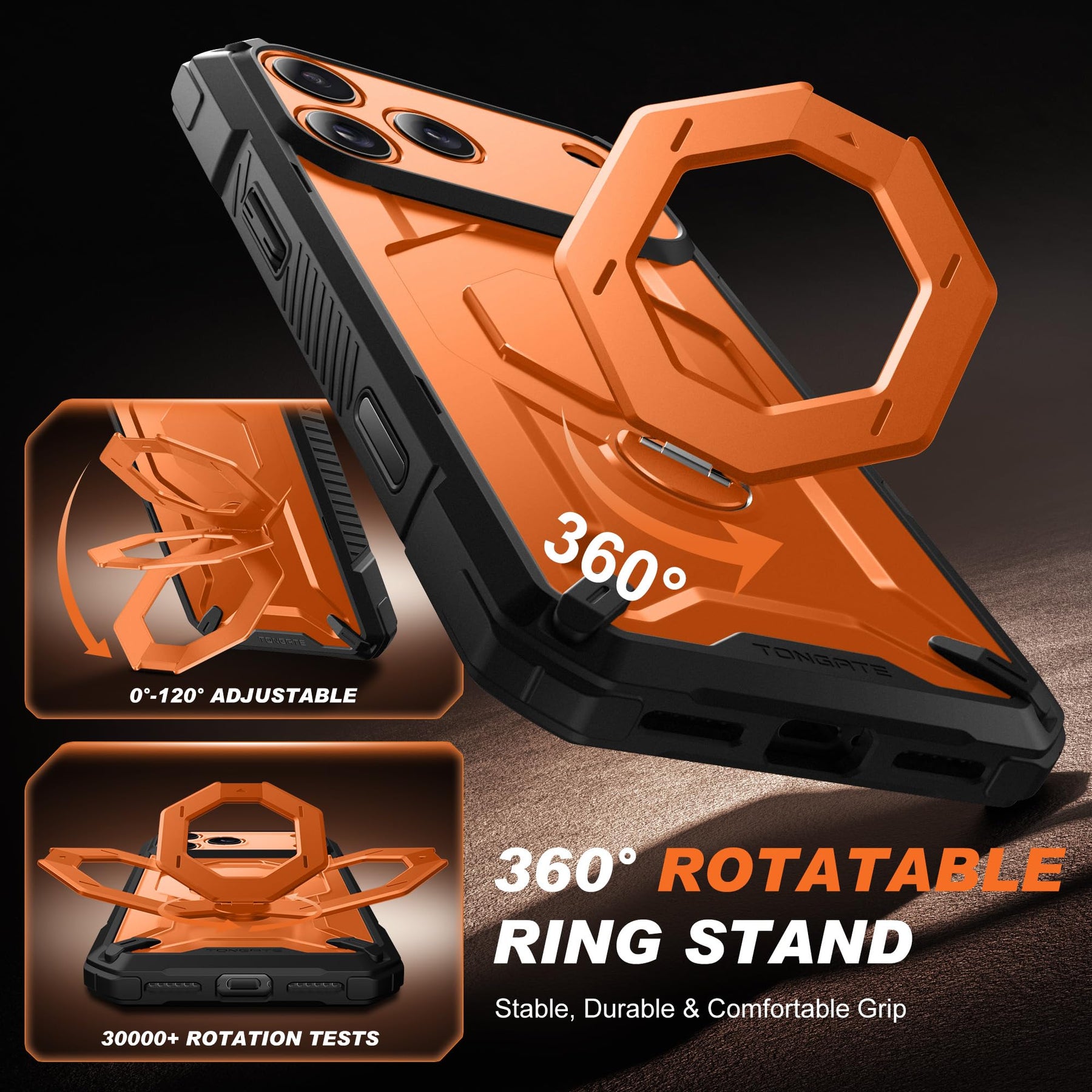 [Precise Camera Buttons and Secure Grip] The TONGATE 17 Pro Max phone case features fully covered camera buttons with a smooth, responsive feel, effectively preventing dust and scratches. The rear ring stand is paired with a non-slip textured frame, providing a comfortable and secure grip to prevent accidental drops, making your use more convenient and worry-free.