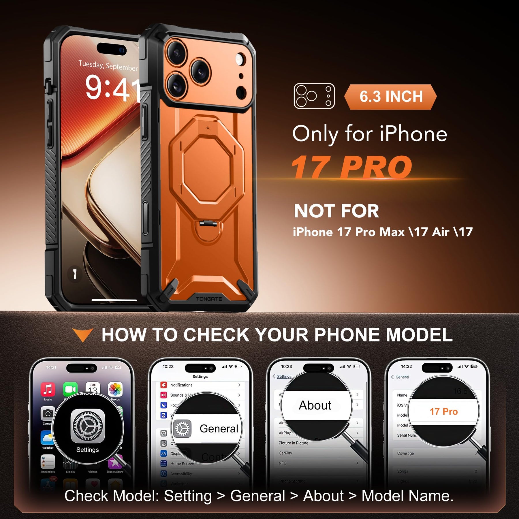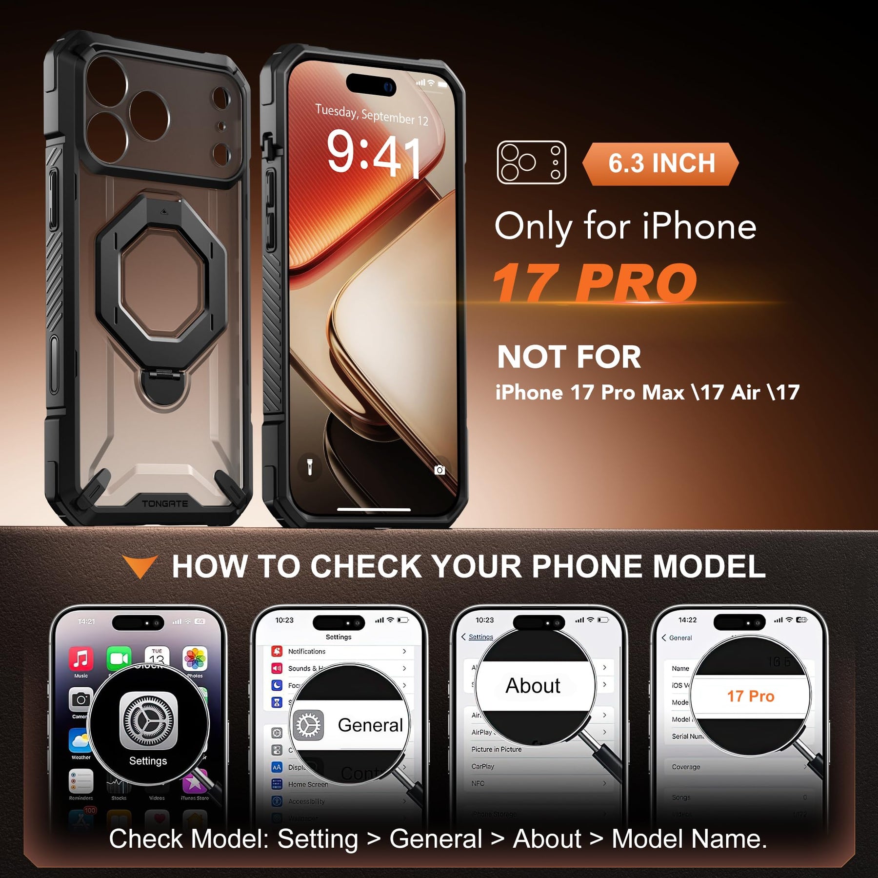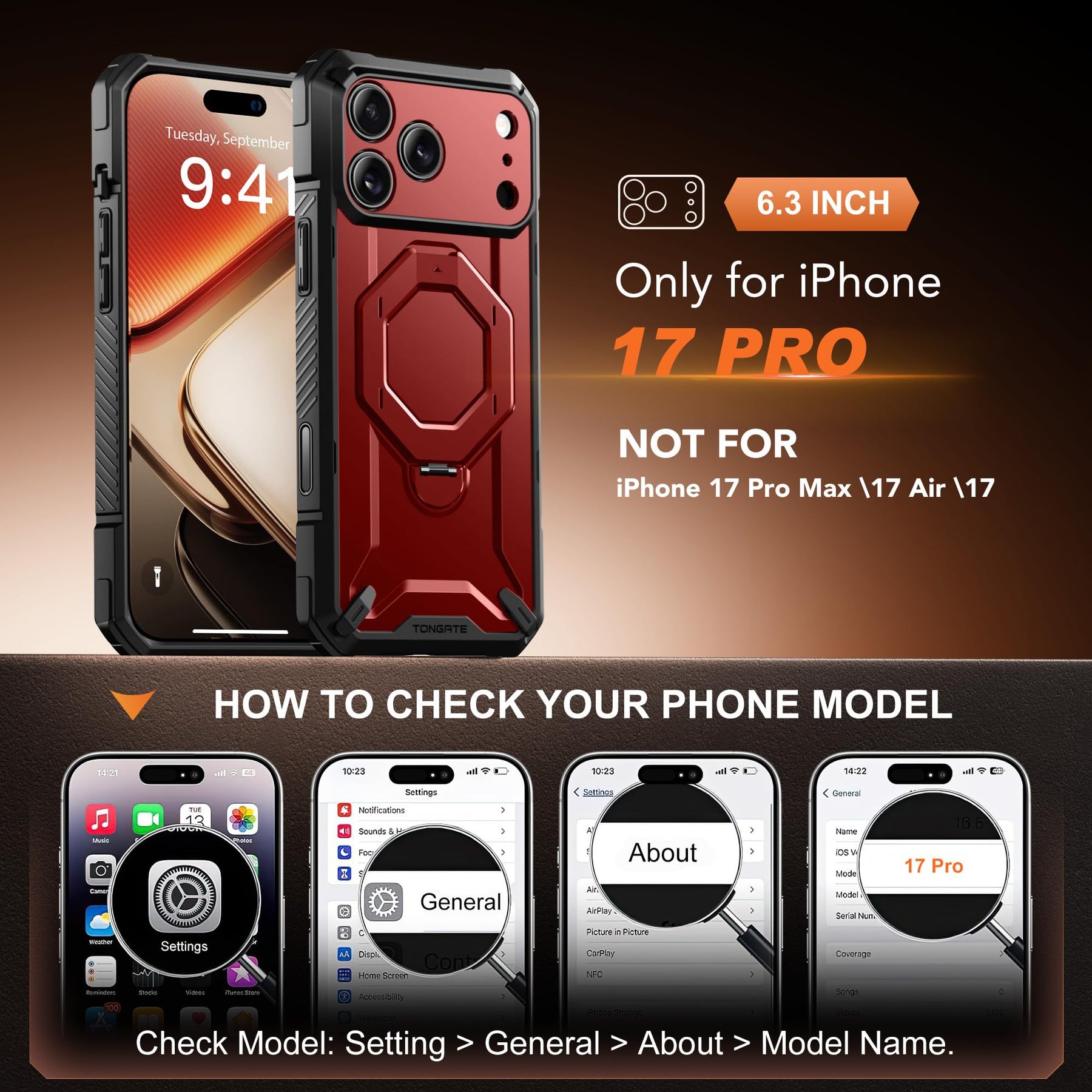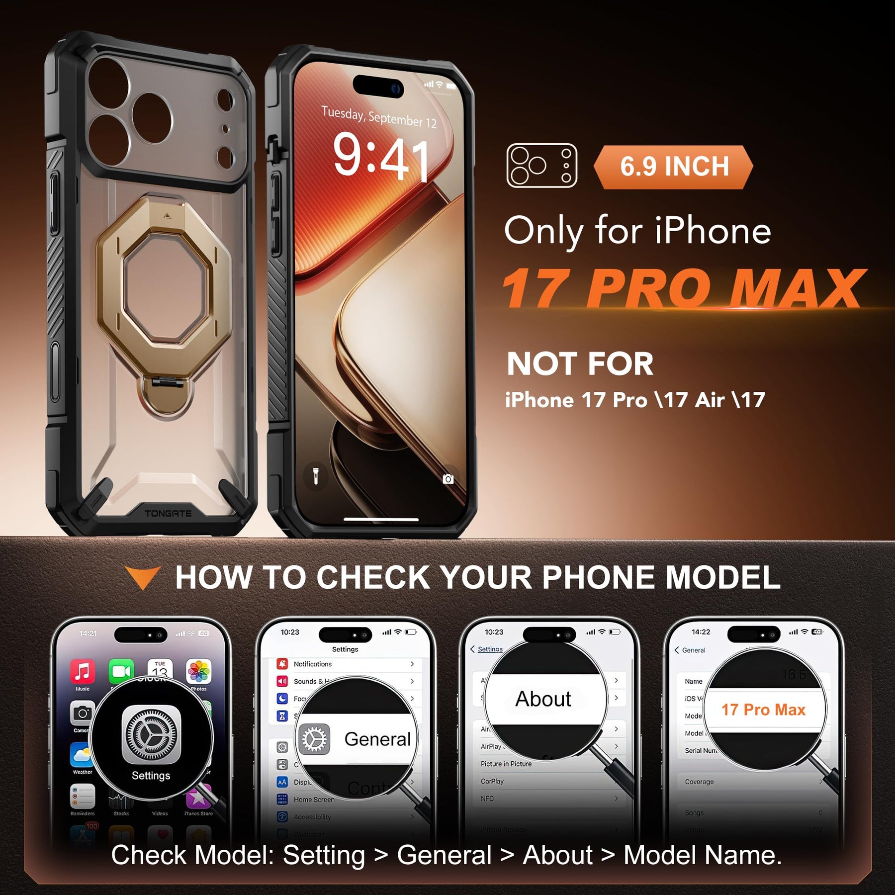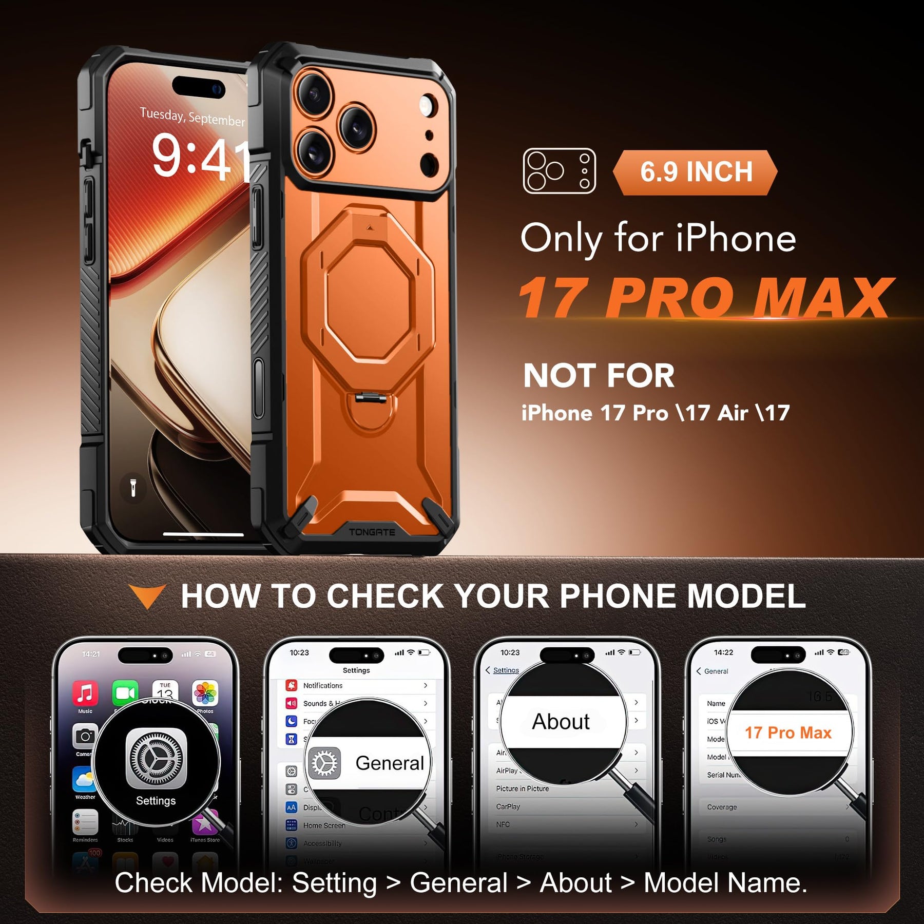[Compatibility & Customer Service] This 17 Pro Max phone case is ONLY for iPhone 17 Pro Max 6.9-inch (Released in 2025). The TONGATE team offers a 12-month after-sales replacement service and 24/7 customer support to address issues related to case defects, incorrect models, or damage incurred during use.
