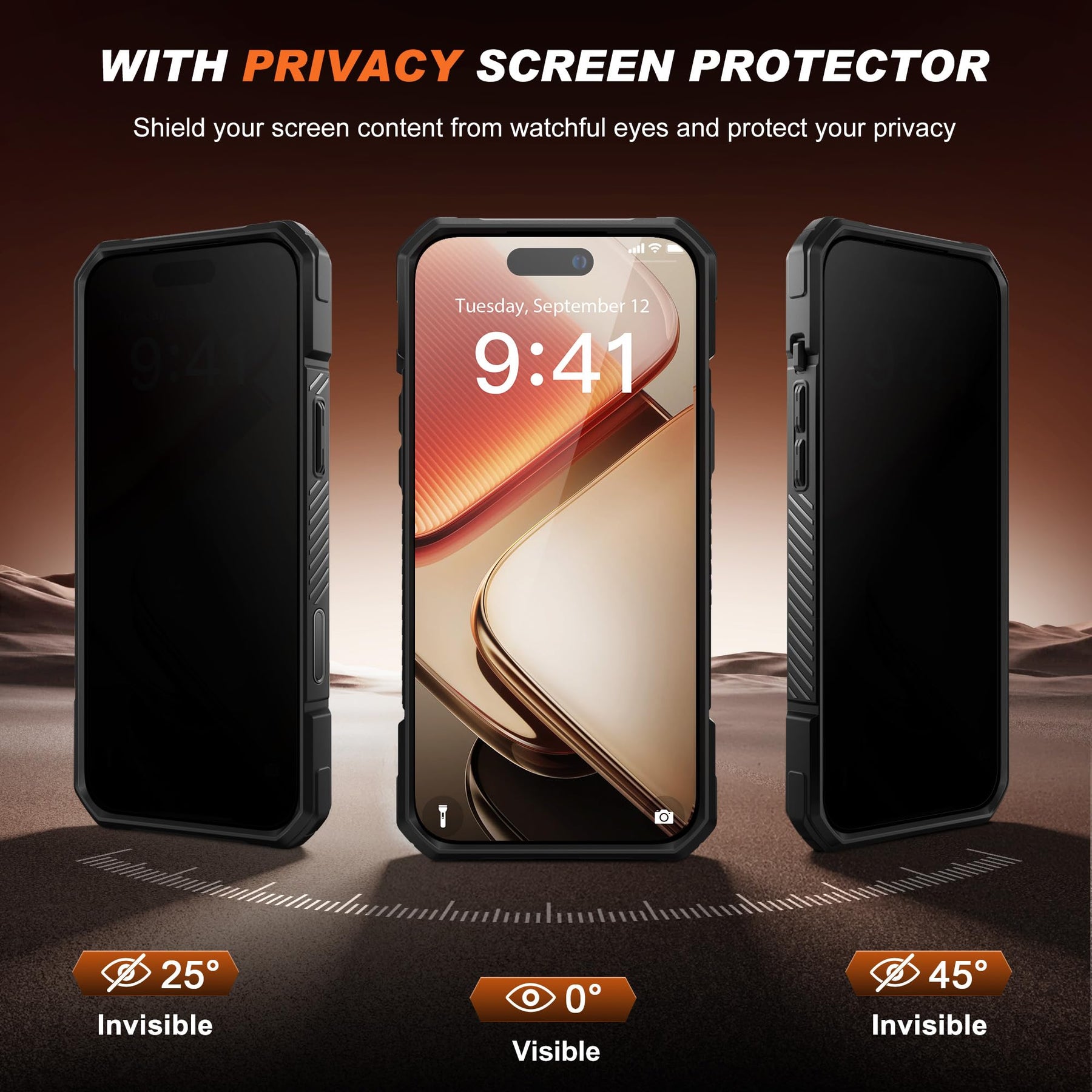 [Upgraded Full-Coverage Camera + Privacy Screen Protector] This 17 Pro Max case comes with upgraded full-coverage lens protection and a raised camera lip to prevent scratches and scuffs on the lens. It also includes a privacy glass screen protector that safeguards your screen from scratches and cracks while preventing others from snooping on your private sensitive information.