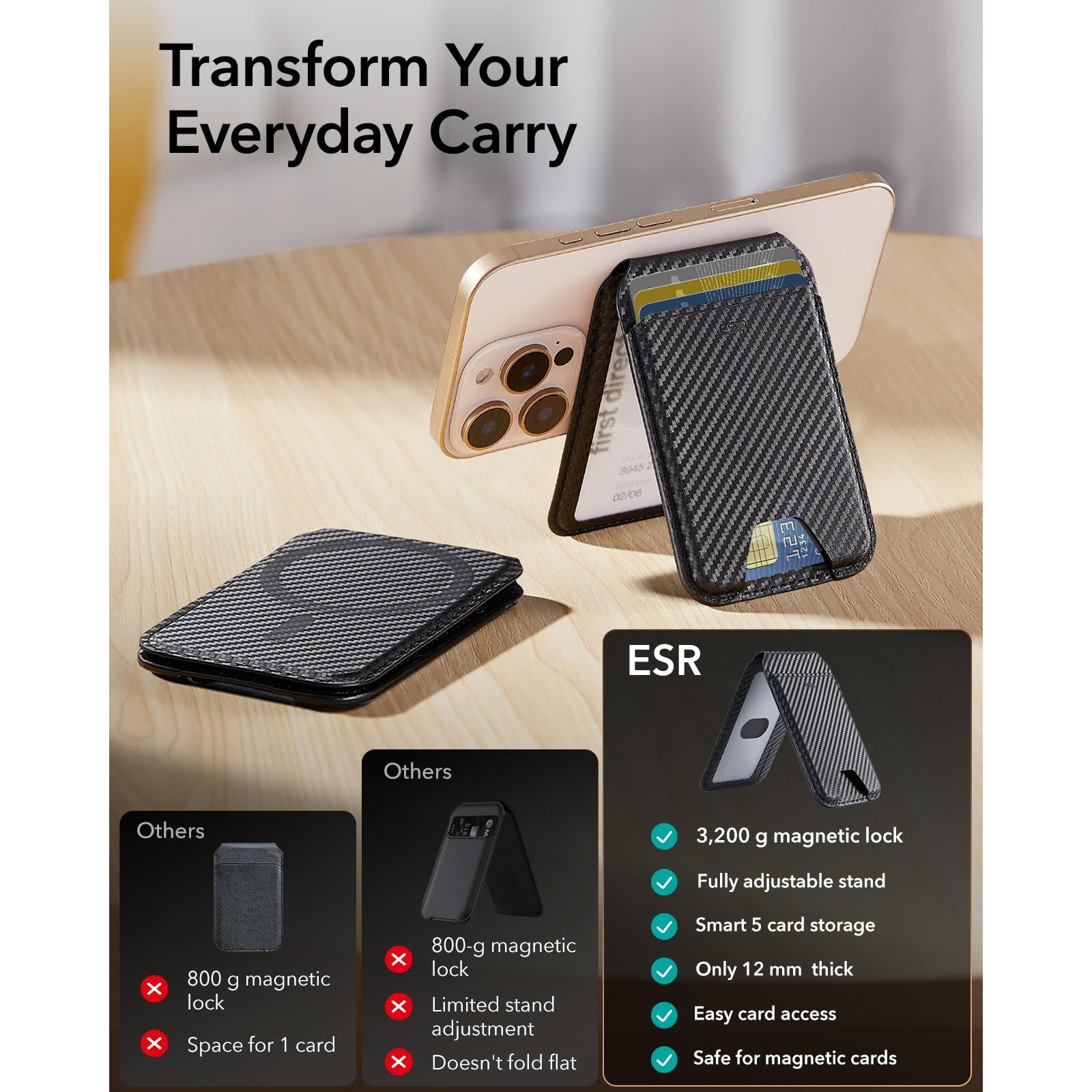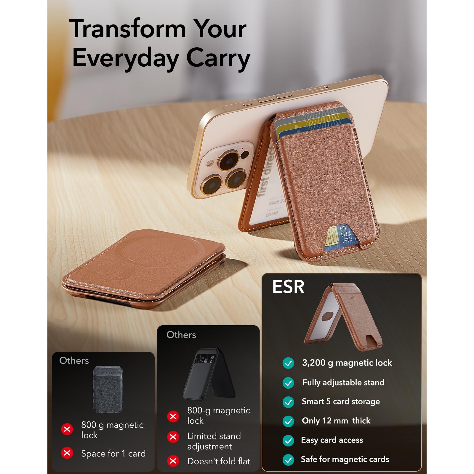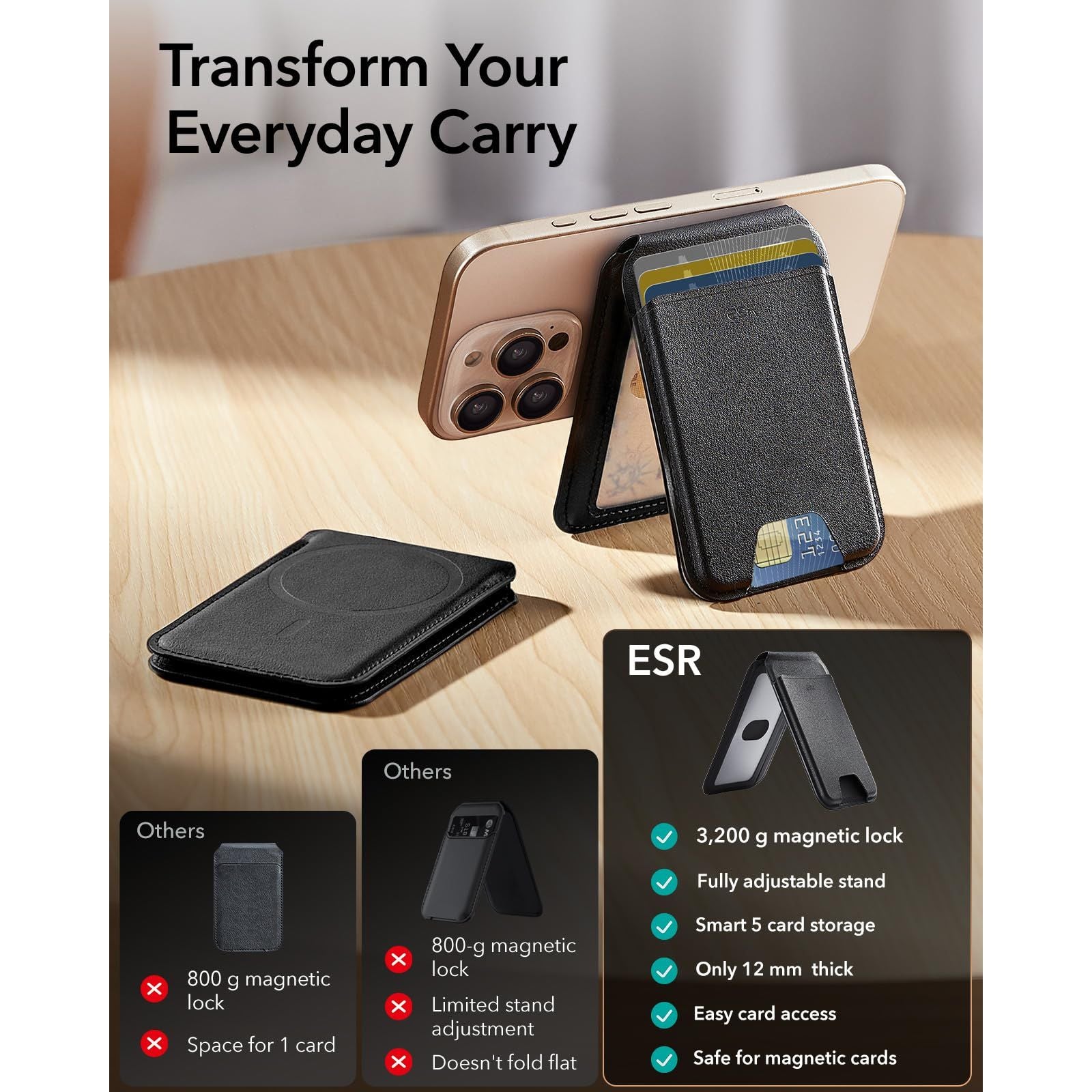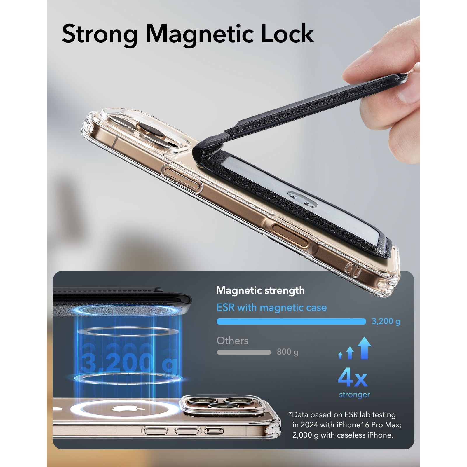 Stronger Magnetic Lock: the ESR magnetic phone wallet upgraded to 3,200 g of holding force—4X stronger than the official brand—to ensure your wallet stand stays securely locked in place