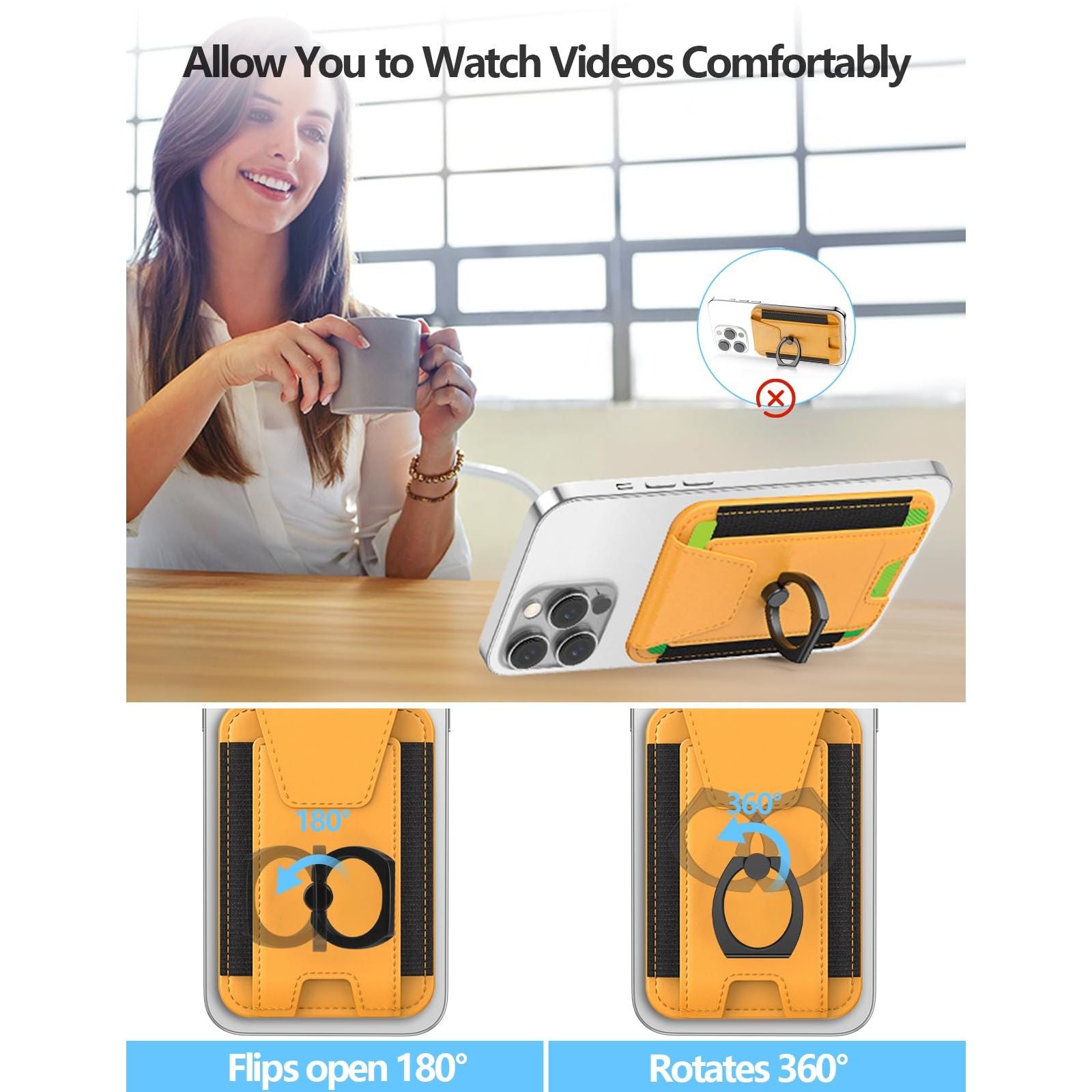 Magnetic Phone Wallet With Ring: New upgrade of magsafe wallet designed with 360° rotatable & 180° foldable ring holder, perfect for easier gripping, selfies and as a stand. This magnetic wallet for iphone is a sleek accessory that combines convenience and functionality. It’s your new go-to for a smoother, more stylish life