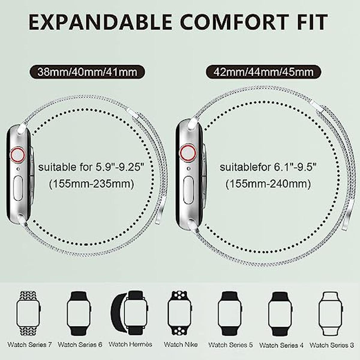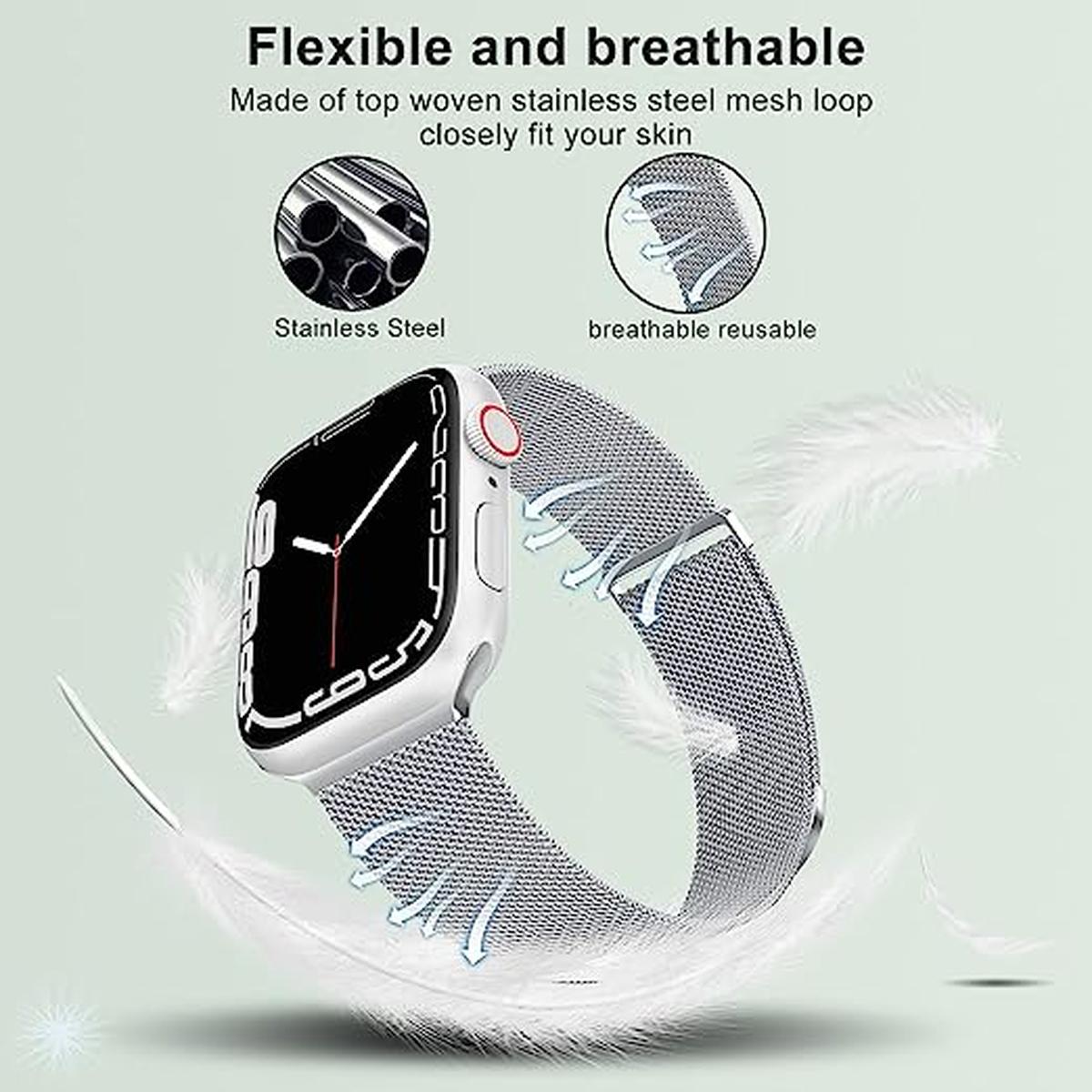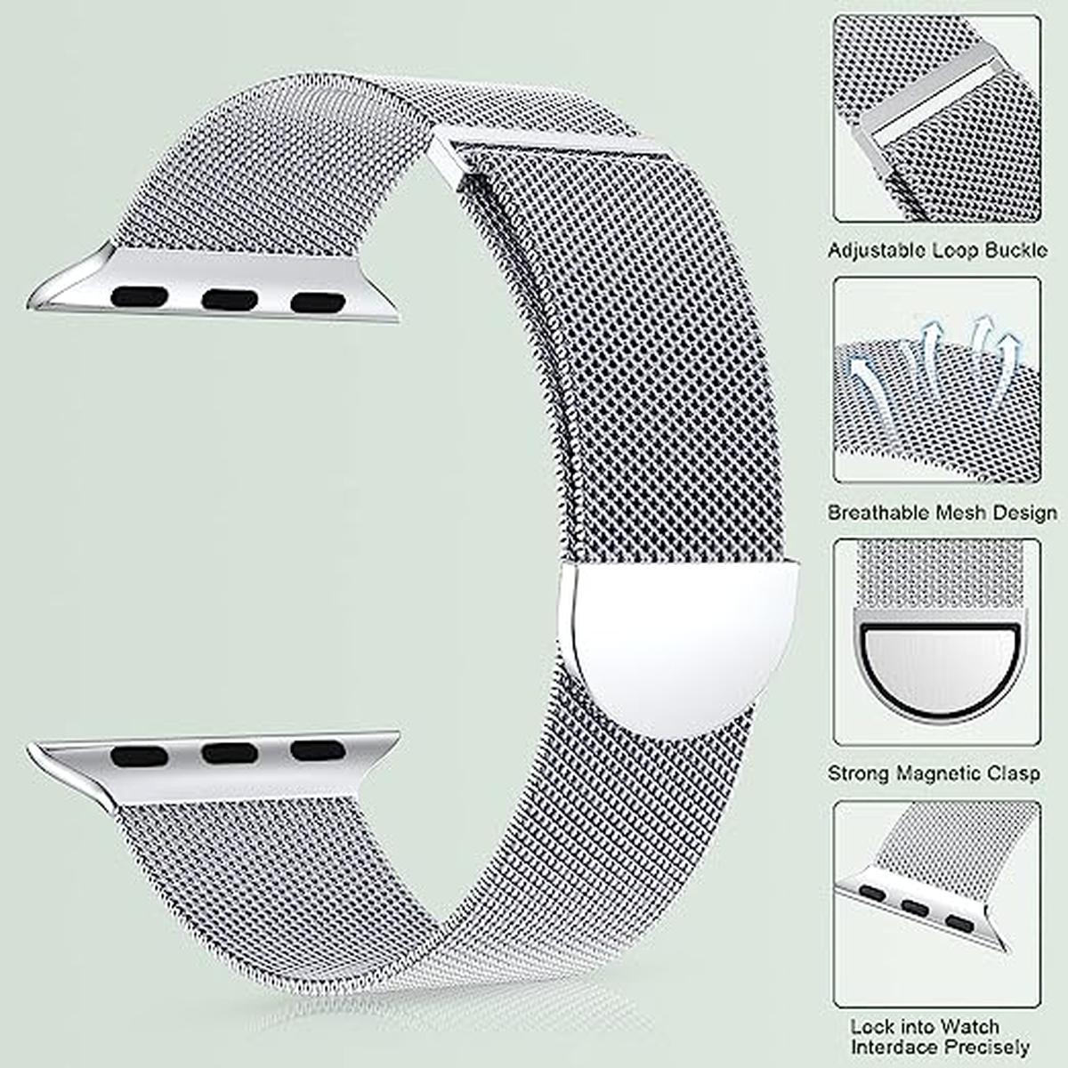 Elevate your Apple Watch experience with the Marge Plus Silver Mesh Loop Band, expertly crafted to blend elegance and functionality. This stylish band features a finely woven mesh design, offering a modern look that complements any outfit, whether for casual or formal occasions.