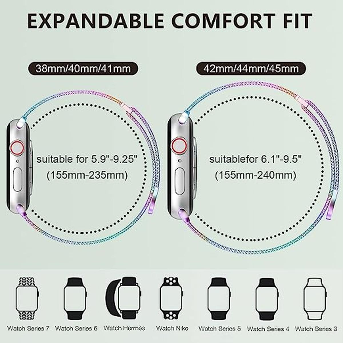 Elevate your Apple Watch style with our stunning Rainbow Mesh Loop band. Made with high-quality stainless steel mesh, this band is comfortable to wear and adds a pop of color to your wrist.