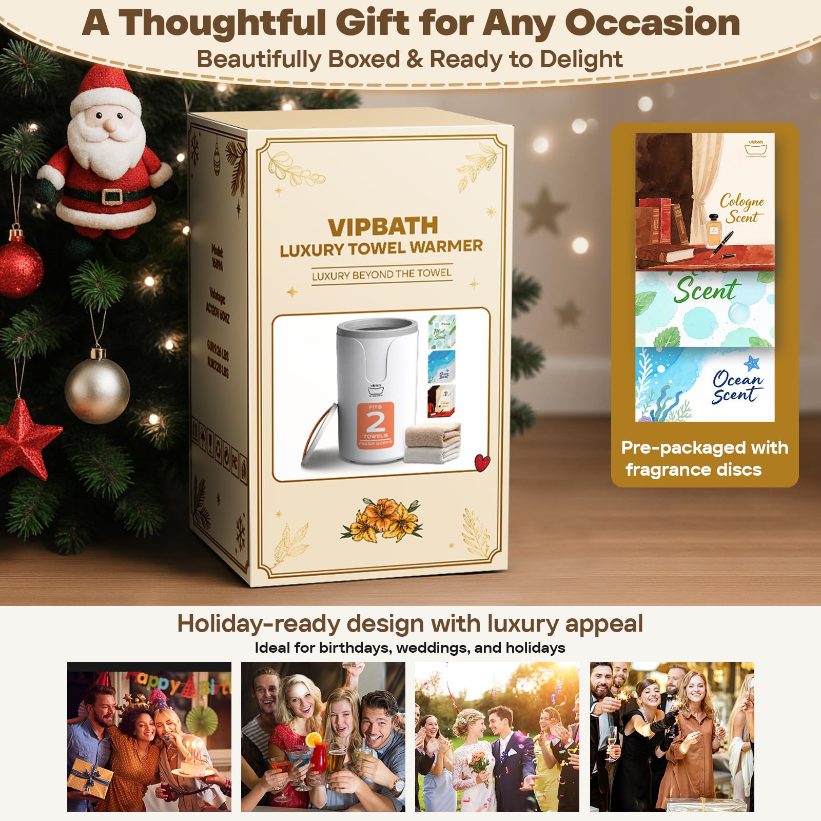 Small comforts matter. The VIPBATH Towel Warmer Bucket is your invitation to slow down and reset. Its 20L capacity fits two bath towels or a robe. With two temperature settings and a 24-hour timer, your warmth is always on time. The wood-style handle and clean design fit right into your peaceful routine. And as a finishing touch, we’ve included a trio of gentle-scented discs — one each of Ocean, Mint, and Cologne — for a subtle, refreshing lift to your warm towel ritual.