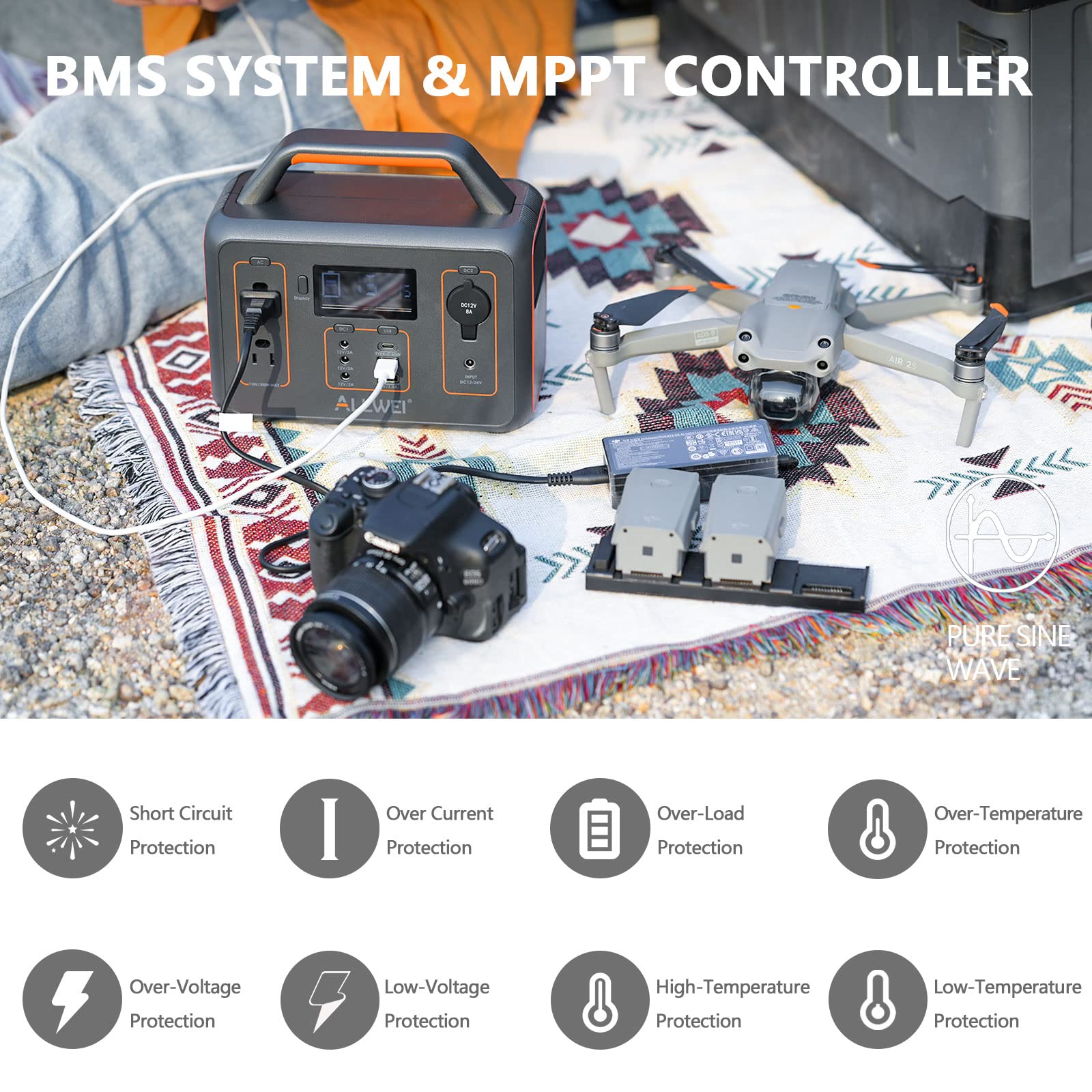 【BMS System】The generator adopt premium lithium ion batteries to ensure you and your devices safety while use. Support 1500 life cycle. The BMS and MPPT Controller is built in multiple protections via LCD screen icon flash.