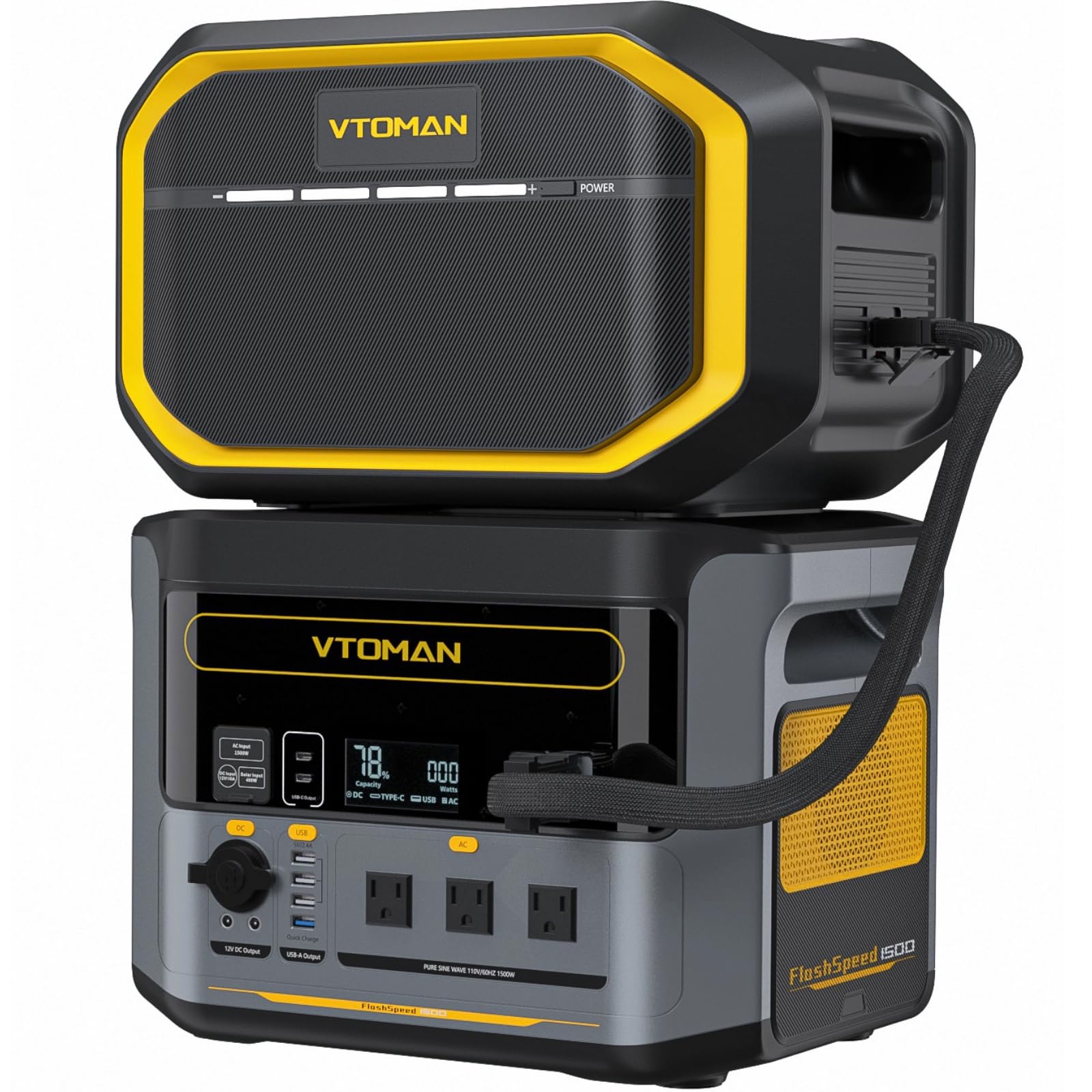 【Capacity Expandable to 2376Wh】By connect with the FlashSpeed 1500 extra battery (Sold Separately), VTOMAN FlashSpeed 1000 lifepo4 battery power station can expand its capacity from 828Wh to 2376Wh, which can double the running time of your essential devices and appliances.(Note: When connected the FlashSpeed 1500 extra battery, the total charging time also will be double.)