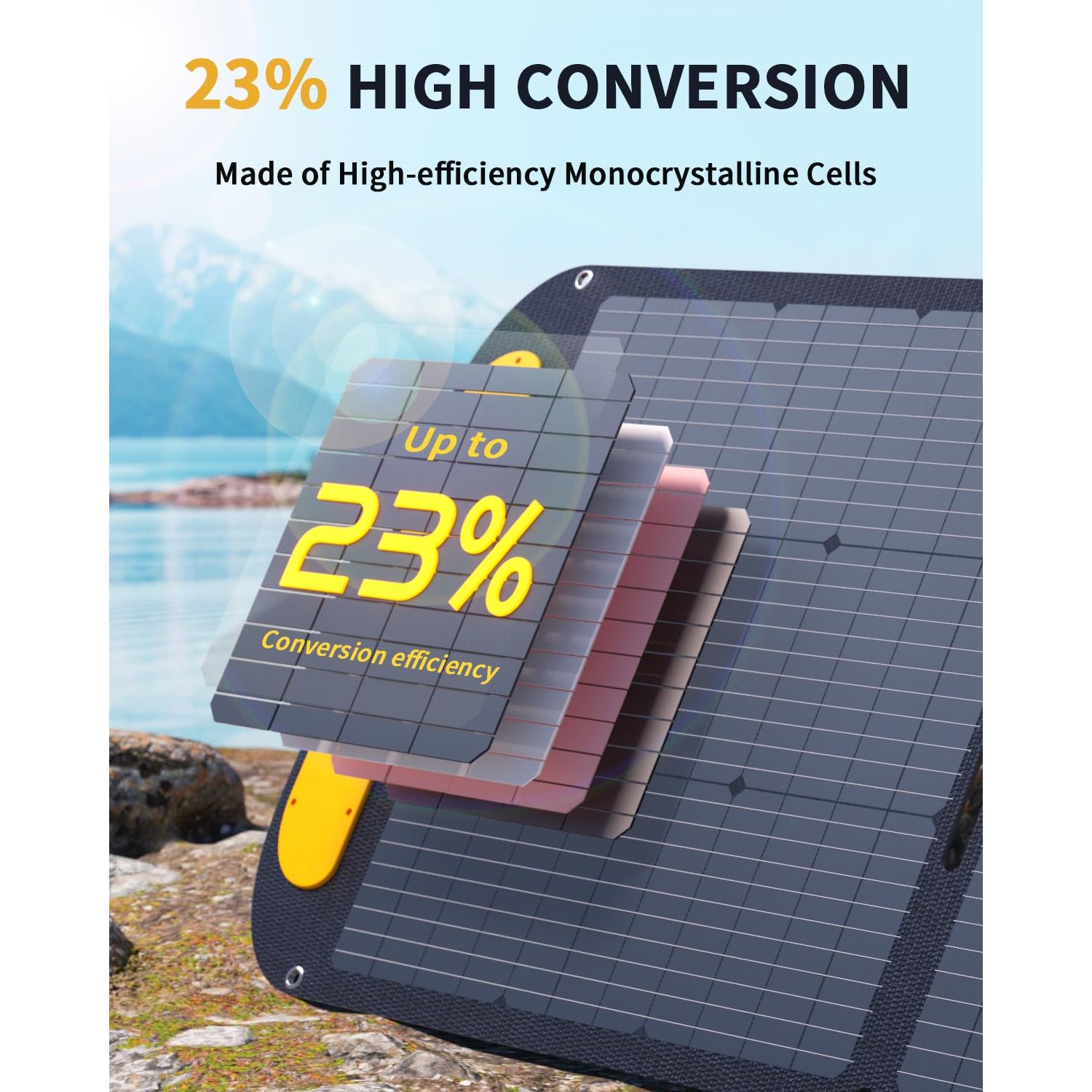 【Up to 300W Solar Input】VTOMAN FlashSpeed 1000 portable solar power station features an up to 300W Anderson input port(10-50V) that enables you to recharge it by solar panels, with max 300 watts solar input. ( Only VTOMAN 110W/200W/400W solar panel can be adapted to FlashSpeed 1000 solar power station)