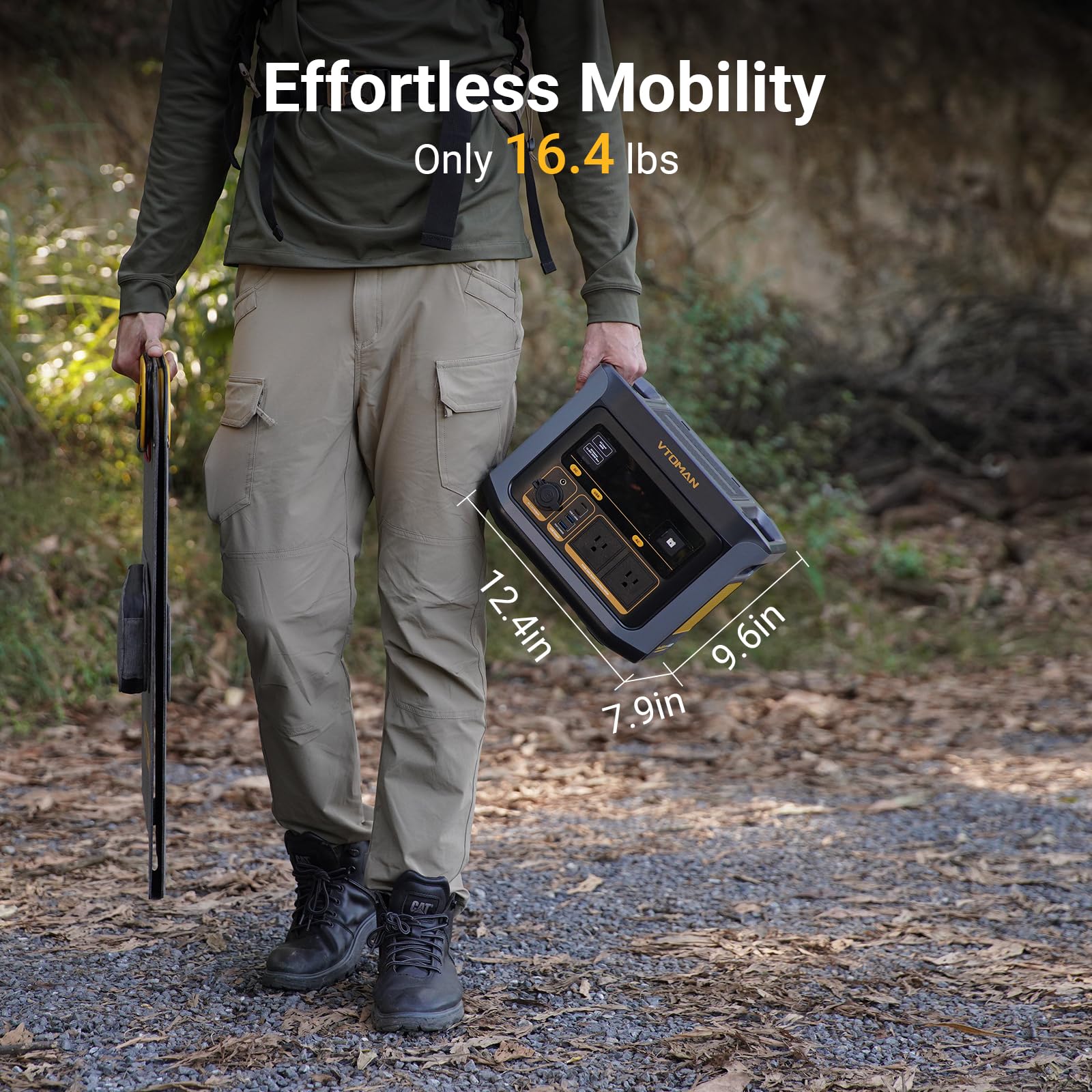 【V-BEYOND Technology】V-Beyond Technology designed by VTOMAN enables FlashSpeed 1000 solar power station to boost the capability of its AC inverter, and can power devices more than 1000W. 828Wh battery capacity and 1000W (2000W peak) output suit for your almost devices—tailored for outdoors, camping, travel, fishing, home blackup, remote work, or emergencies.
