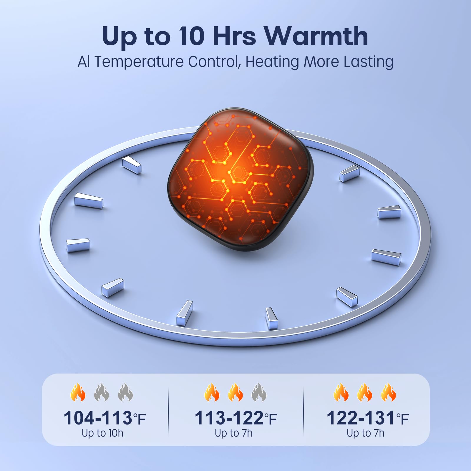 Magnetic rechargeable pocket hand warmer with three levels of adjustable temperature Settings for quick heating in 3 seconds. Single size :L2.3*W2.3*H0.75in, weight 132 grams, large area heating surface.