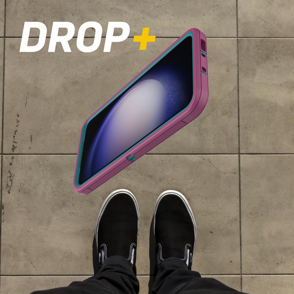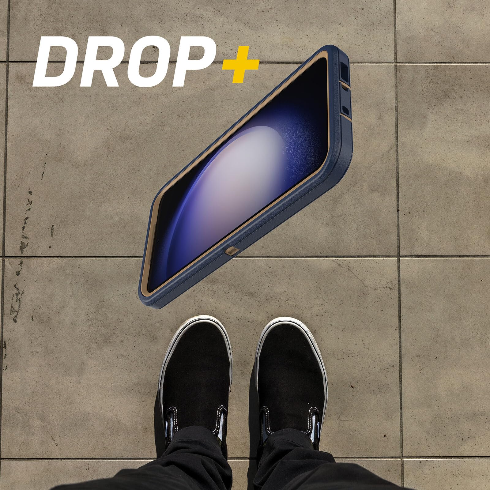 The GalaxyS23+ Defender case is made from high-quality materials that are designed to withstand everyday wear and tear. The Blue Suede exterior adds a touch of style to the case, while the rugged build protects your phone from drops, scratches, and other accidents.