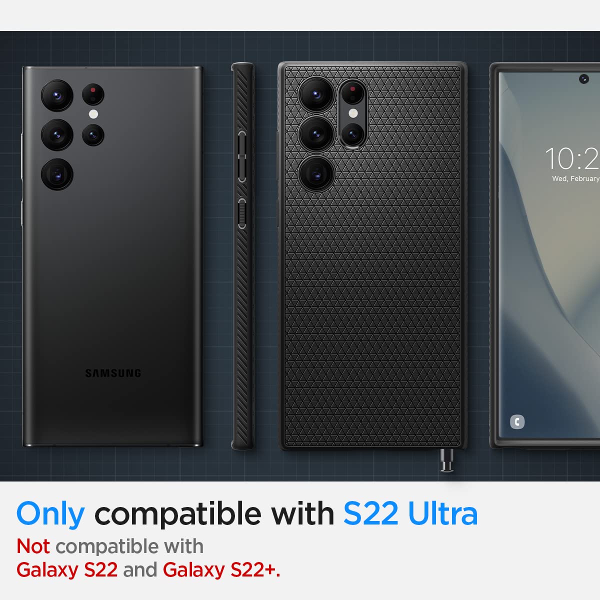 Elevate your smartphone protection with the Spigen Galaxy S22 Ultra Liquid Air Case in a sleek matte black finish. Engineered to complement the elegant design of your Galaxy S22 Ultra, this case combines style with superior functionality.