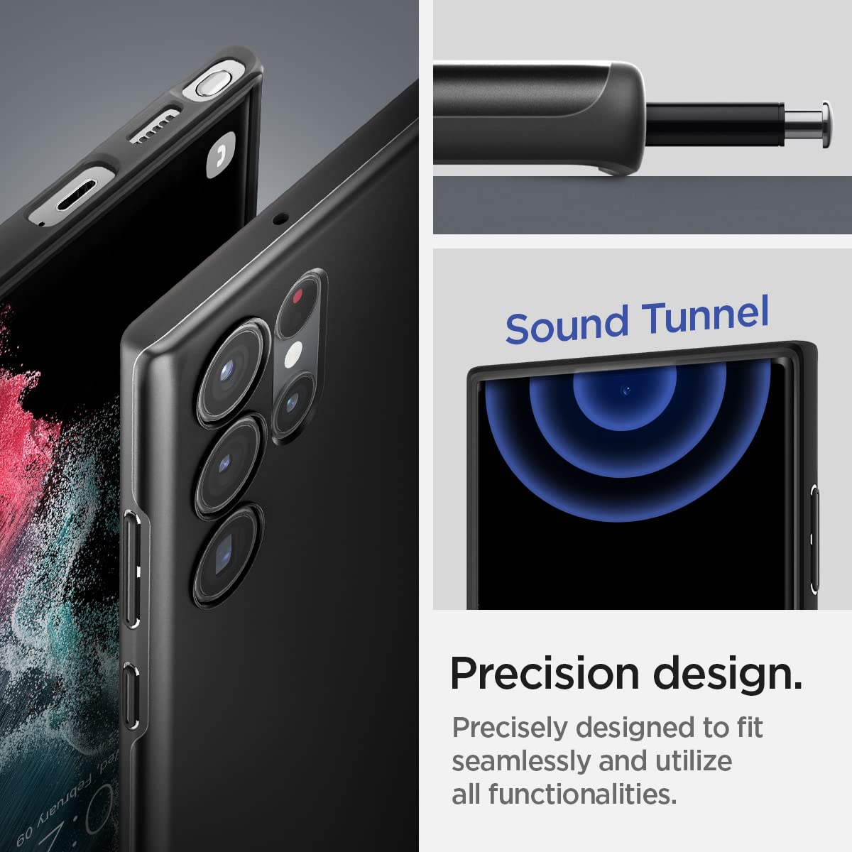 Elevate your Galaxy S22 Ultra with the Spigen SlimGuard Case, expertly designed to offer a perfect blend of style and protection. This sleek black case is engineered to showcase your phone's elegant lines while safeguarding it from daily wear and tear.
