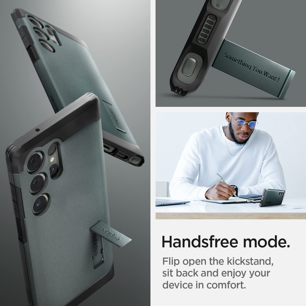 This particular version of the Tough Armor Case comes in a sleek and stylish Abyss Green color, adding a touch of personality to your phone. It also has a built-in kickstand for hands-free viewing, making it perfect for watching videos or video calling.