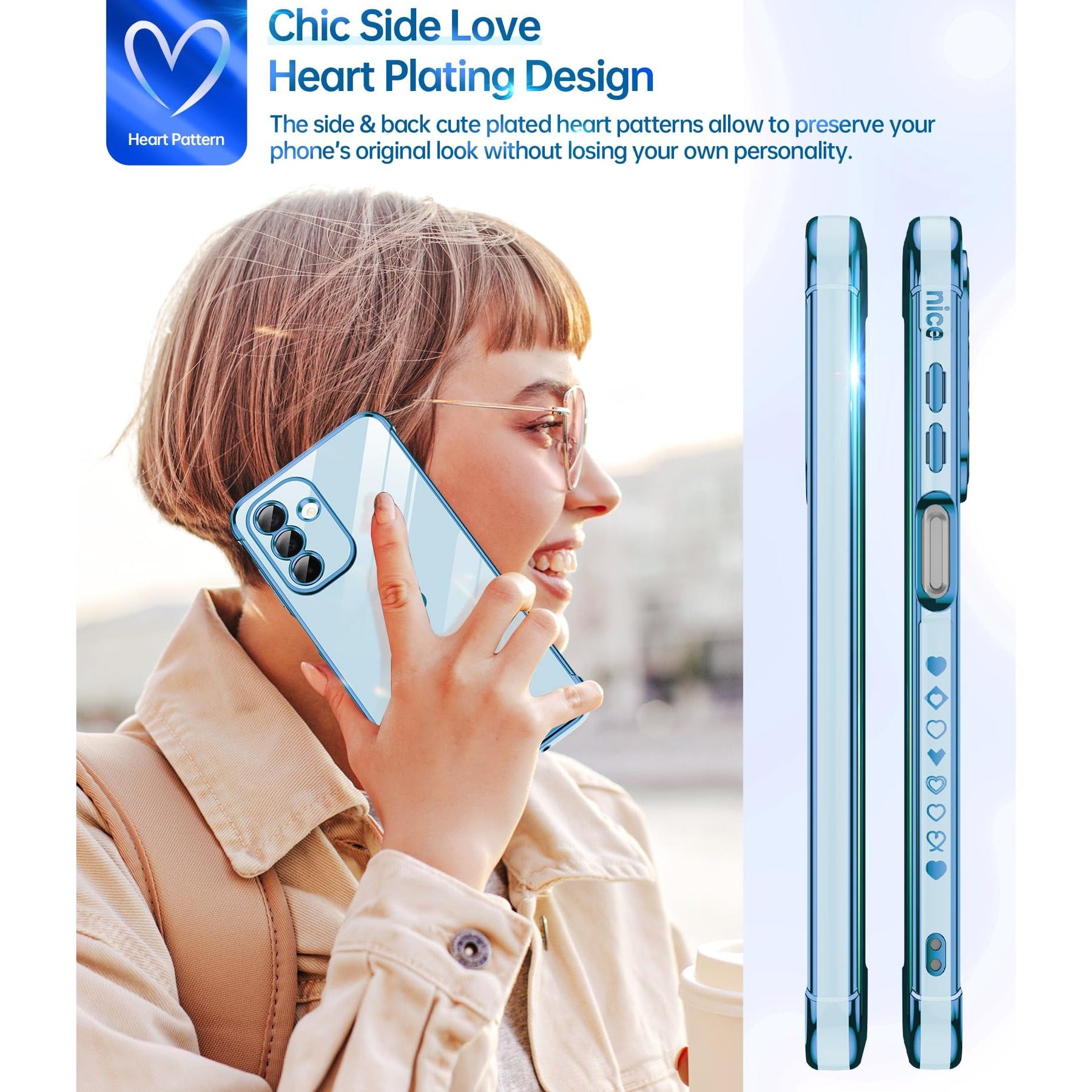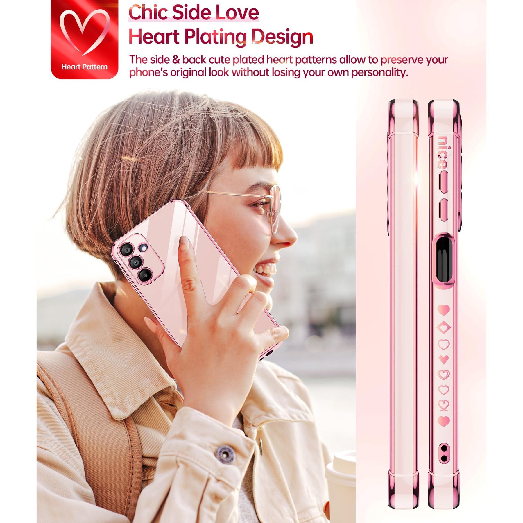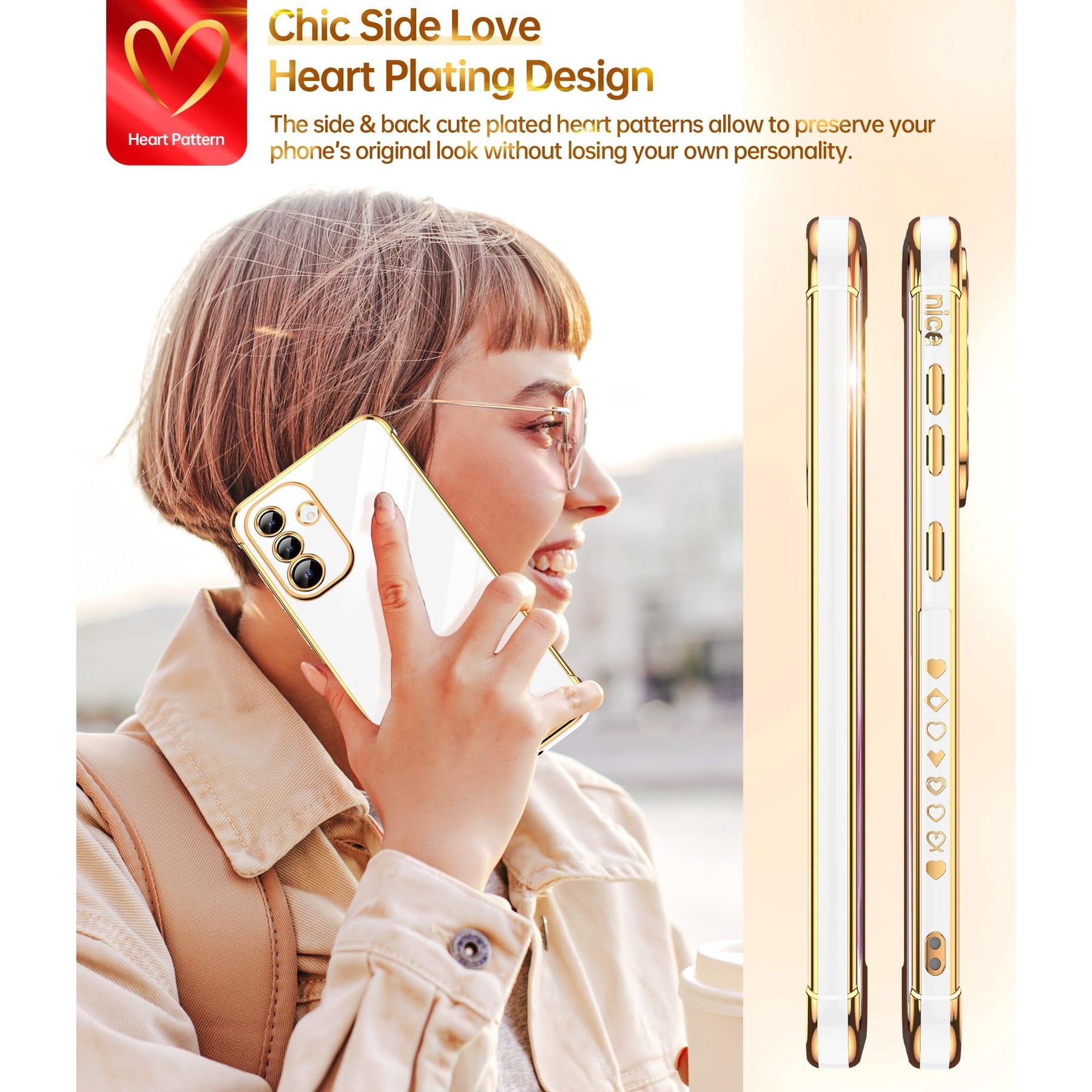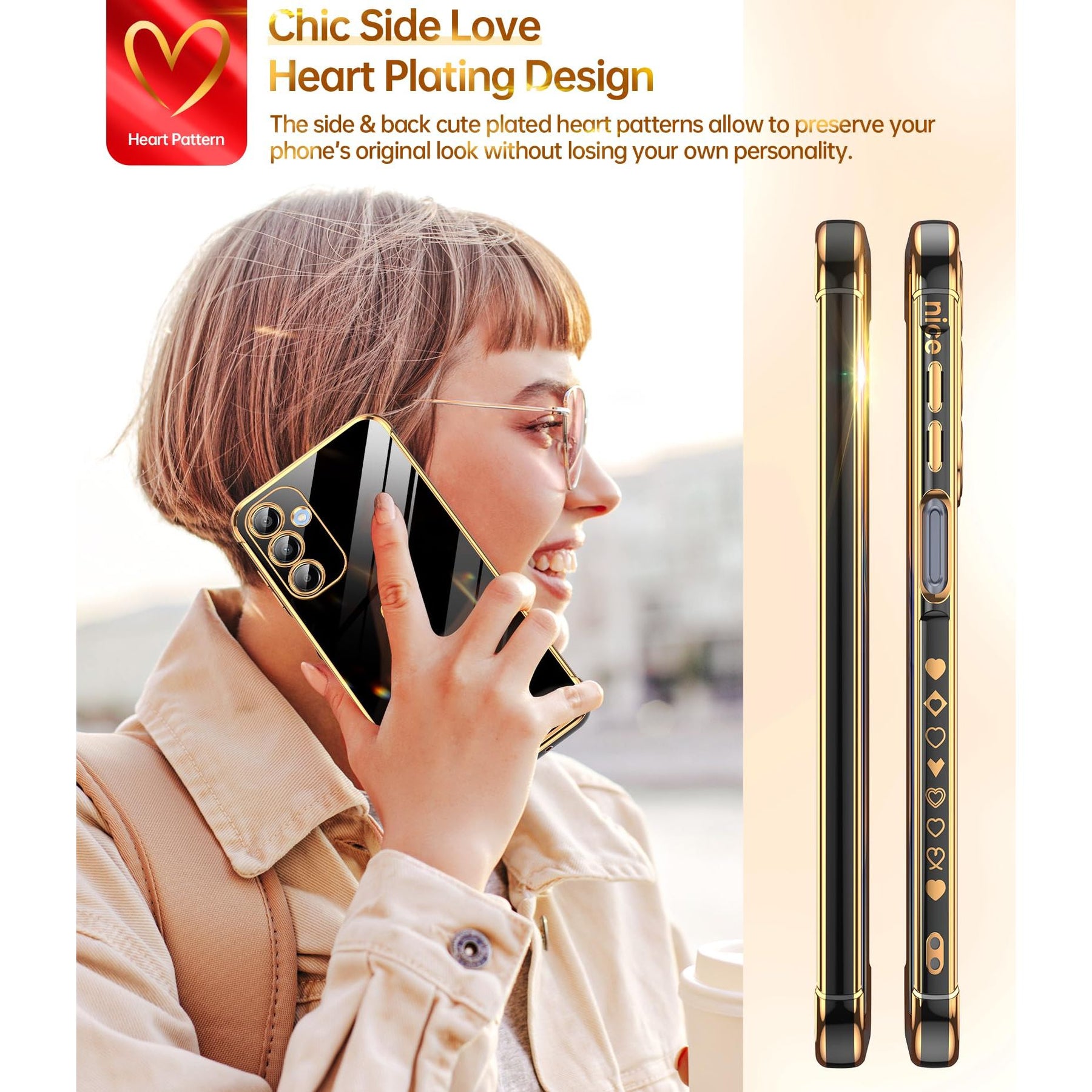 Plated Love Heart Design: Simple cute hollow plating love-heart pattern design. Edges are vacuum-plated with metallic colors to make the phone more luxurious, stylish, and timeless, support wireless charging