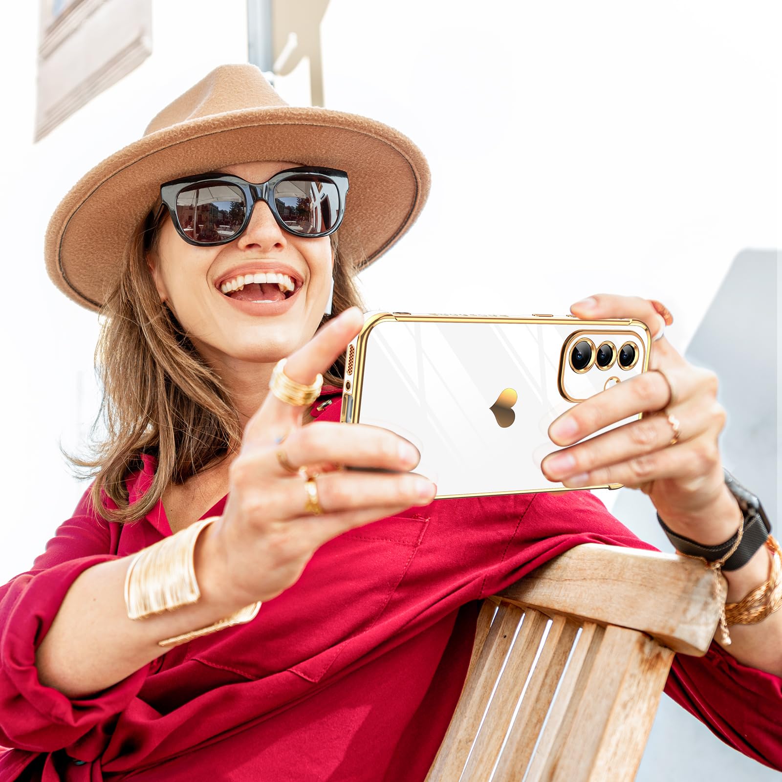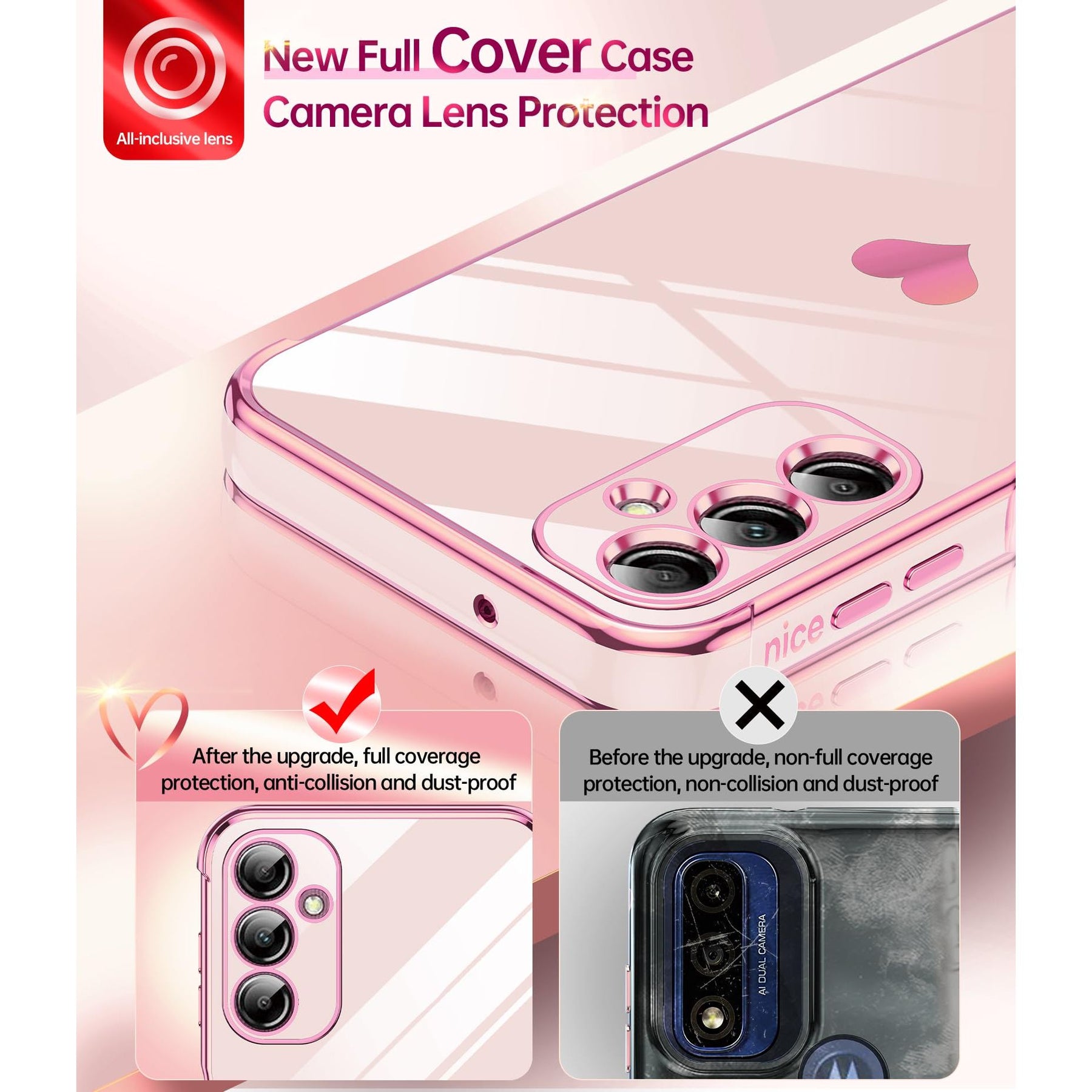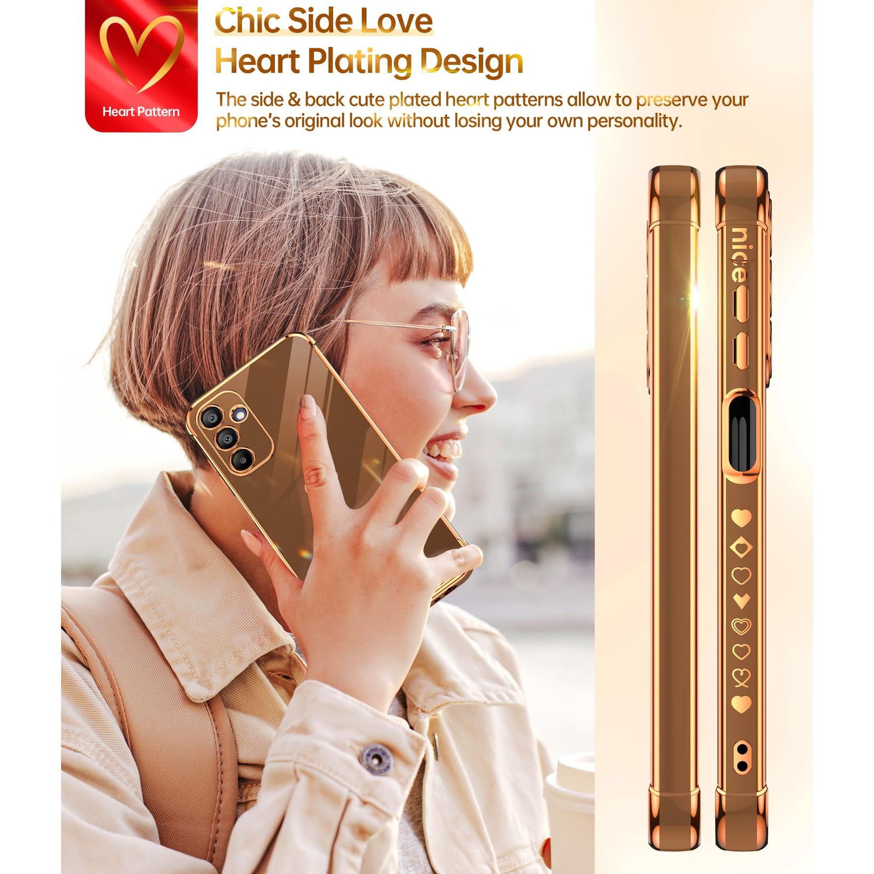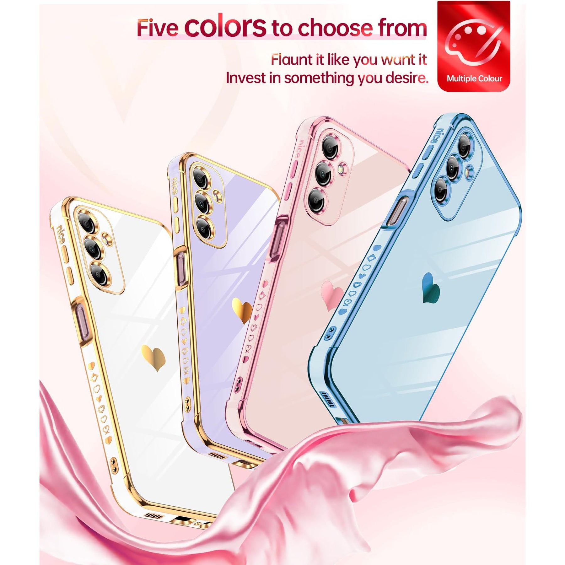 Plated Love Heart Design: Simple cute hollow plating love-heart pattern design. Edges are vacuum-plated with metallic colors to make the phone more luxurious, stylish, and timeless, support wireless charging